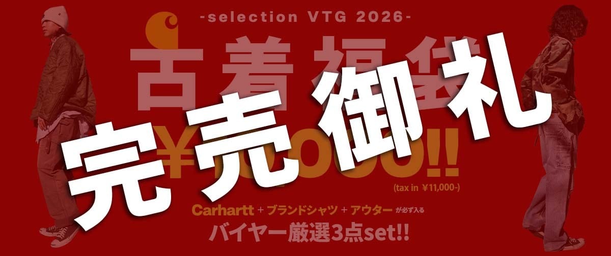 【数 量 限 定】 - 届いた瞬間から、ワンランク上のコーディネート - 届いたその日から完成する。当店バイヤーが1セットずつ組み上げる、即戦力のライフスタイル福袋です。 ■こんな悩みがある方におすすめ。 ・コーデを考えるのが面倒だ ・自分のコーディネートに自信がない ・大人っぽいコーデをしてみたい ・人と被らないアイテムを持ちたい ・おしゃれな生活をしたい ・良いものを身に着けたい ・お得に良いものを手に入れたい ■福袋のコンセプト - 届いた瞬間から、ワンランク上のコーディネート - 適当に詰め合わせたセットではなく、色味、アイテム、ジャンルに統一感を持たせ、差し色や全体バランスまで考え抜いたコーディネートに仕上げています。また、ハイクオリティでスペシャルなアイテムを軸に揃えるため、福袋とは思えない雰囲気が出ます。 ■計6点の豪華な中身 バイヤーセレクトの計6点。 ①アウター(ダウンベスト、ヘヴィめなベストもこちらに含まれます。) ②トップス1(Tシャツ、パーカー、シャツなど) ③トップス2(Tシャツ、パーカー、シャツなど) ④パンツ ⑤キャップ ⑥ラグ さらに、中身はすべてブランドまたはスペシャルアイテムで構成。 カーハート、リーバイス、パタゴニア、ラルフローレン、ナイキ、チャンピオンなど、名だたるブランドが入るラインナップです。さらにヴィンテージやmade in usaのアイテムも含め、古着好きが唸る内容です。 ■「絶対にお得」な理由 コーデによっては、アウターだけで販売価格4万円から5万円超相当となるアイテムが入る場合があります。60sヴィンテージや、カーハートのデトロイトジャケットなど、主役級のアウターが当たる可能性もあります。(※こちらは5万円福袋の場合の内容イメージとなります。) ■ヴィンテージラグをセットに。日常を格上げ。 最後に、ライフスタイルとしての特別感を仕上げるのがラグです。 服だけで終わらず、部屋まで整う。古着コーデとヴィンテージラグをセットにすることで、日常を格上げする体験までまとめてお届けします。 ■サイズについて M / L〜XL からお選びいただけます。 ※タグの表記サイズではなく「実測」や、 組み合わせた際のバランス感で判定し分類しております。 - - - - - - - - - - - - - - - - - - - - 【ご購入前の注意事項】(必ずご確認ください) ・掲載のコーディネートおよび画像はイメージです。実際にお届けする内容とは異なります。 ・福袋の性質上、内容はランダムでの構成となります。全体のテイストや統一感はできる限り整えます。(完全一致は保証できません。) ・販売価格や参考価格の表記は当店基準となります。 ・サイズについて:タグの表記サイズではなく、「実測」や組み合わせた際のバランス感で判定し分類しております。(例:タグのサイズ表記が2XL表記だがLサイズのセットに入る場合 / タグのサイズ表記がS表記だがMサイズのセットに入る場合...など。) ・ラグは基本的に大判サイズをお届けします。デザイン、色味、サイズの指定はできません。 ・デザインや雰囲気など、ご希望がある場合はご購入前またはご購入後にメッセージでご相談ください。(可能な範囲で検討しますが、対応を保証するものではありません。) ・ヴィンテージ、古着商品の特性上、汚れ、ダメージ、ほつれ、色褪せ、使用感等が見られる場合があります。あらかじめご了承ください。 ・サイズ感やイメージ違い、状態(ダメージ等)を含むお客様都合での返品、交換はお受けできません。 ・一点物を含むため、同じ内容の再現や入れ替えはできません。 ・ブランドや年代、素材、カラーの指定はできません(ご希望は参考程度に承ります)。 ・コンディションは当店基準で選定しています。気になる点がある場合は事前にお問い合わせください。 ・発送はご注文確定後、順次手配します(混雑時はお時間をいただく場合があります)。 ・数に限りがございます。完売次第終了となりますので、お早めにお求めください。 - - - - - - - - - - - - - - - - - - - - 【バイヤーからのメッセージ】 Carhartt福袋が好評につき、追加で福袋をつくりました! オンラインストアでも高評価をいただいている当店のセレクト力を結集させ、「絶対に損はさせない」という自信を持ってお届けする、特別な福袋です。古着好きの方も、ぜひこの機会に手に入れてください! - - - - - - - - - - - - - - - - - - - - コンビニ決済 / 銀行振込をご利用のお客様: 店頭と並行しての販売のため、ご注文後【こちらから商品確保のご連絡】を致します。 それまではコンビニでのお支払い決済 銀行へのお振込をお待ちいただきますようお願いします。 - - - - - - - - - - - - - - - - - - - - 当ショップ「セレクションヴィンテージ」 Instagram:https://www.instagram.com/selection_vtg 姉妹店「カバンのセレクション」 Instagram:https://www.instagram.com/bag_selection.shop