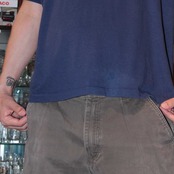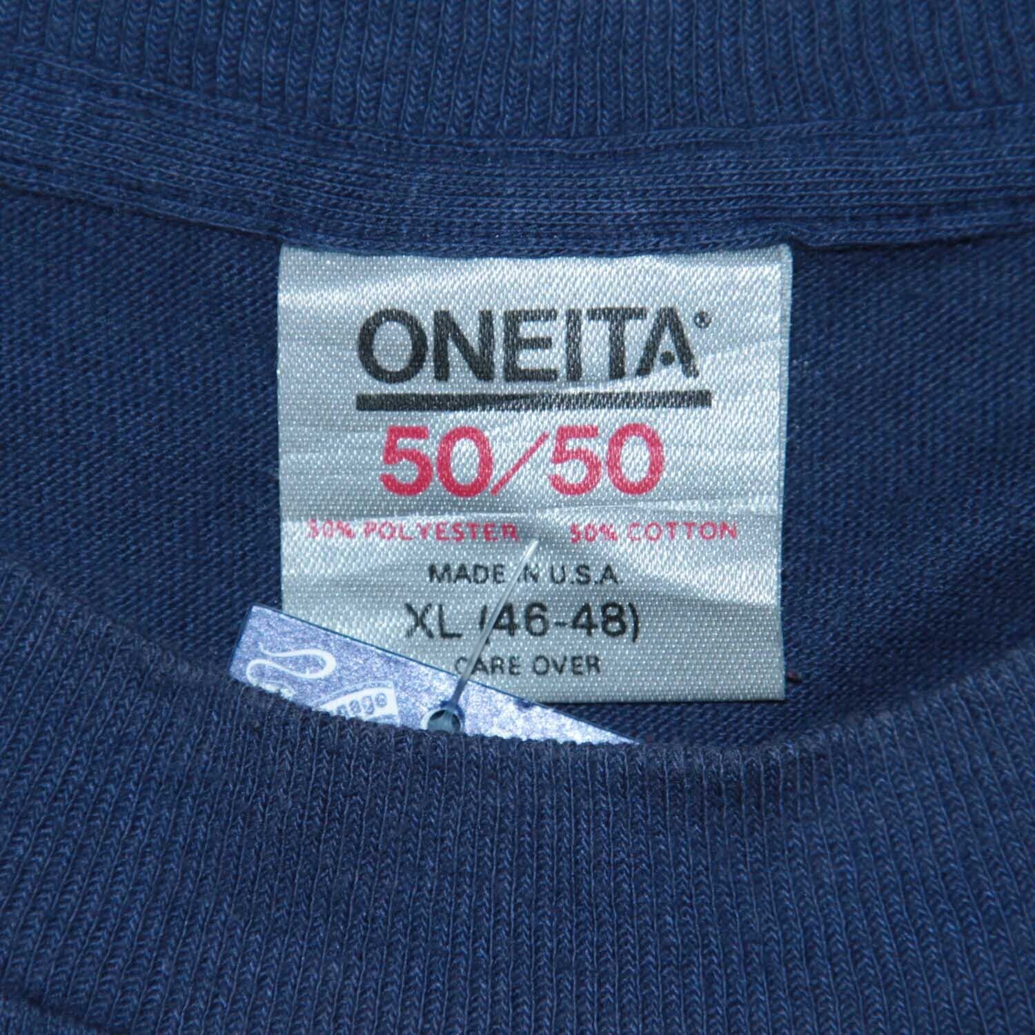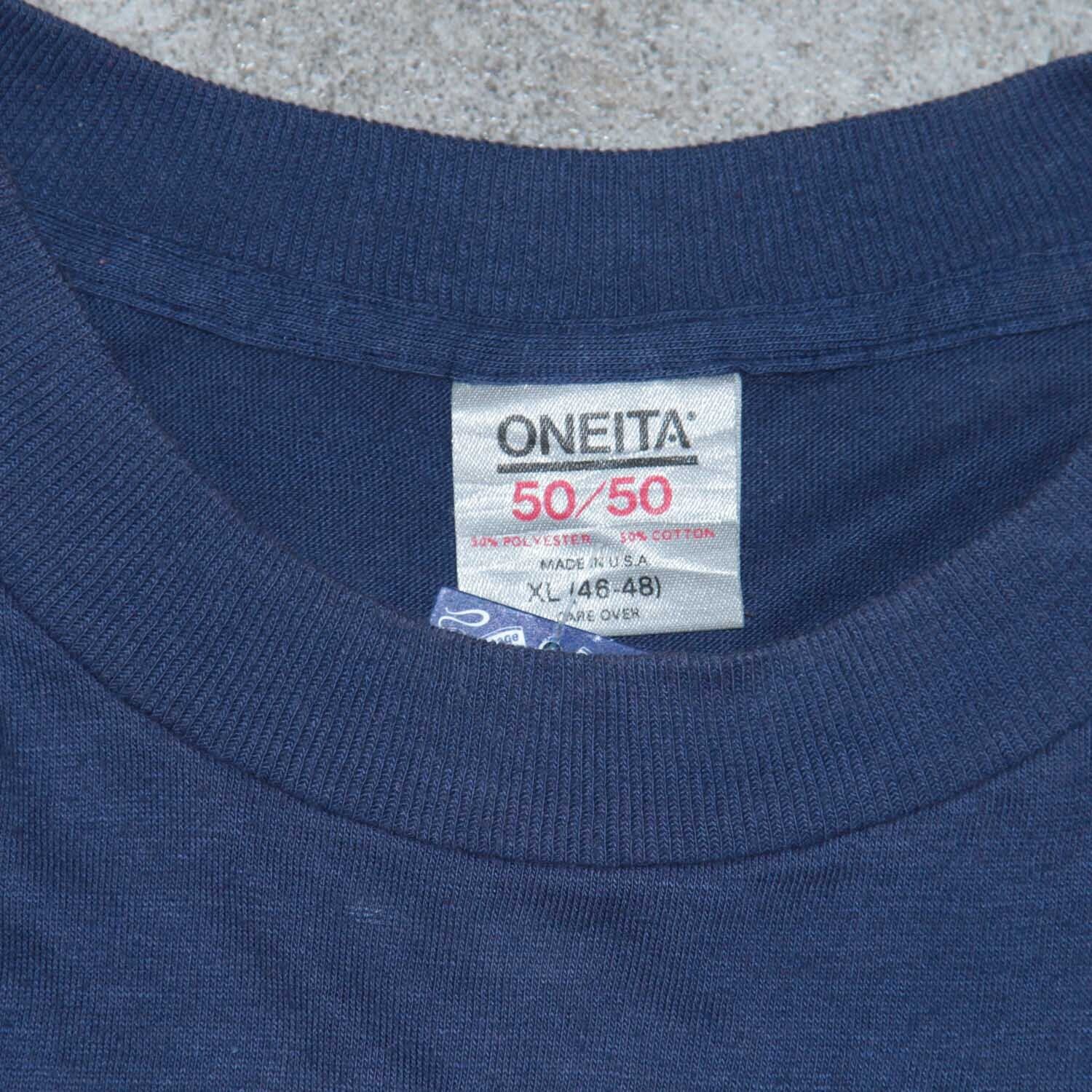 80s〜90s ONEITA オ二ータ アメリカ製 シングルステッチ Tシャツ ネイビー 紺 「WANG」 古着 made in USA