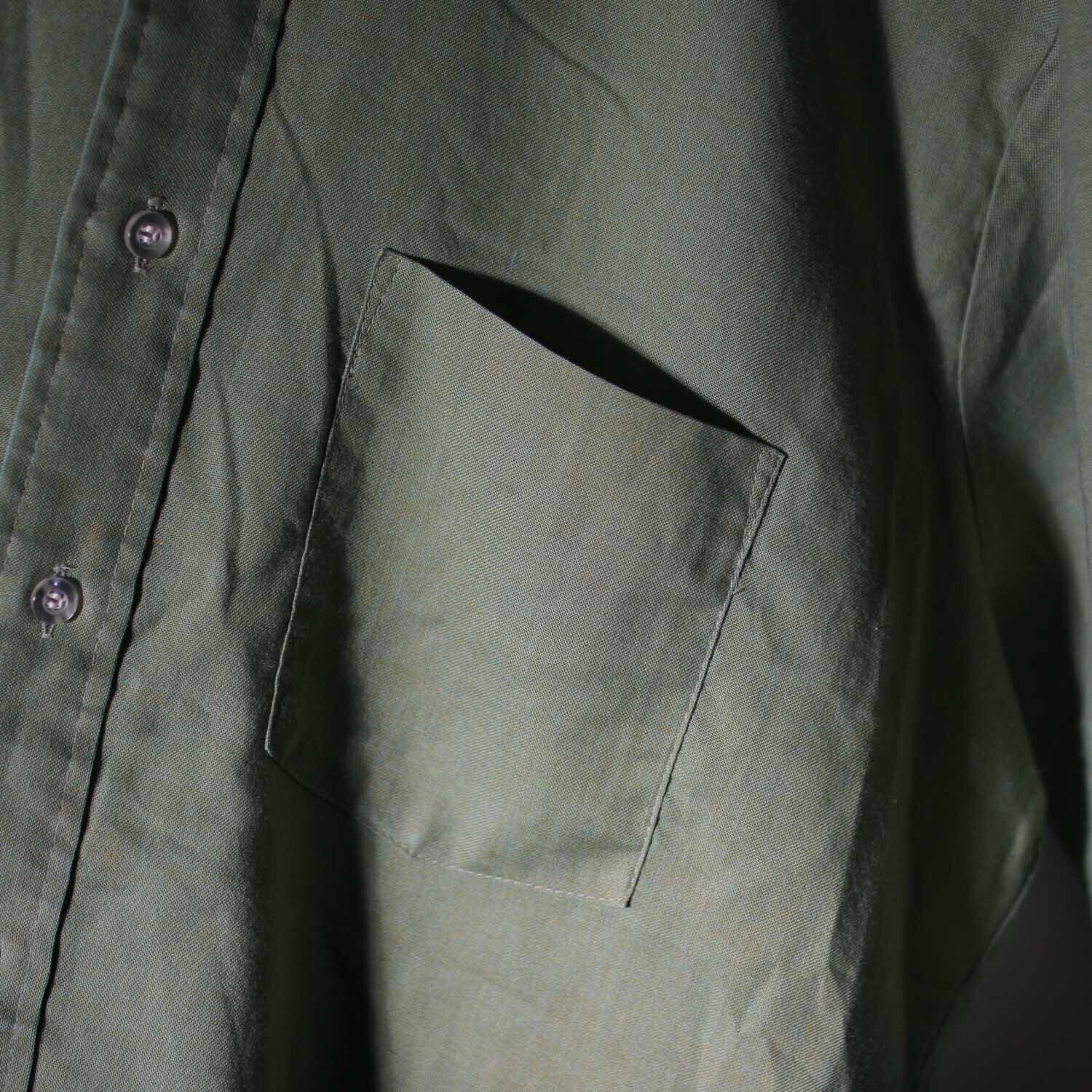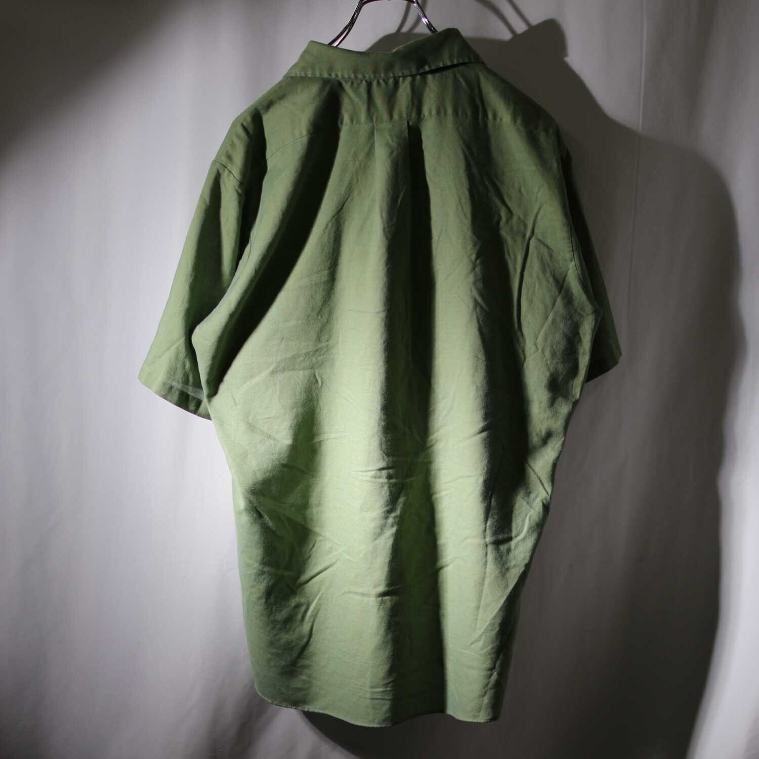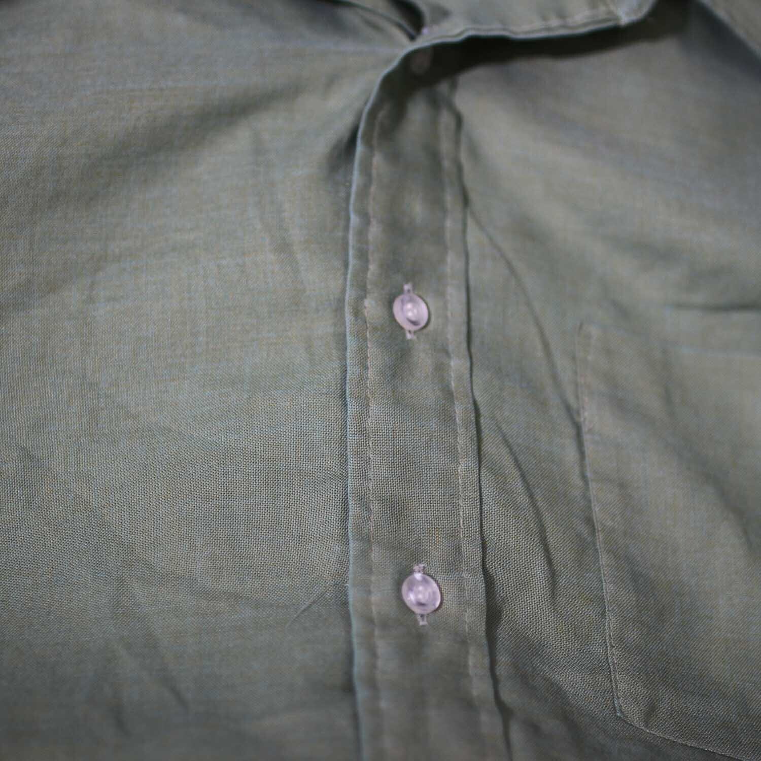 70s vintage 「ARROW」 s/s shirts 玉虫カラー アロー ヴィンテージ 半袖シャツ L ポリエステル パーマ・アイロン デクトン生地 グリーン 古着【furugi-1635】