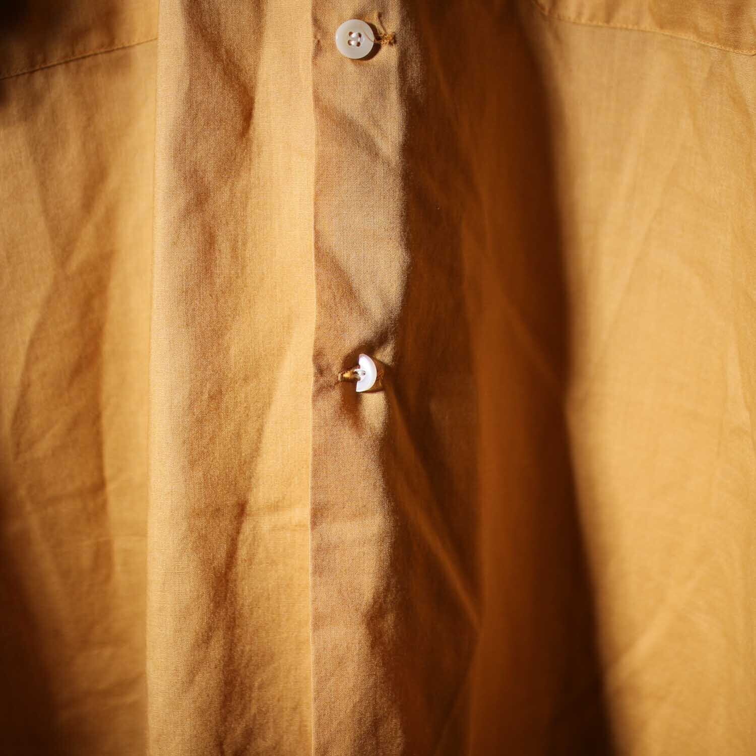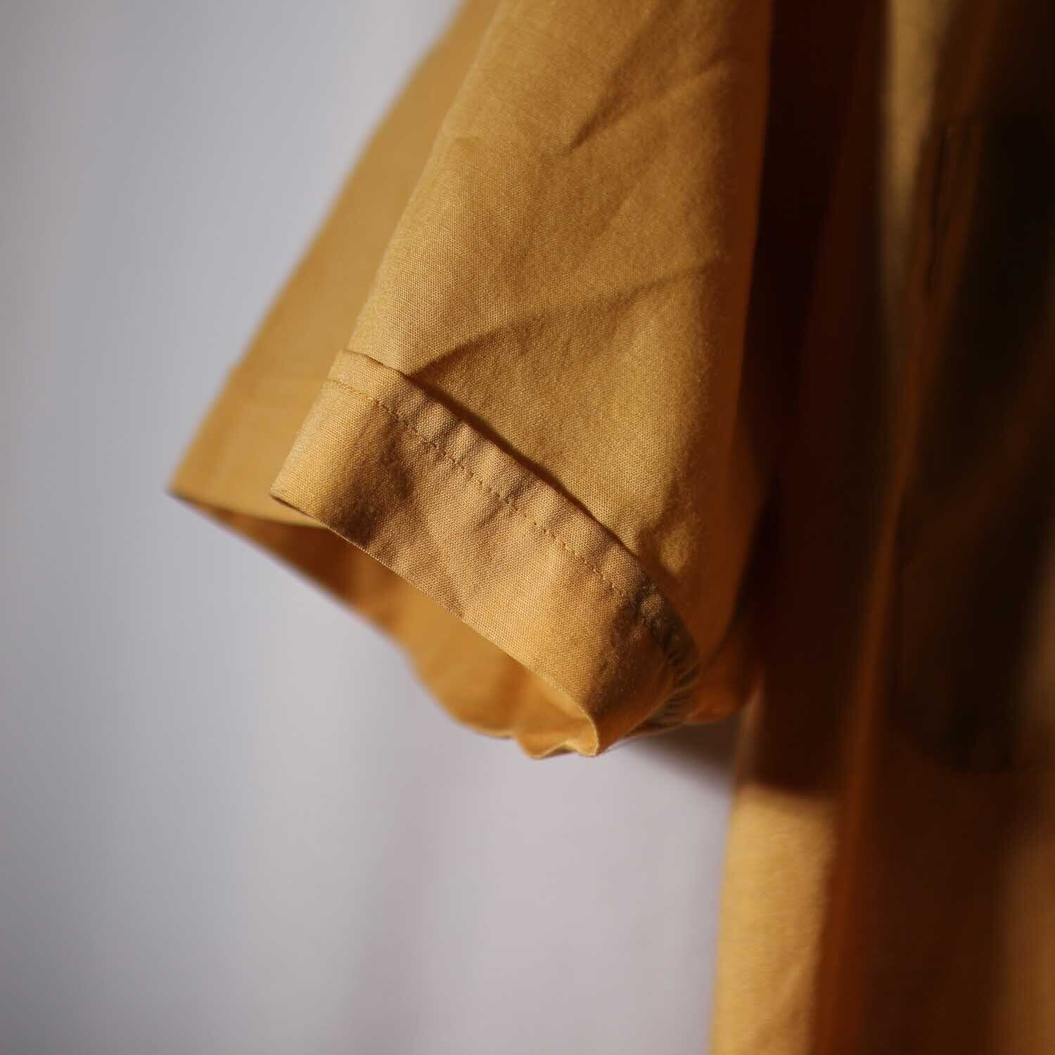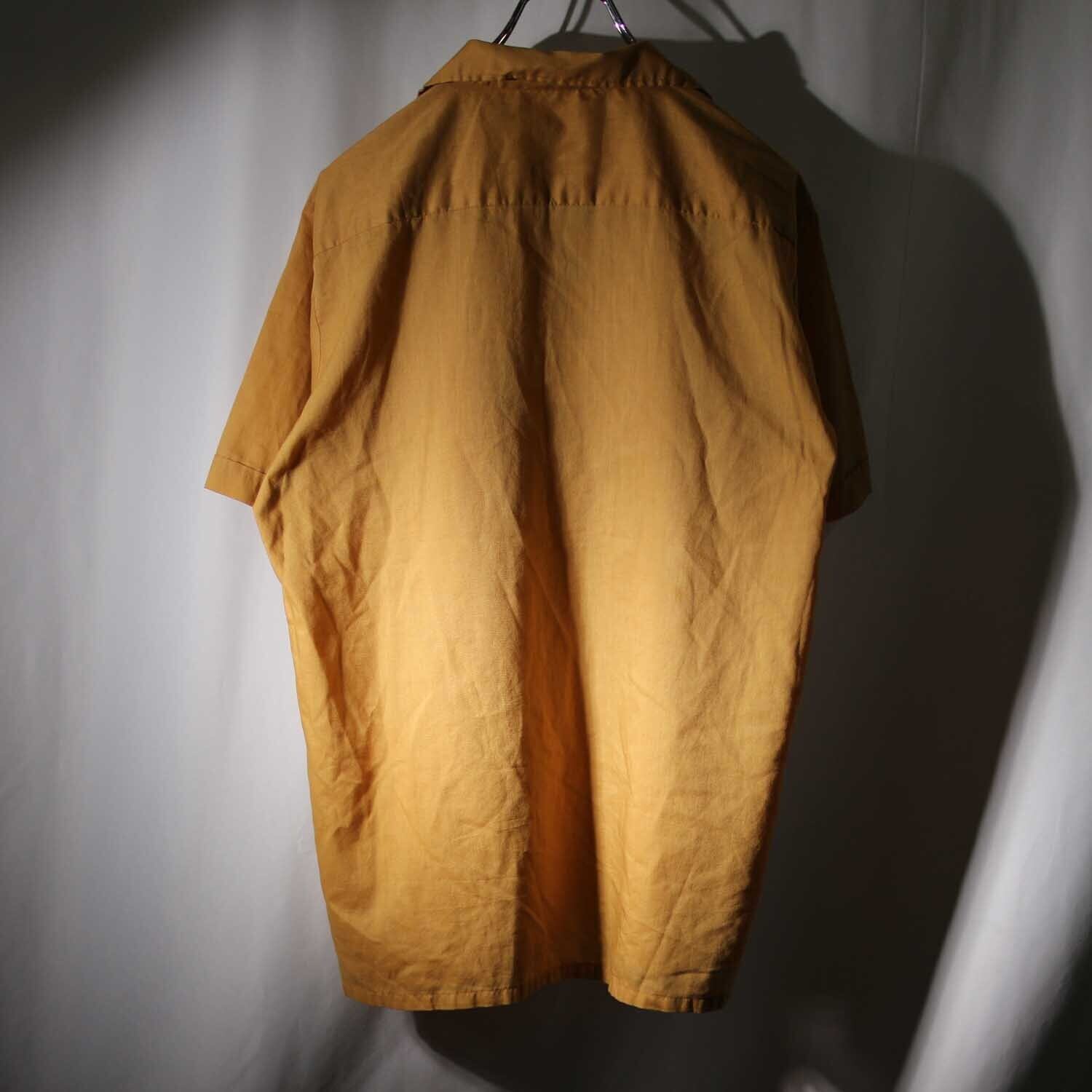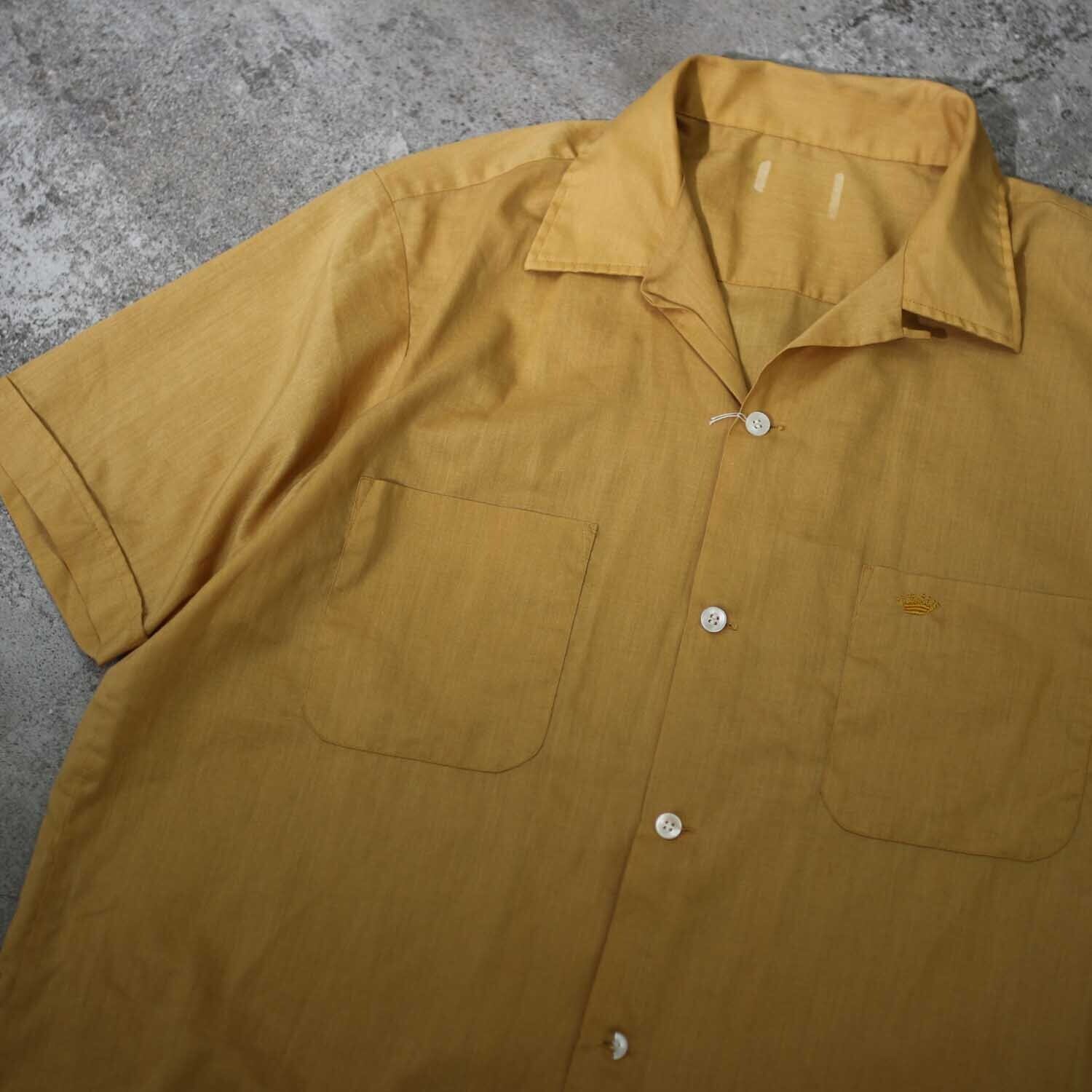 70s open collar s/s shirts 「made in usa」 ヴィンテージ オープンカラーシャツ 実測M〜Lサイズ マスタード色 半袖 US製 アメリカ製 ボーリングシャツ ルード 古着【furugi-1650】