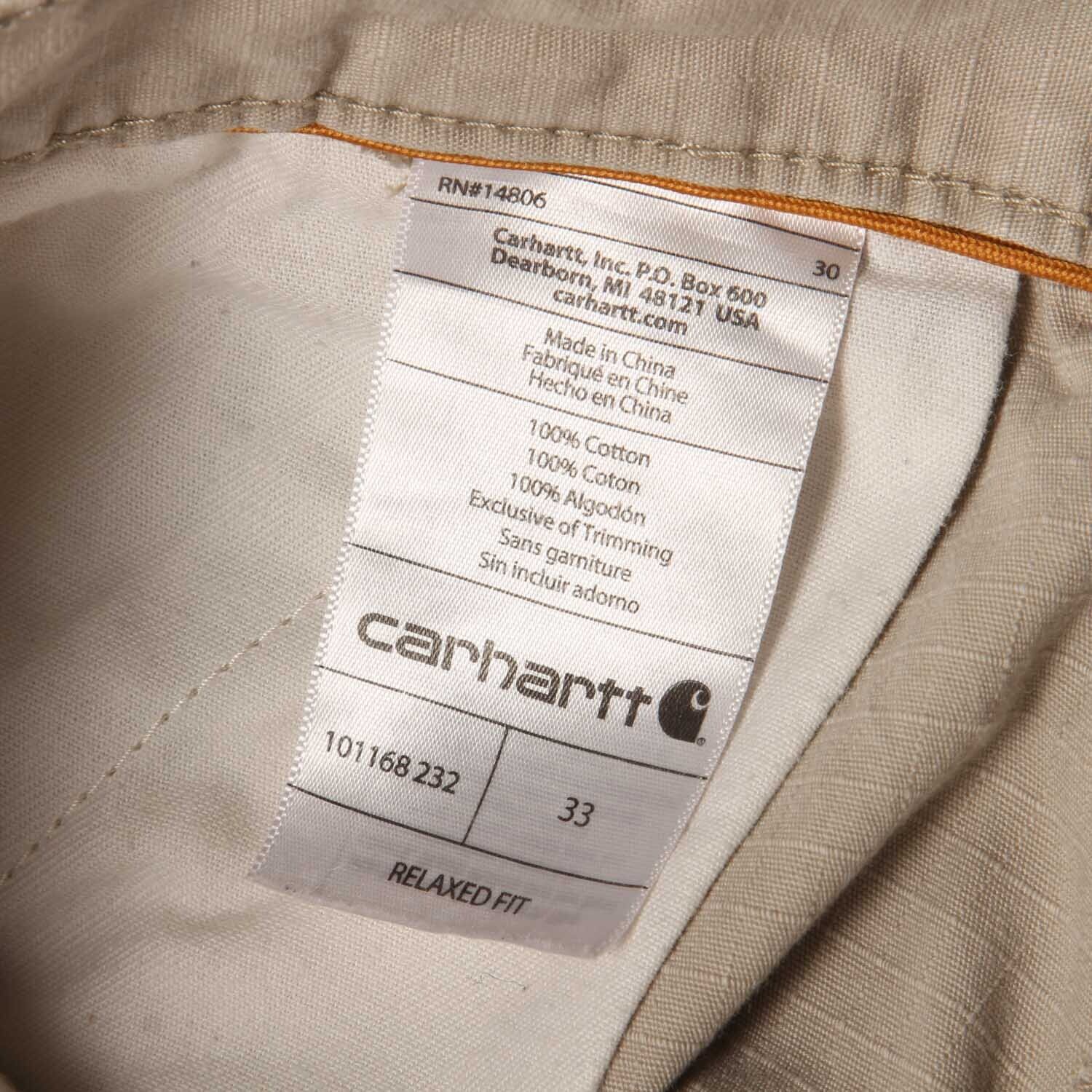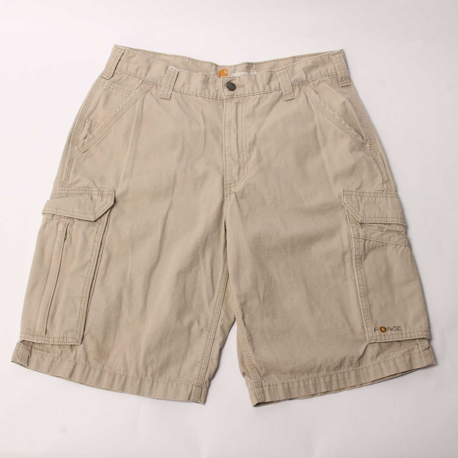 Carhartt "FORCE" 33inch damaged shorts ダメージあり カーハート ワーク ショーツ ハーフパンツ 短パン レギュラー L コットン ベージュ リップストップ 夏服 サマーショーツ 古着【furugi-1658】