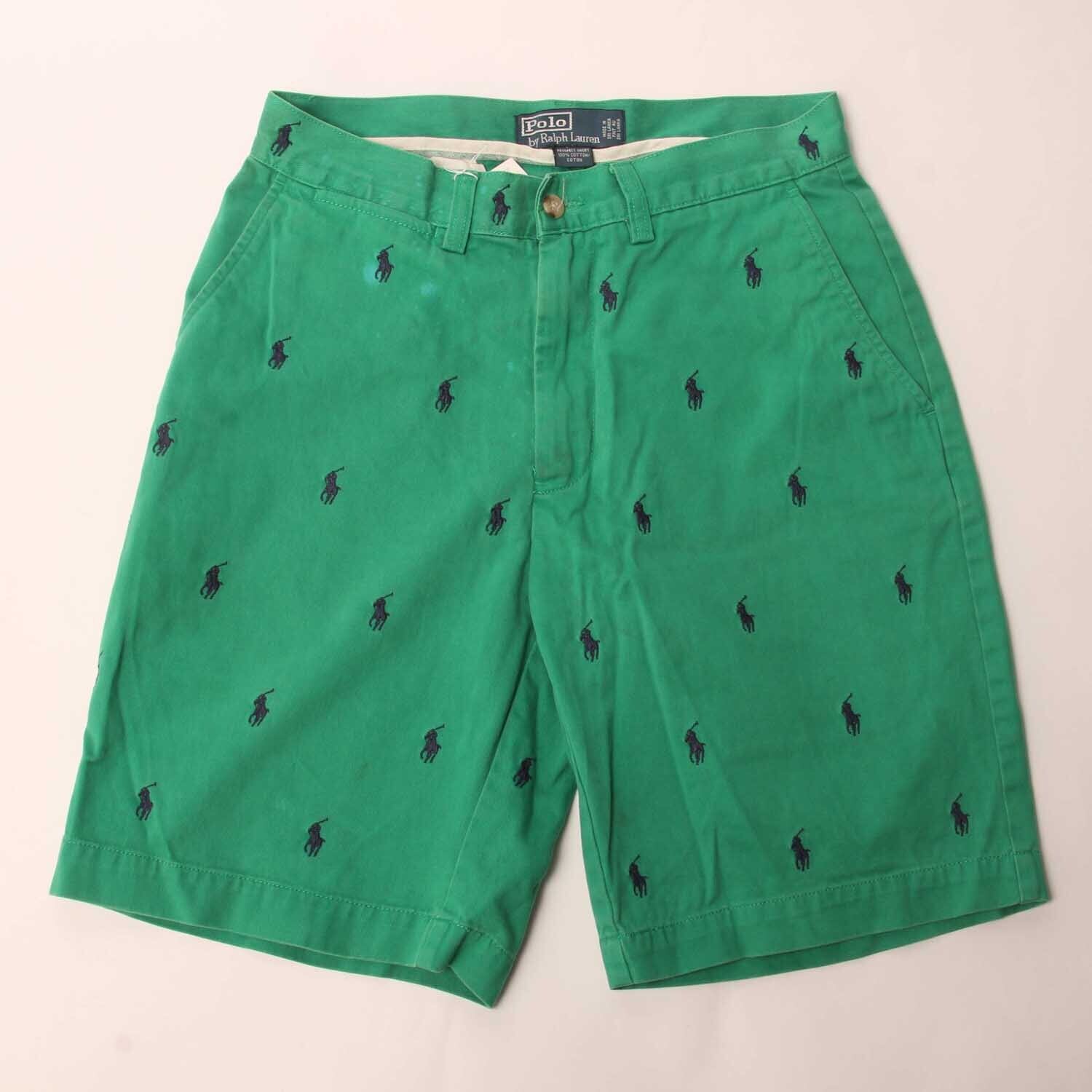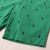 90s-00s Ralph Lauren - green - shorts (navy pony)ラルフローレン ショーツ ハーフパンツ 短パン M コットン グリーン 総柄 刺繍 ポニー 夏物 サマーショーツ 古着【furugi-1682】