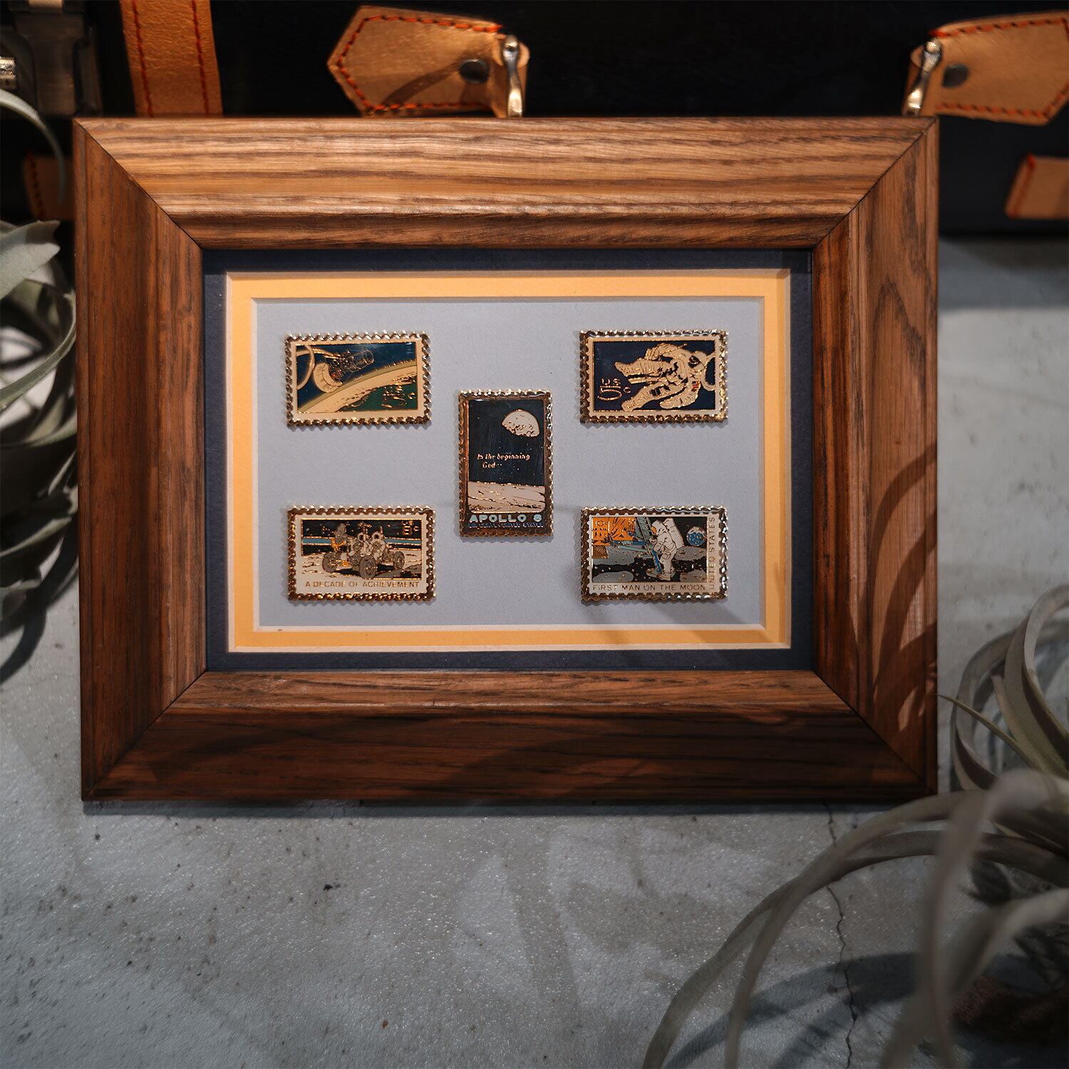 アポロ8号 記念ピンバッジ 切手型 5個セット 額入り NASA Pins【VI-AS1956】