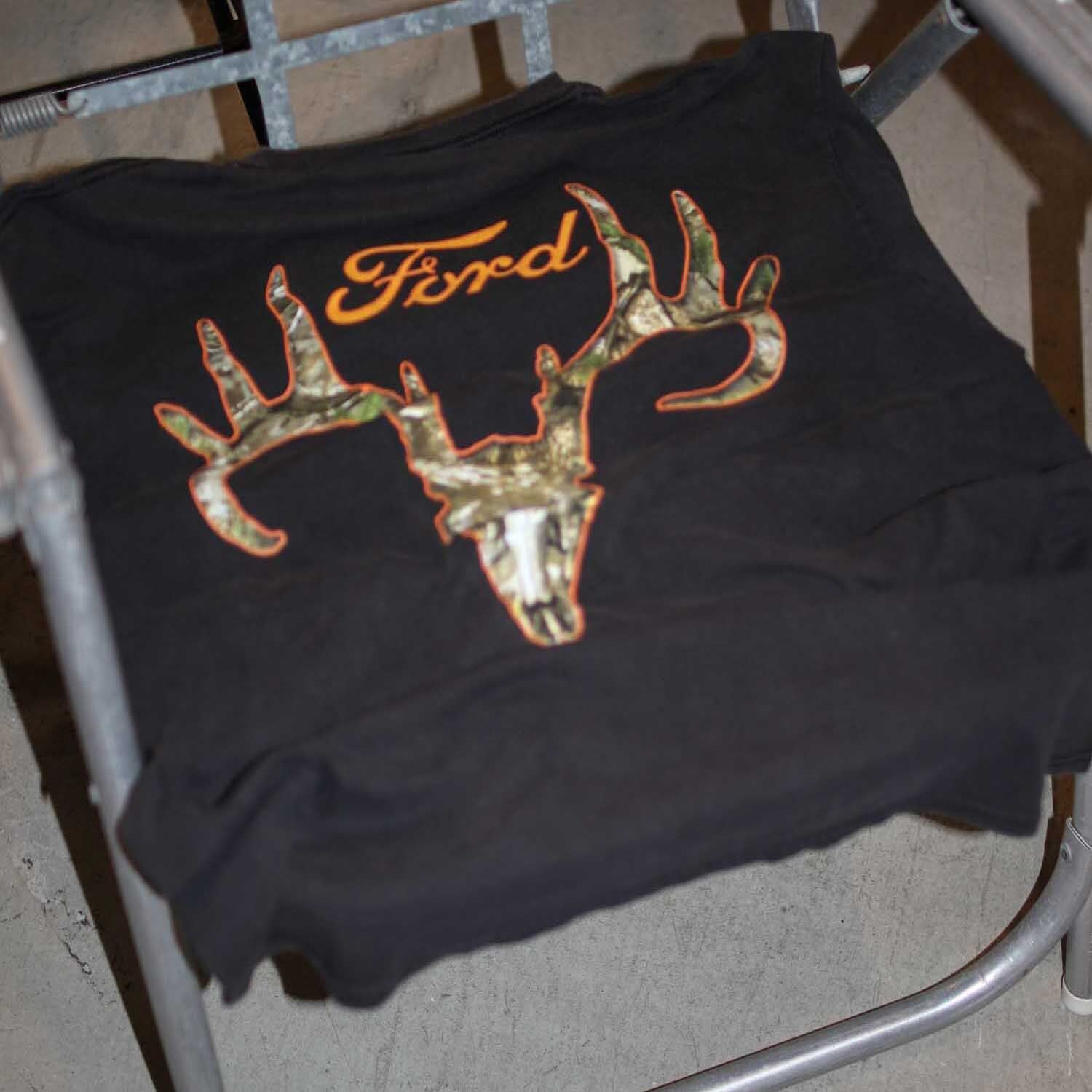 古着 DELTA APPAREL デルタアパレル 「ford」 半袖Tシャツ Y2K 00's L コットン ブラック 良デザイン カモフラ 迷彩 スカル アニマル オレンジ【furugi-1546】