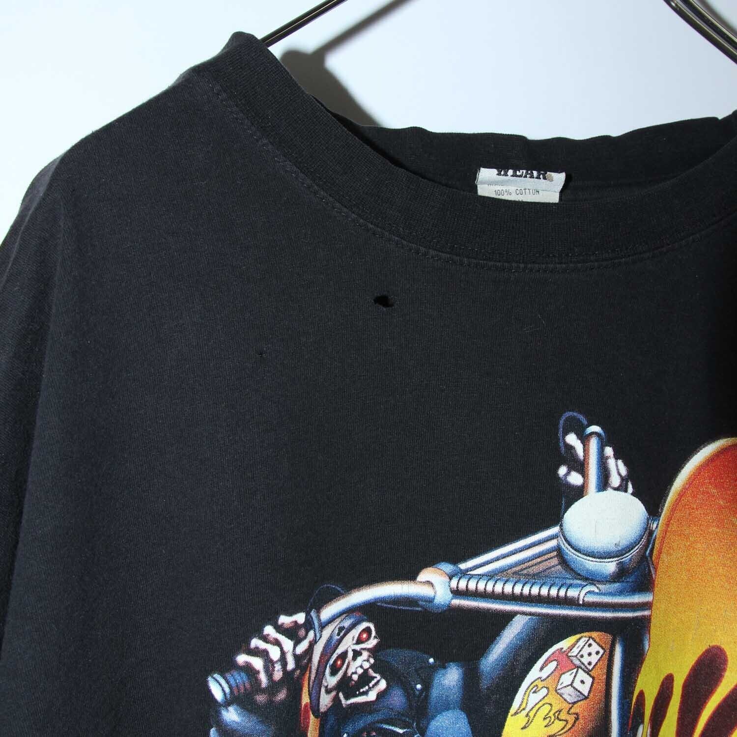 古着 CHOPPER WEAR Y2K フレームパターン 半袖Tシャツ モーター 車 バイク レギュラー L コットン ブラック【furugi-1549】