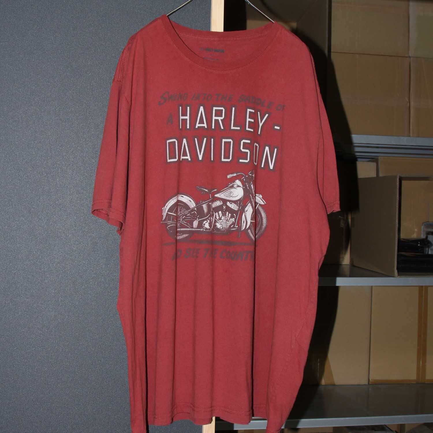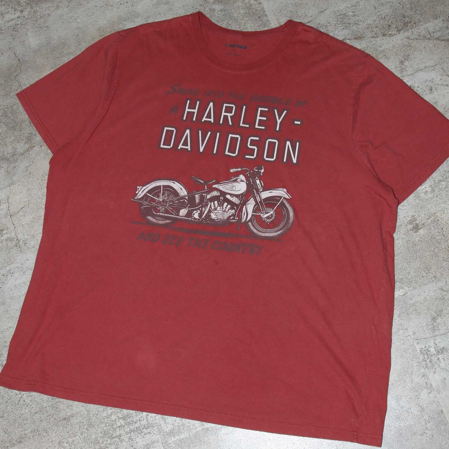 古着 Harley-Davidson 半袖Tシャツ 4XLビッグサイズ ハーレーダビッドソン バーガンディ モーター 車 バイク レギュラー コットン レッド【furugi-1564】