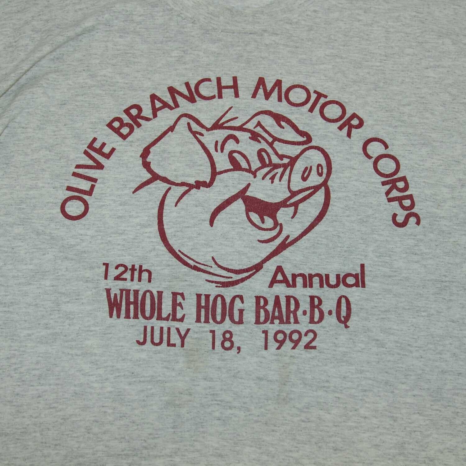 古着 Hanes ヘインズ ヴィンテージ Tシャツ 半袖 90's XL コットン グレー 豚 OLIVE BRANCH MOTOR US製 アメリカ製 シングルステッチ【furugi-1592】