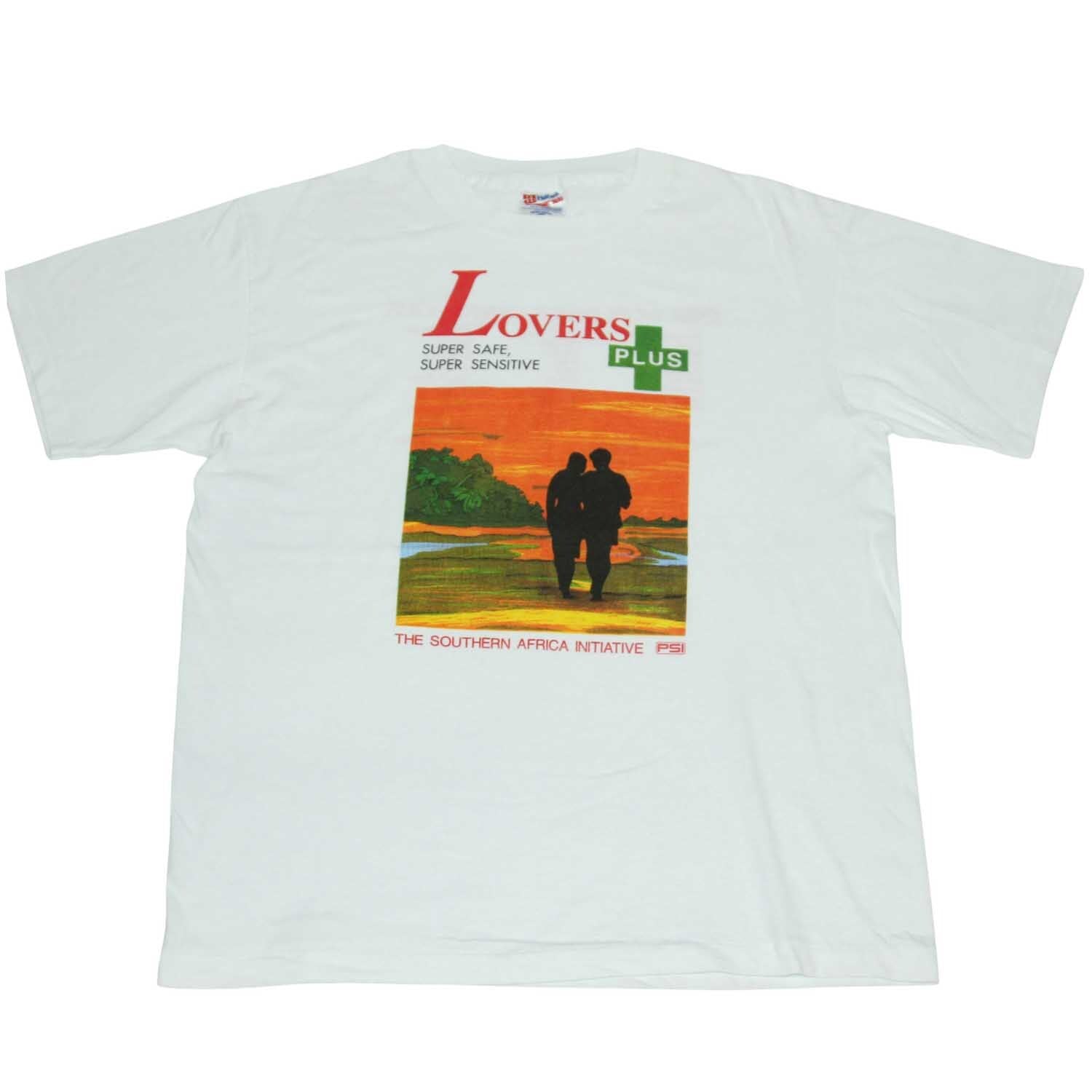 古着 Hanes ヘインズ カジュアル Tシャツ 半袖 90's 90s L コットン ホワイト lovers PLUS US製 アメリカ製【furugi-1624】