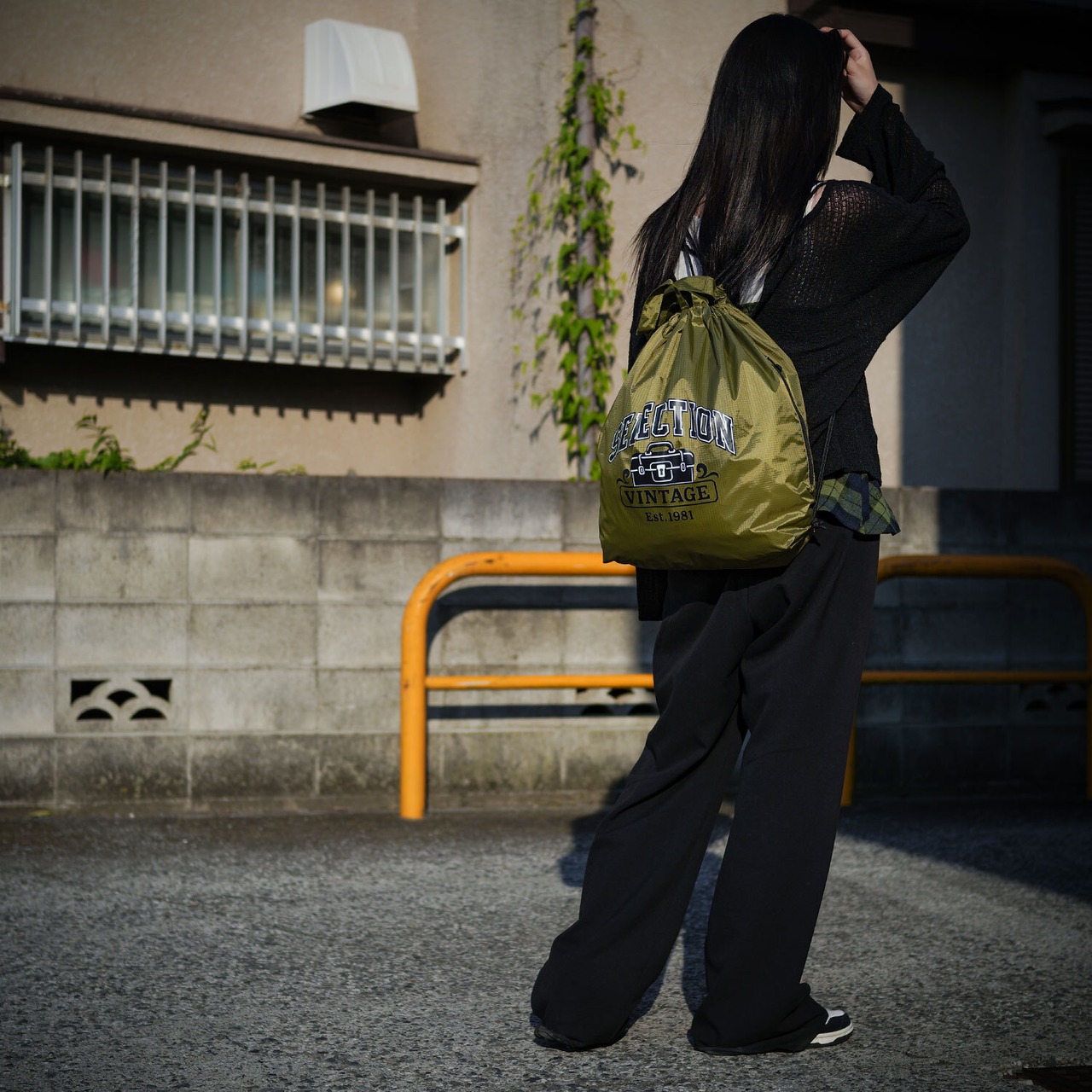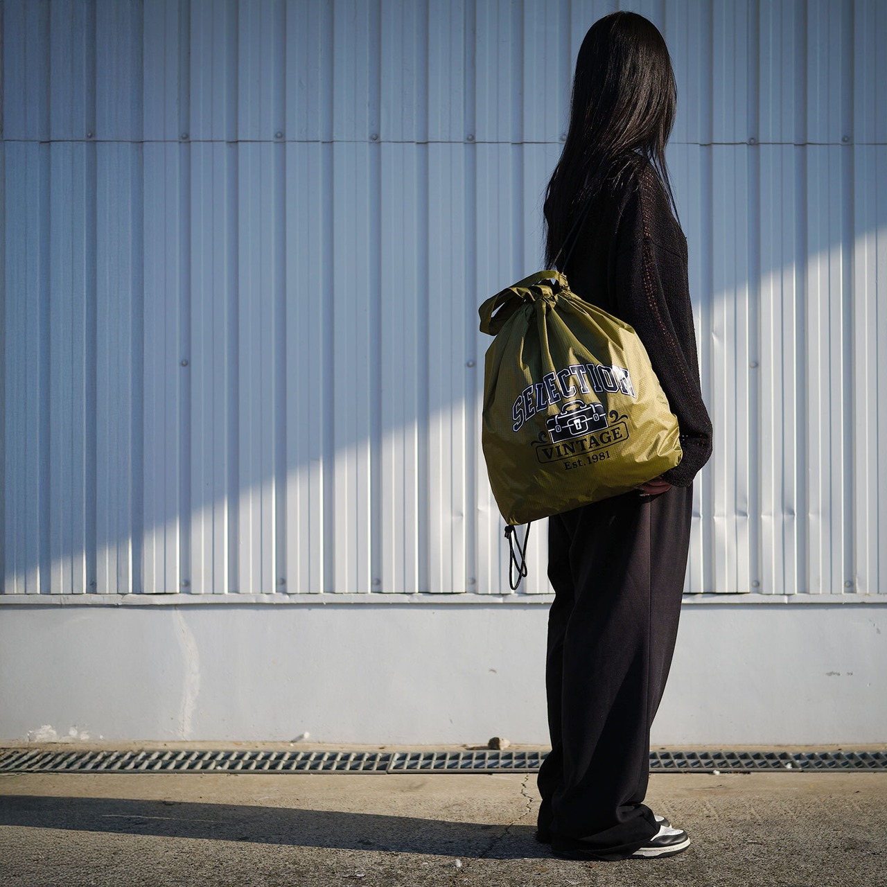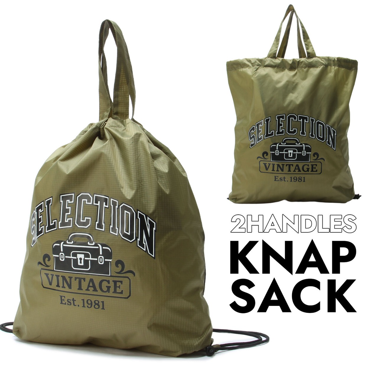 新品 Selection Vintage. オリジナル ナップサック ライトウエイト ナイロン リップストップ オリーブ グリーン ユニセックス ナップザック