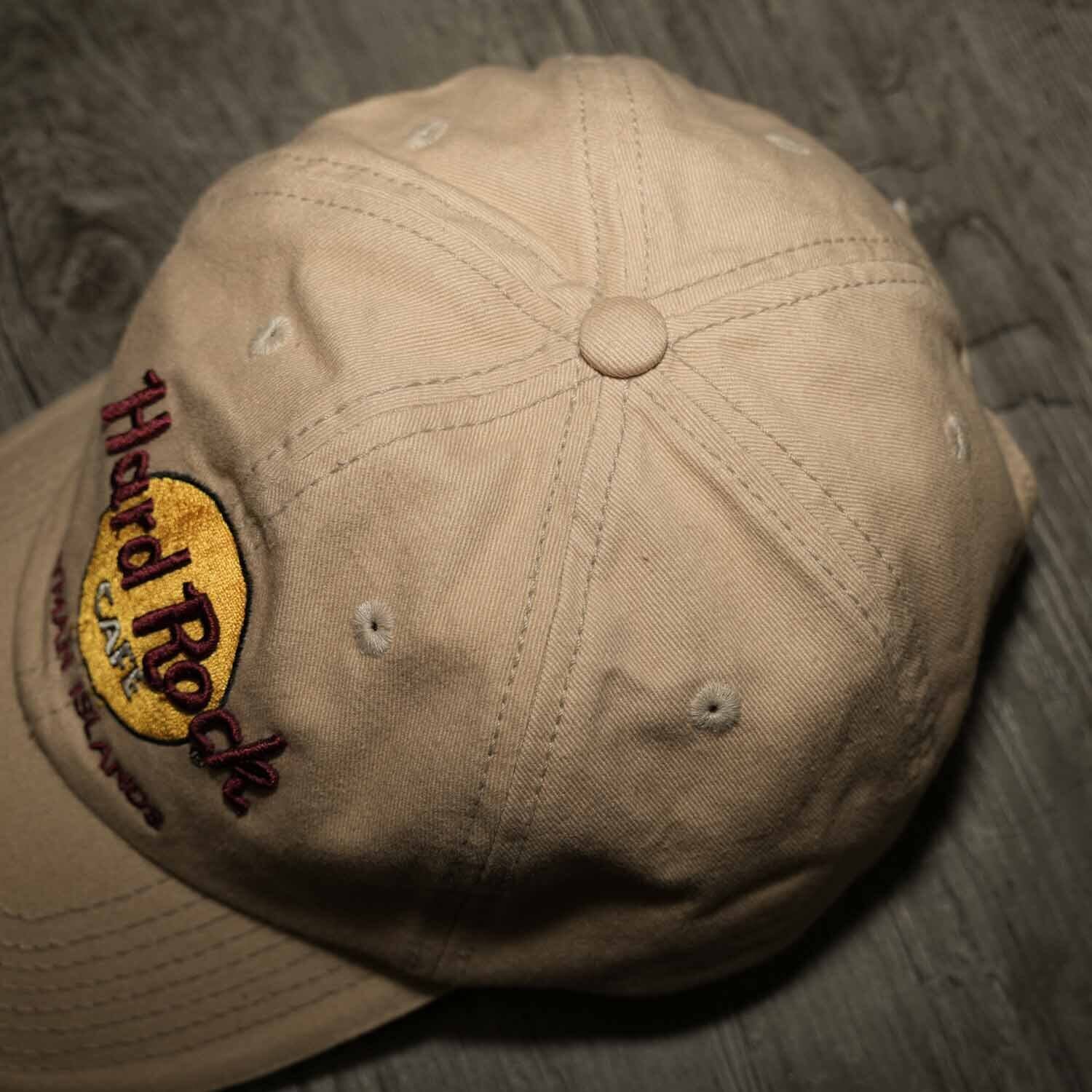 Hard Rock CAFE ハードロックカフェ キャップ 帽子 ベージュ 100%コットン CAYMAN ISLANDS 刺繍ロゴ ALL IS ONE ベージュ 古着【furugi-1051】