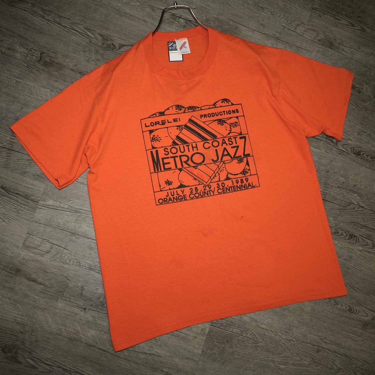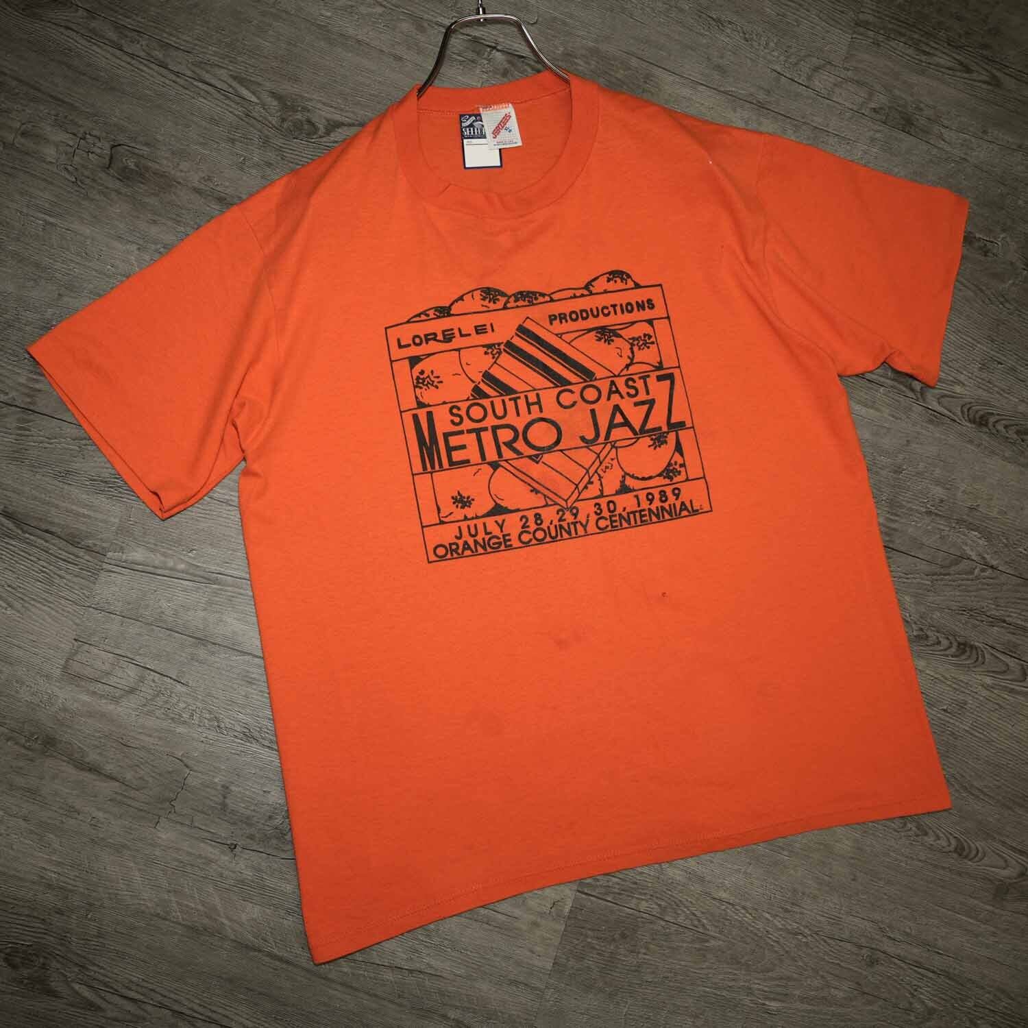 80s music tee ヴィンテージ デザイン Tシャツ オレンジ jazz fest 良デザイン フェス 音楽 サイケ 野外フェスにもおすすめ 古着