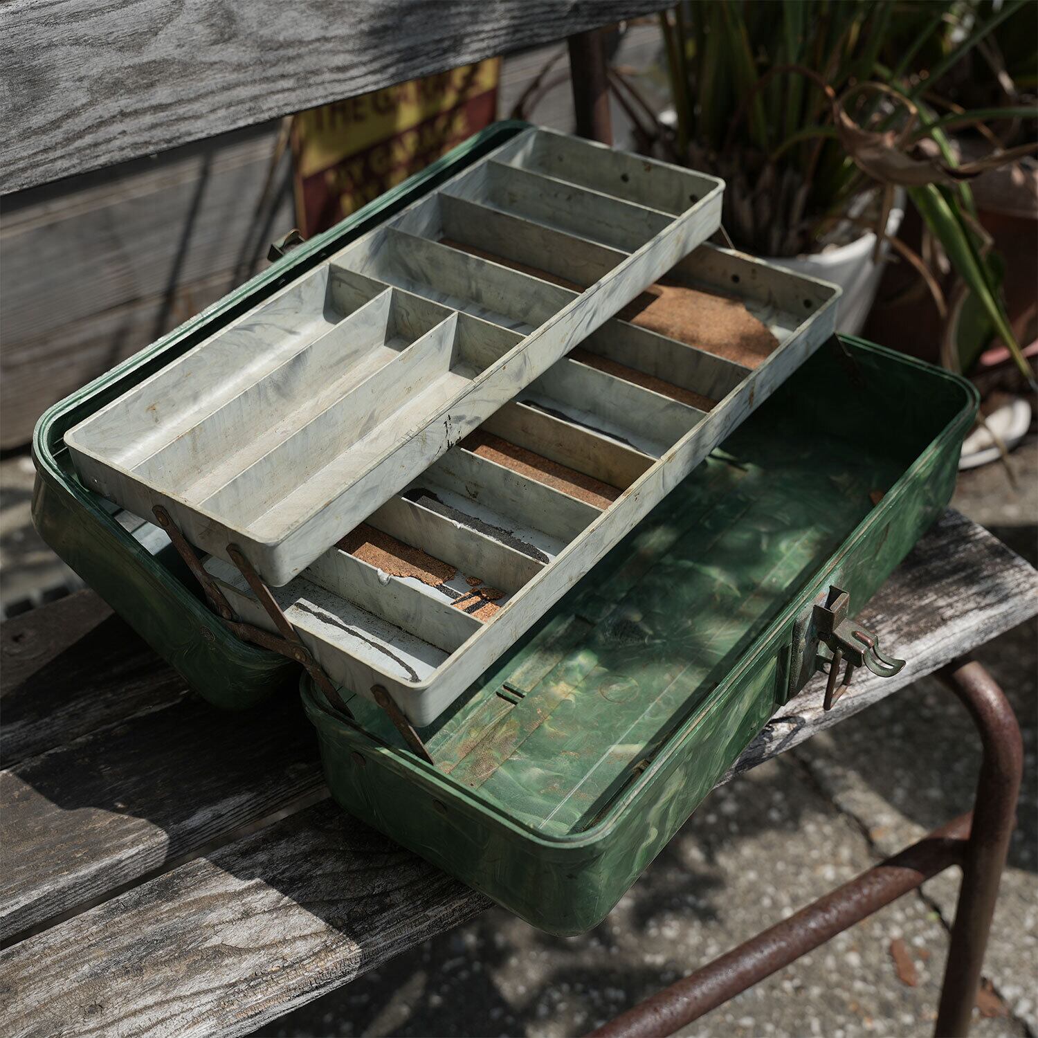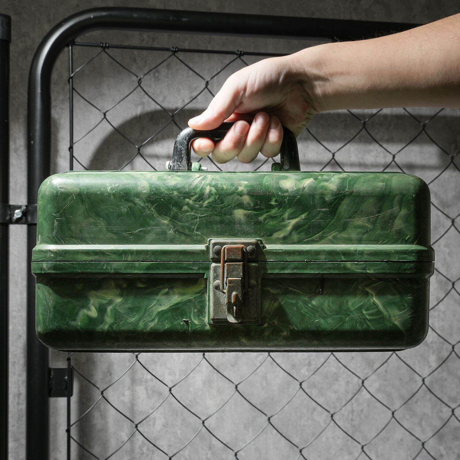 ヴィンテージ 工具箱 ツールボックス TOOLBOX 道具箱 タックルボックス PLA TAK マーブル グリーン PLANO MOLDING CO. アメリカ製【VI-1591】レトロ
