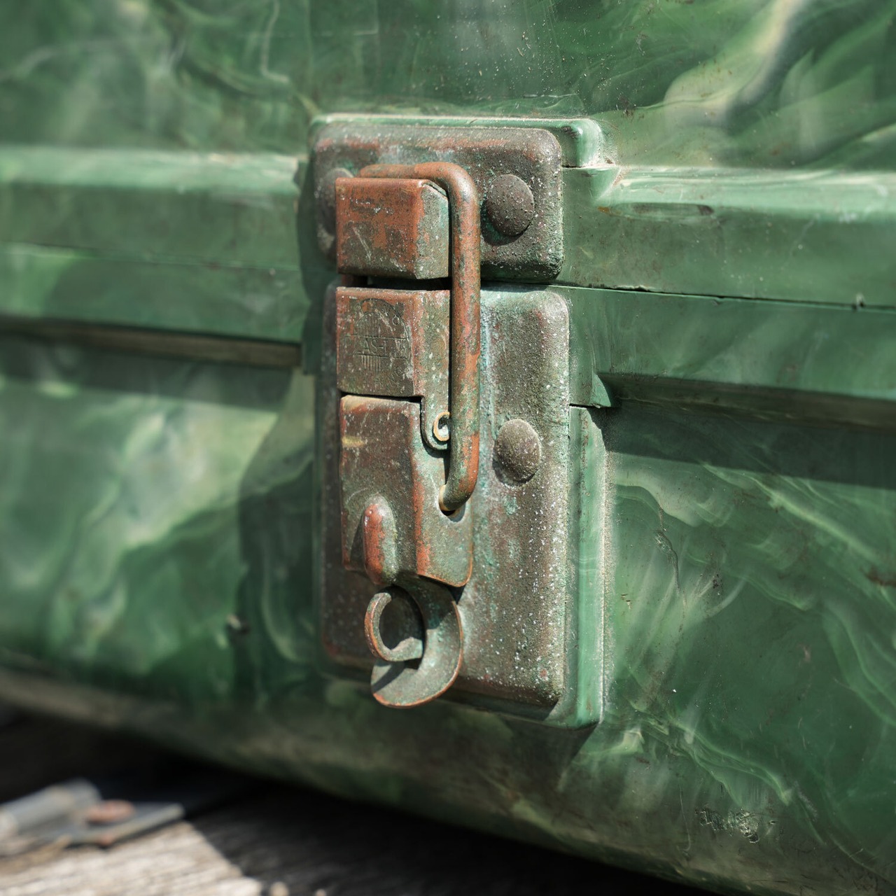 今の時代ではほとんど見かけない、マーブル模様のツールボックスです。アメリカの古き良き時代を感じさせる、サイケデリックでありながらも落ち着きのあるカラーリングが特別です。