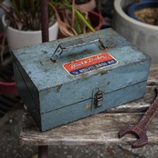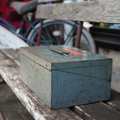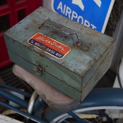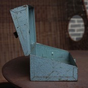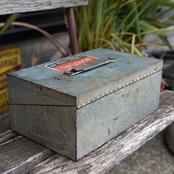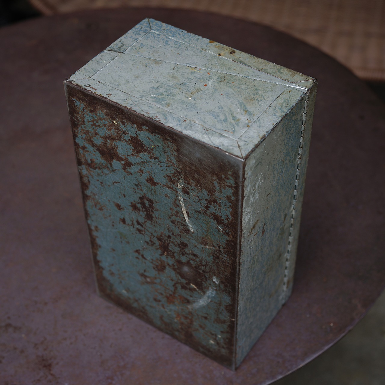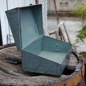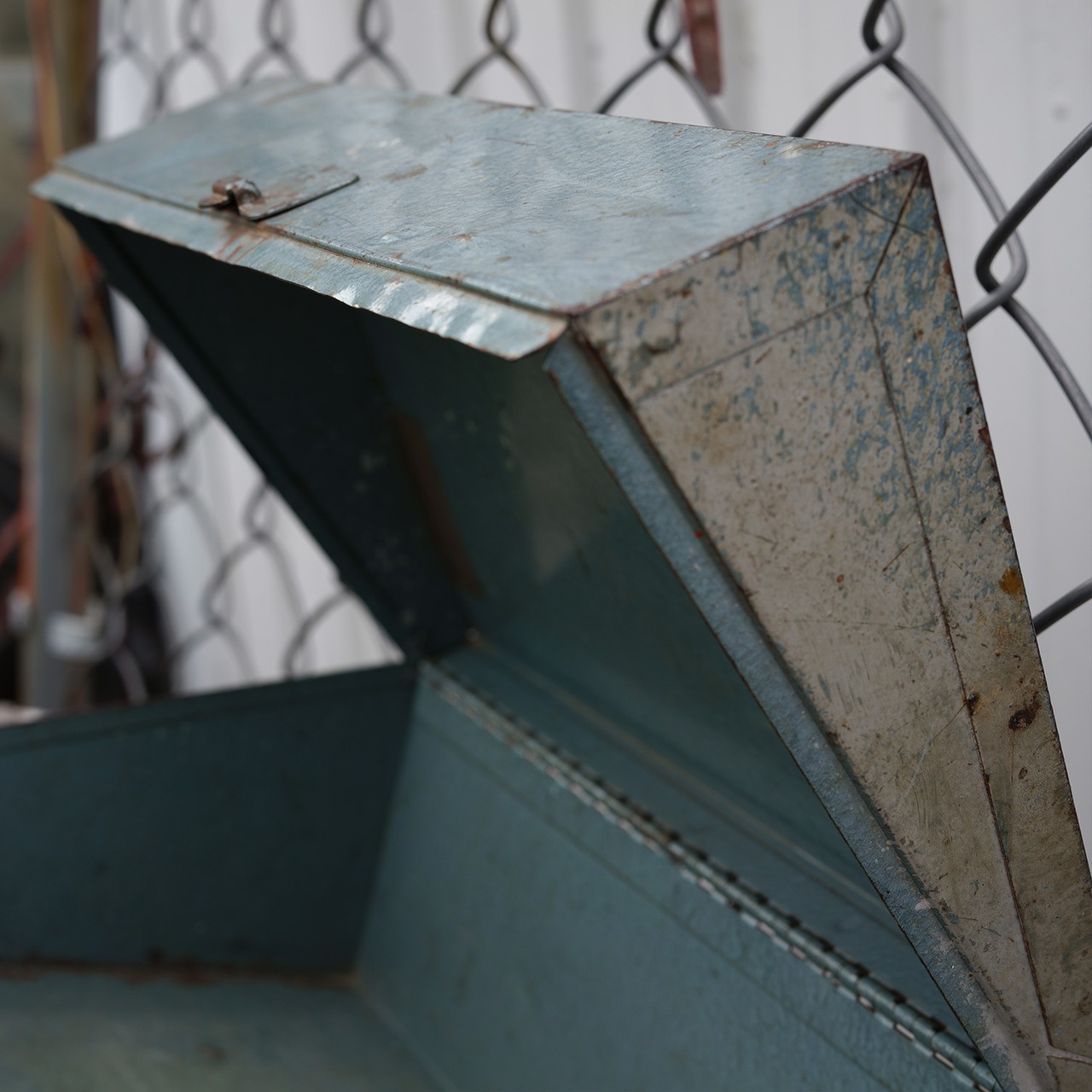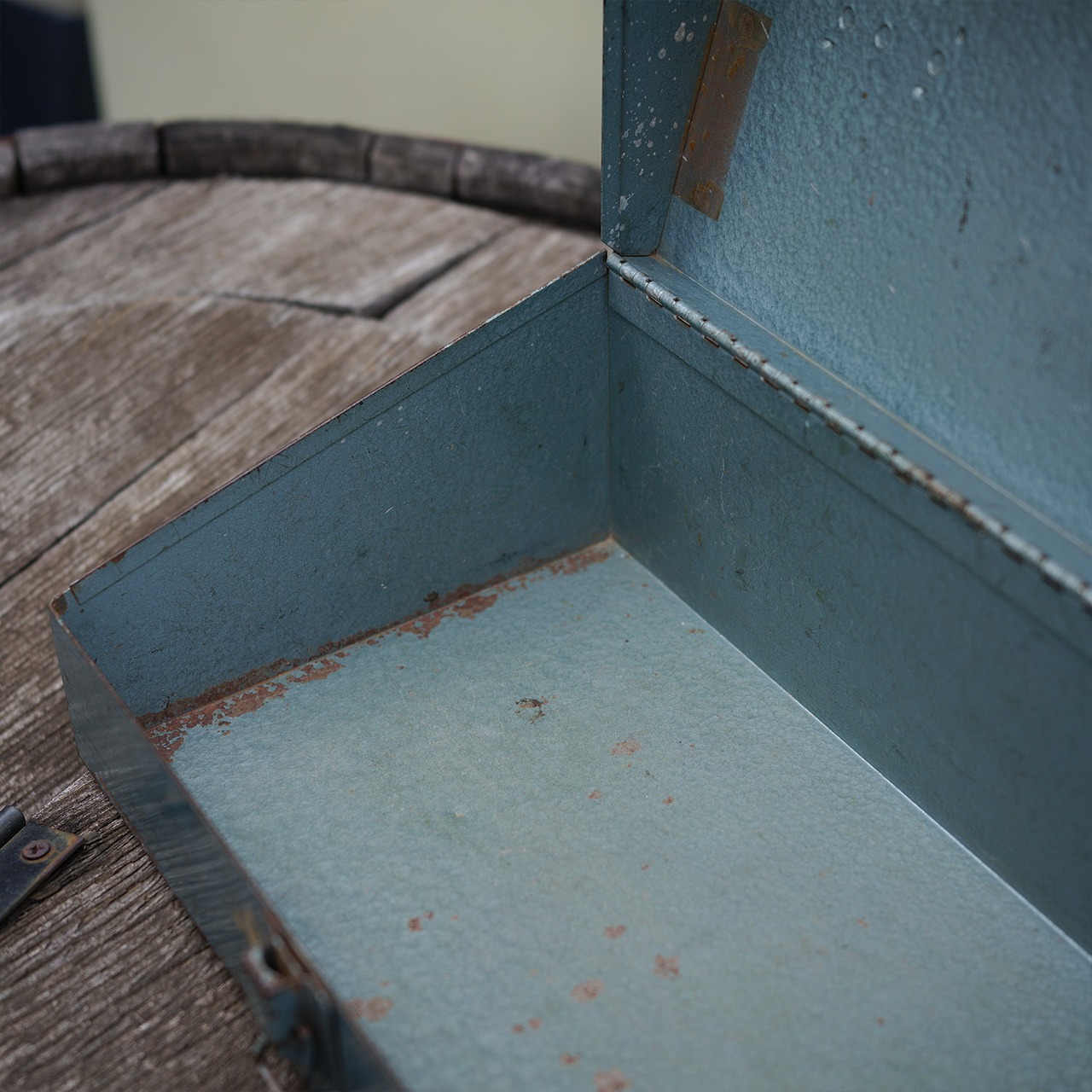 レトロなアイアンブルーの塗装と褪せたステッカーラベル。ラッチや取手のサビまでが“工具史のワンシーン”を物語ります。かつて 1/4 インチ電動ドリルが収まっていた純正ボックス。薄鋼板製で見た目より軽量、片手でラクに持ち運べるのも魅力です。ガレージ収納やキャンプギア入れ、インダストリアルなディスプレイとしても活躍します。
