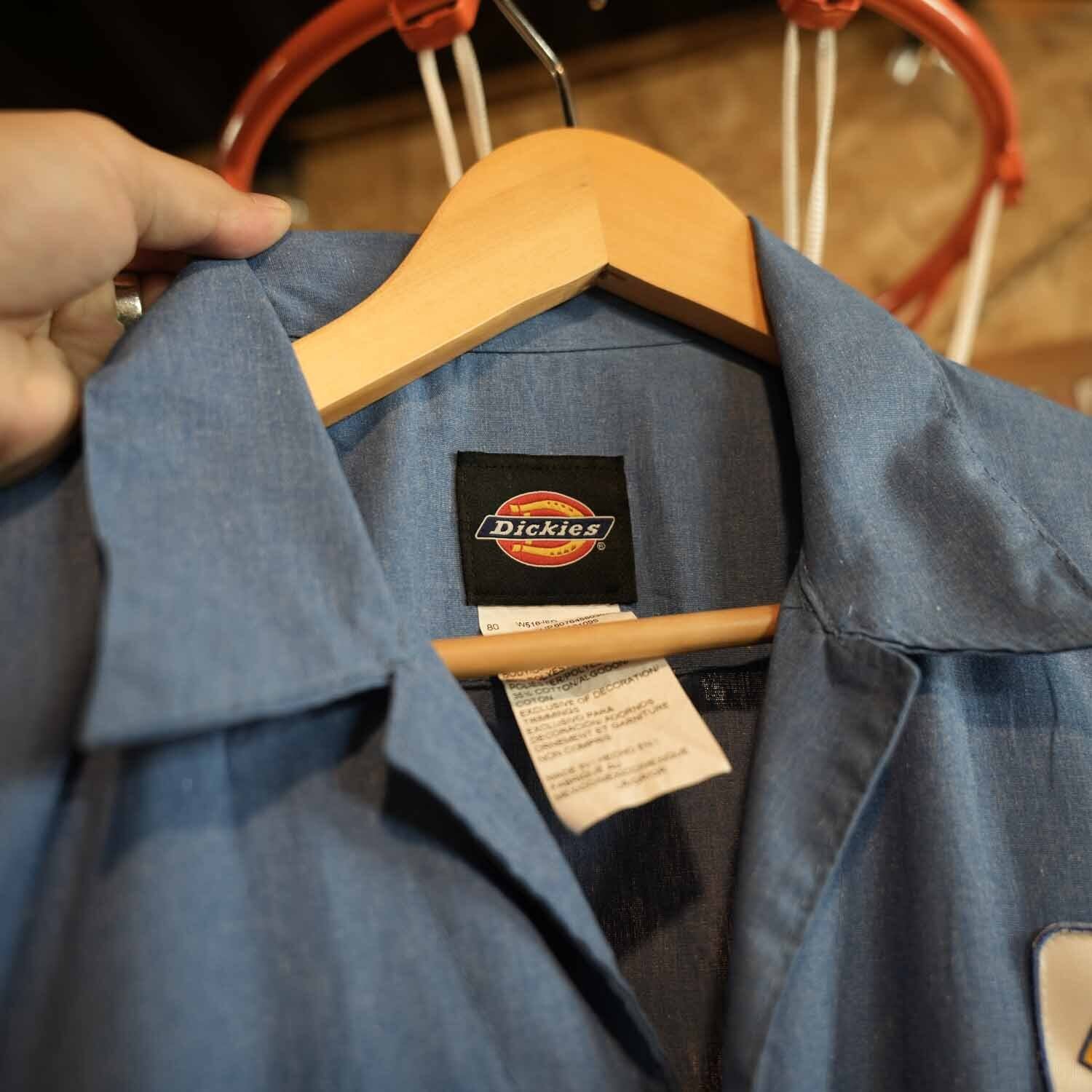 00s Dickies つなぎ オーバーオール 半袖 ワーク ワッペン付 ジャンプスーツ メキシコ製 ブルー 古着【furugi-1512】