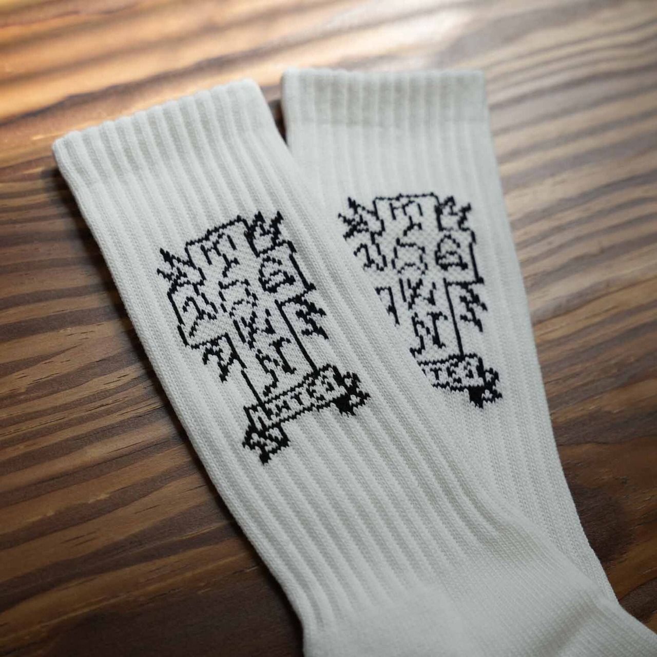コットンベースの度詰め(糸を目一杯詰めて高密度に編むこと)リブソックス。