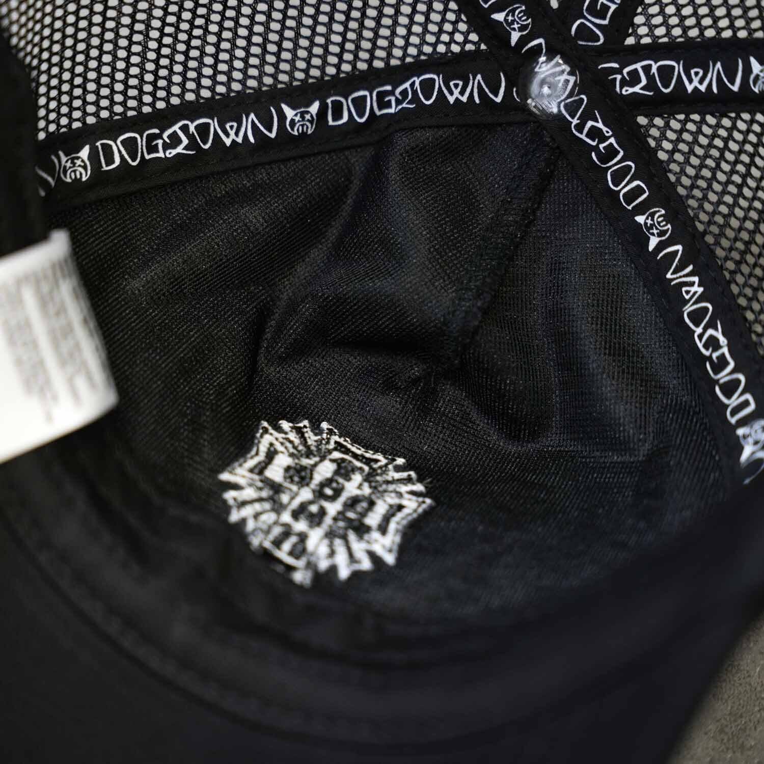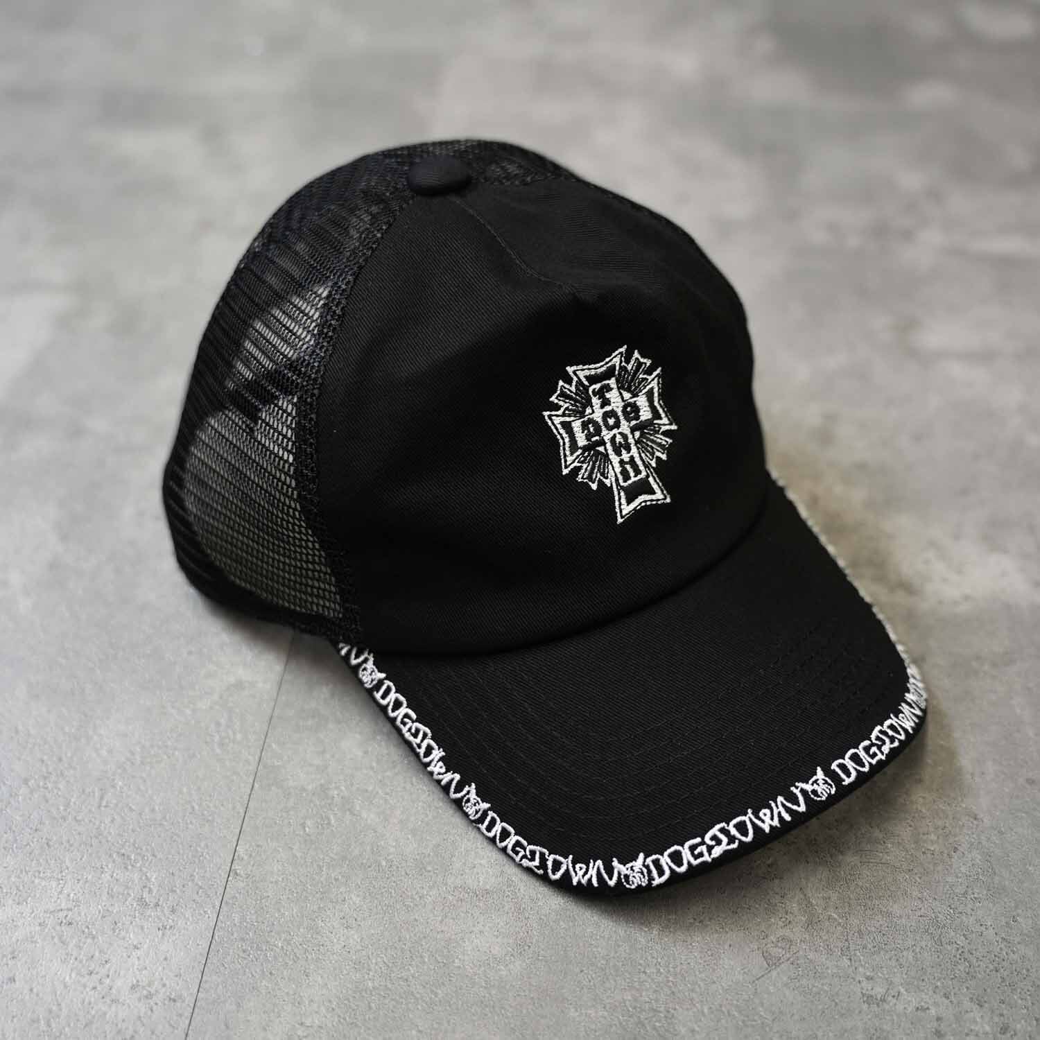 フロントにはアイコニックな クロスロゴ刺繍 を配置し、ツバの縁には「DOGTOWN」ロゴを連続刺繍であしらった存在感あるデザイン。