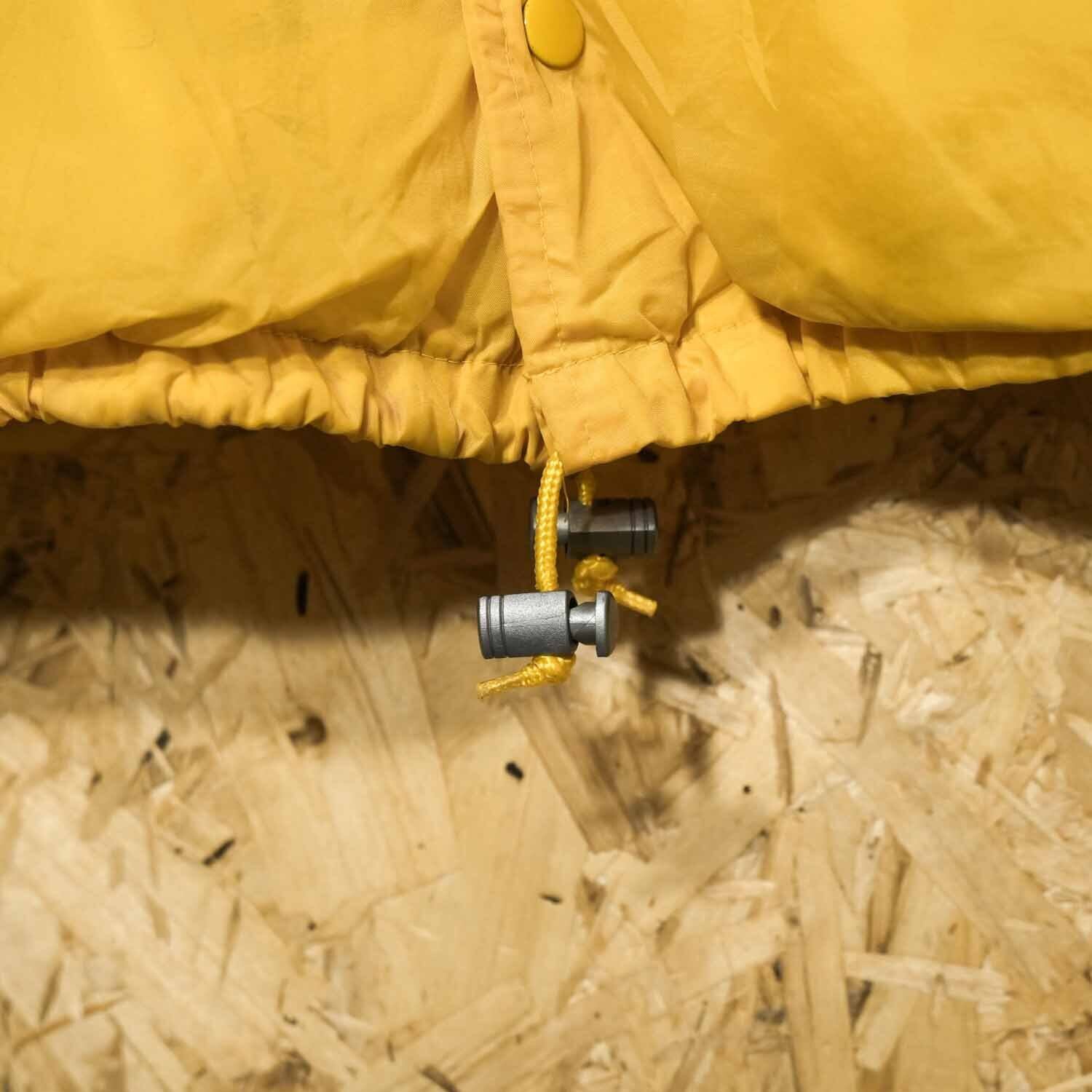 フロントはスナップボタン仕様、裾にはドローコードを備え、シルエットの調整も可能。裏地はポリエステルライニングで、軽量かつ快適な着心地を実現しています。