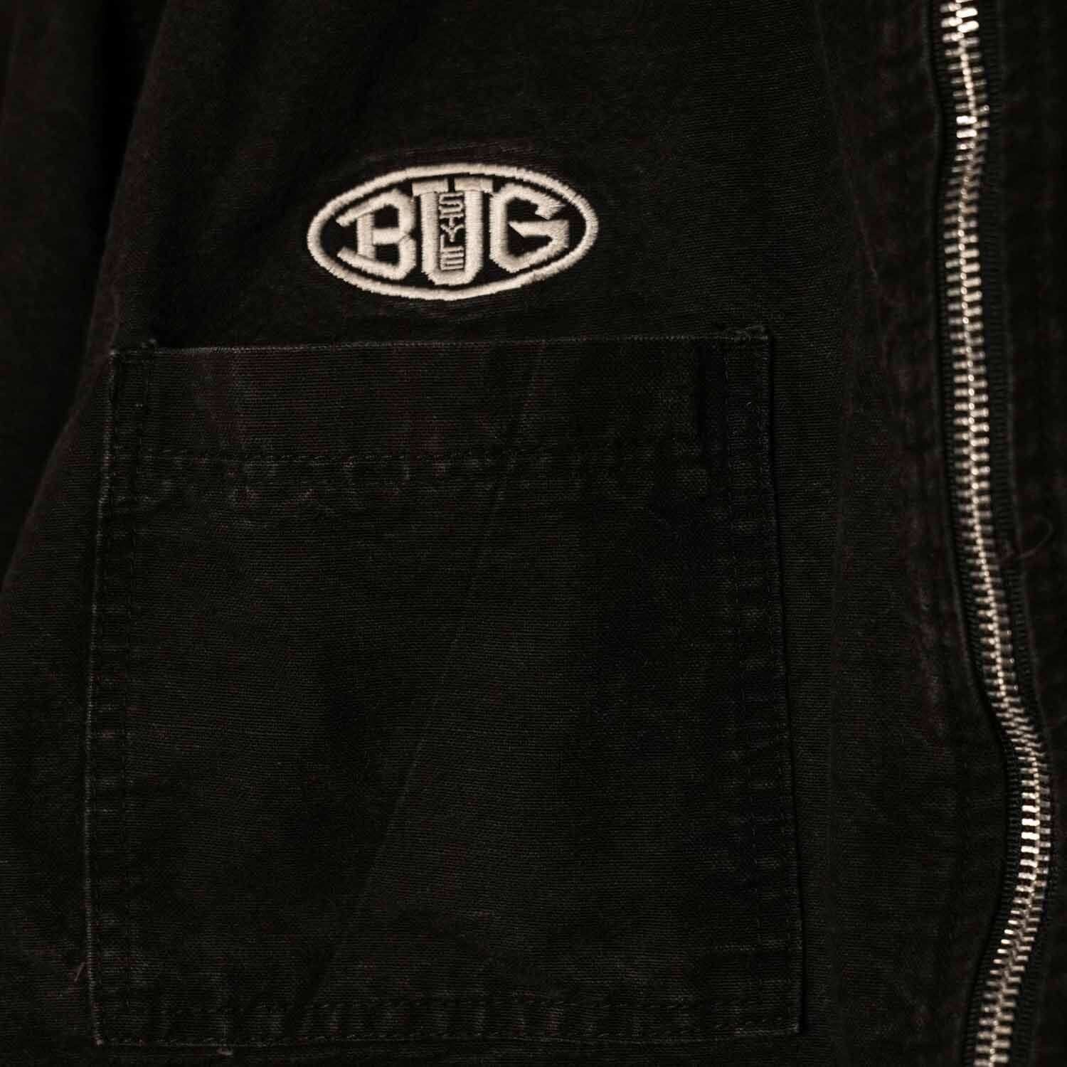 フロントに「BUG STYLE」ロゴ刺繍ワッペンを配したワークジャケット。