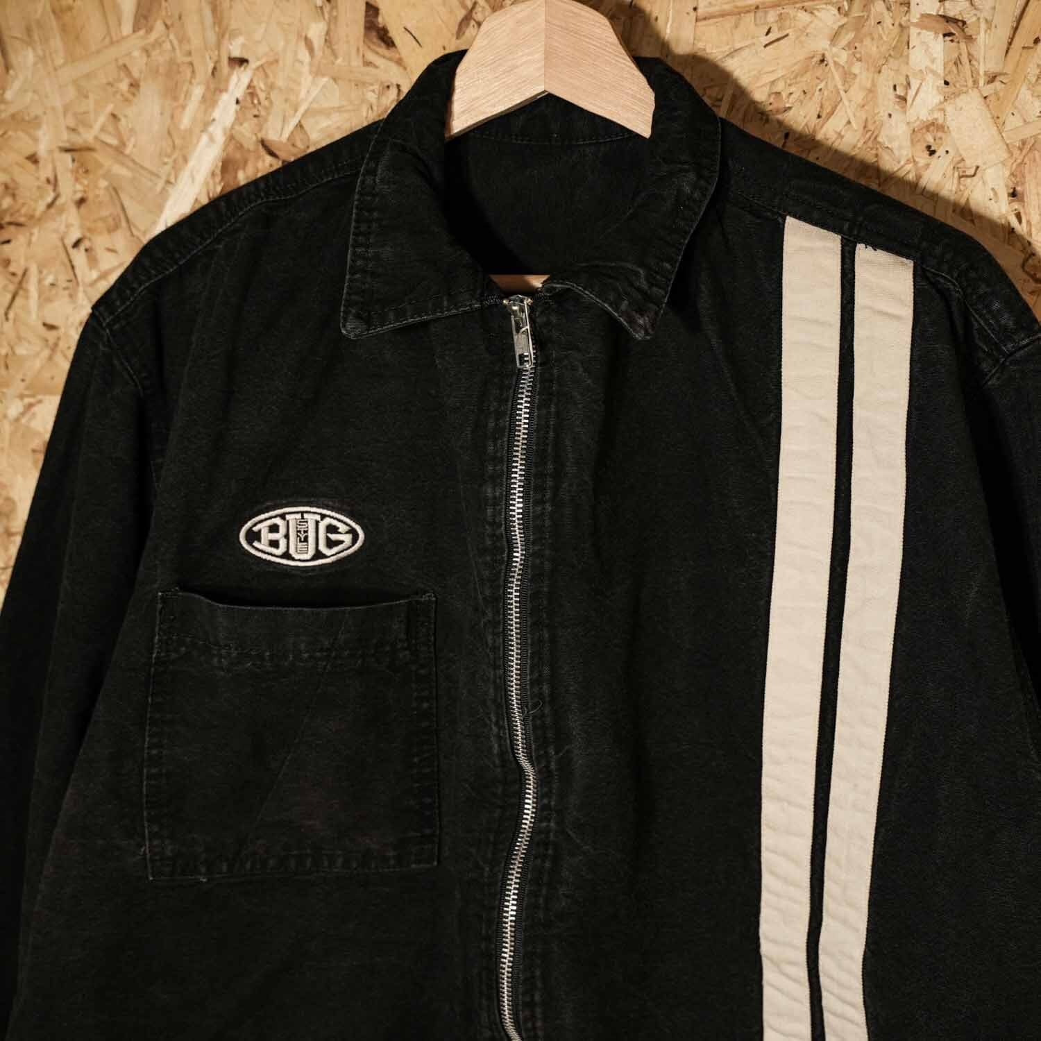 90s〜00s BUG STYLE コットン レーシングジャケット ライン入り スイングトップ ジップアップブルゾン モータースポーツ モノトーン 古着【furugi-0967】