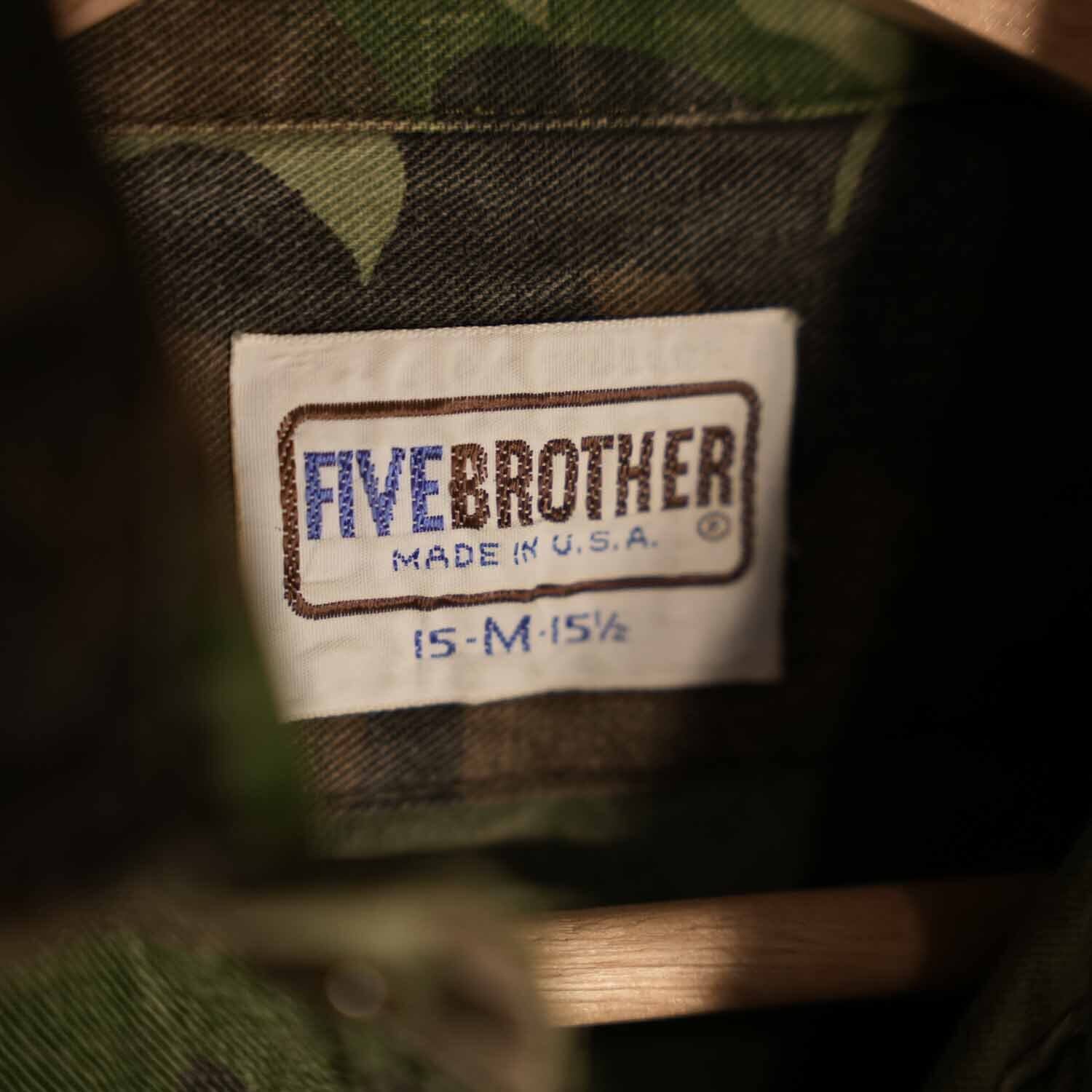 アメリカ老舗ワークウェアブランド「FIVE BROTHER(ファイブブラザー)」による、希少なUSA製カモフラージュシャツです。80年代後半頃のヴィンテージアイテムで、無骨なワークスタイルとミリタリーテイストを兼ね備えた一着。
