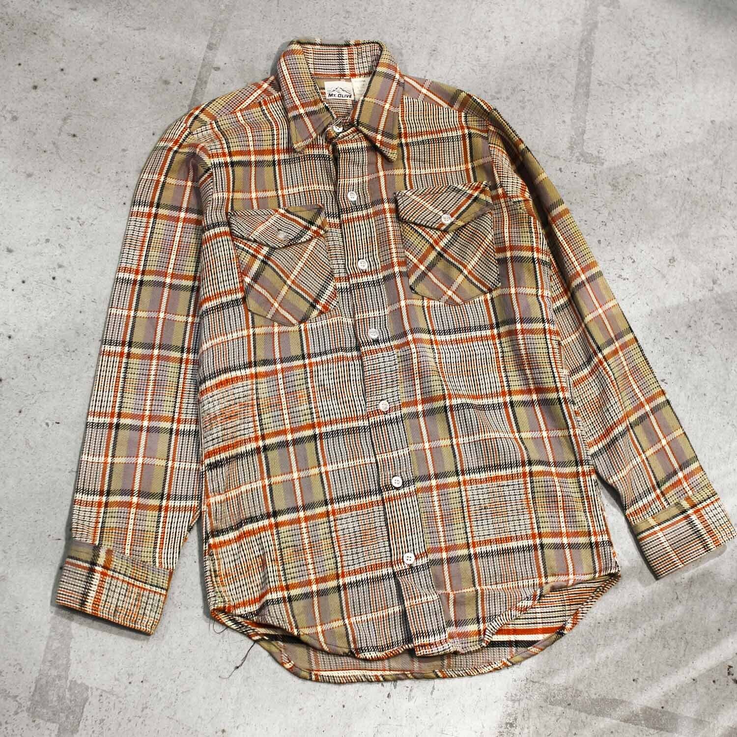 80s〜 Vintage ヴィンテージ MT. OLIVE チェック柄 ウエスタンシャツ サイズ14?14 1/2(メンズS程度) コットンポリ 長袖シャツ【furugi-1243】
