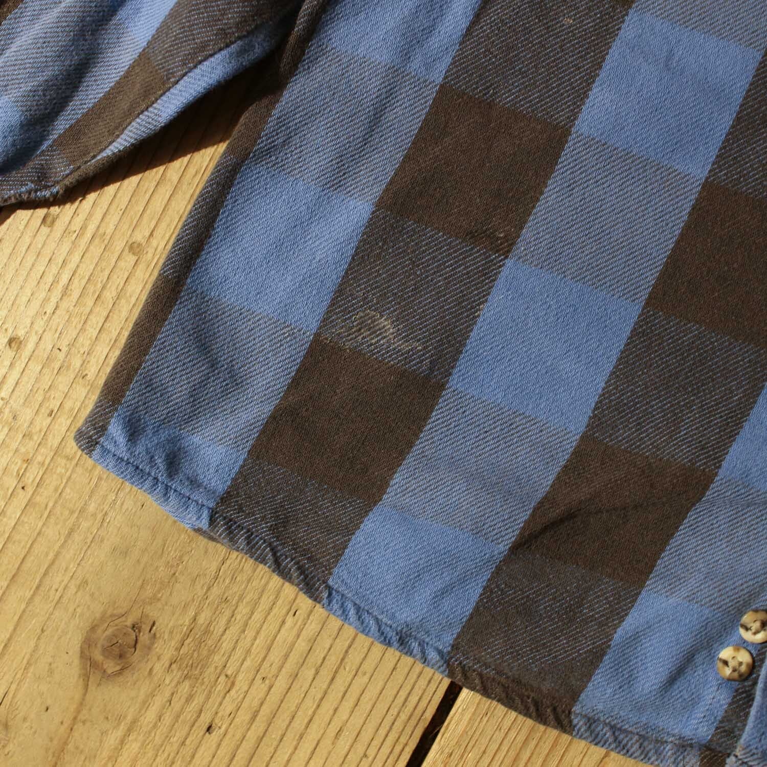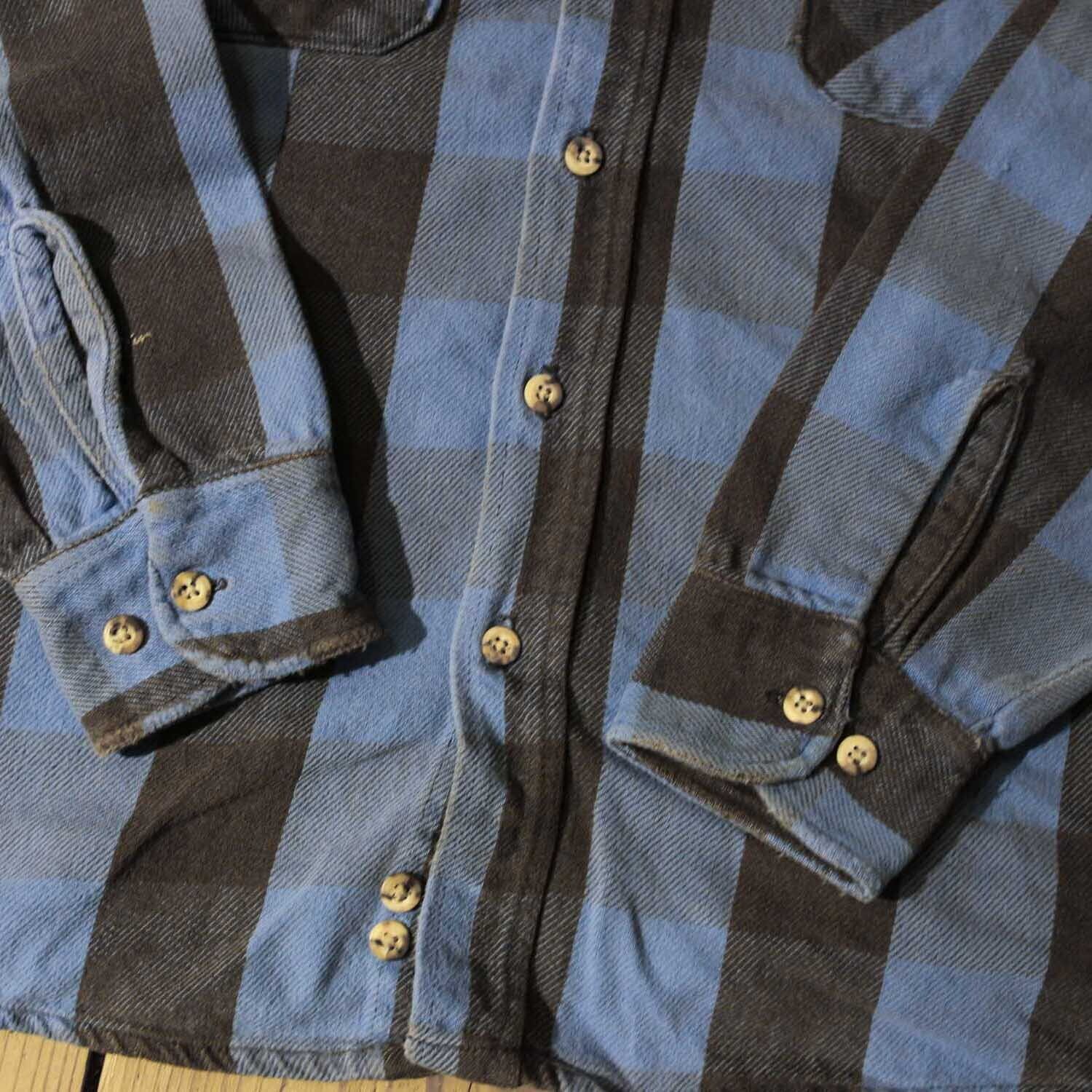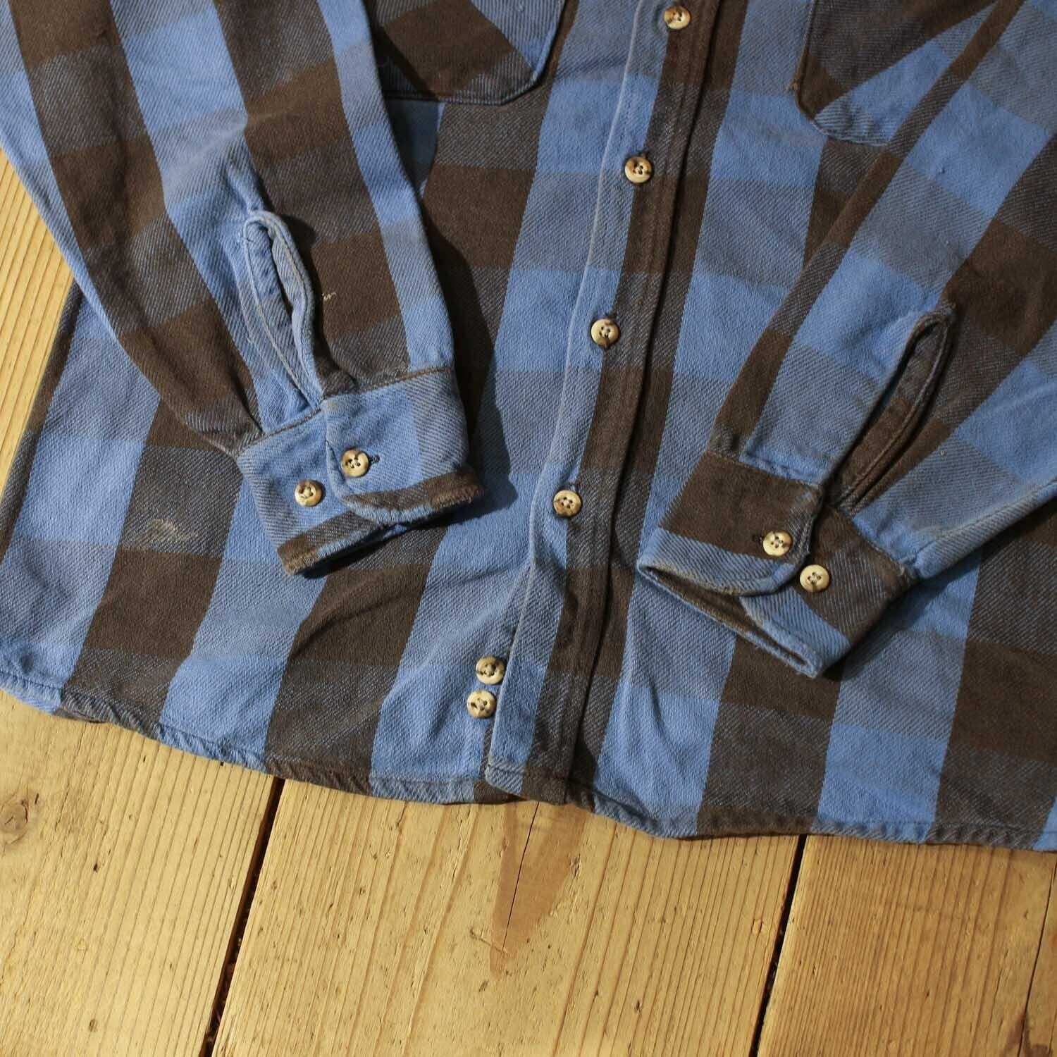 柔らかなコットンフランネル素材で着心地も良く、古着ならではのフェード感がスタイリングに雰囲気をプラスします。80s〜90sらしいアウトドア / ワークテイストを感じられる一枚です。