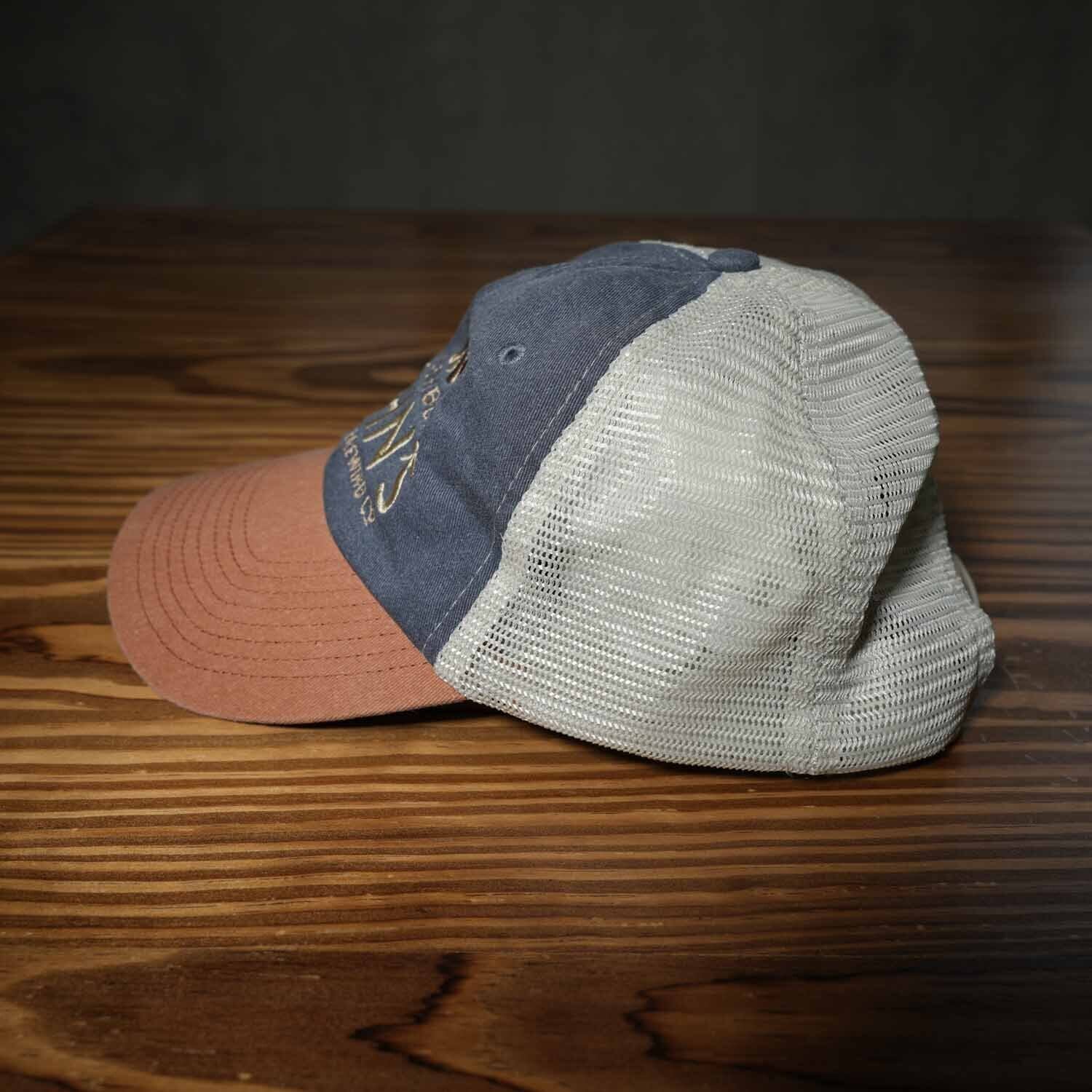 NEIGHBOR JOHN'S Community Brewing Co 刺繍ロゴ メッシュキャップ SPORTSMAN製 ネイビー×ブラウン 90sアメカジ 古着【furugi-1700】