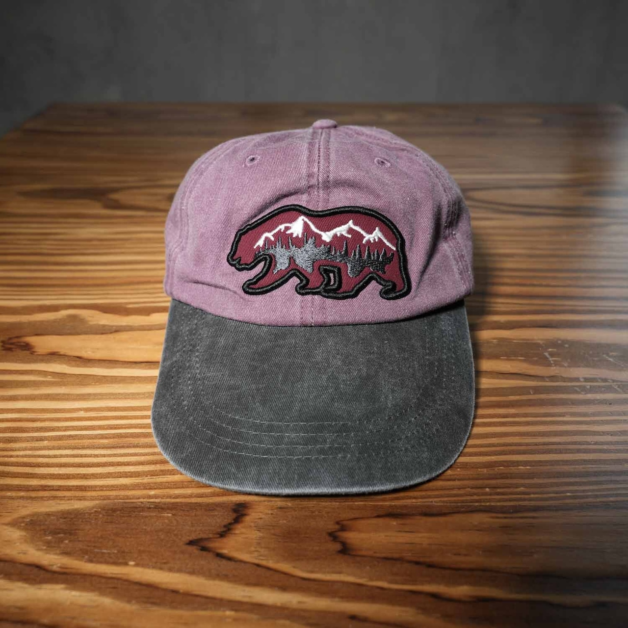 OKCAPS Great Smoky Mountains ベア刺繍キャップ パープル ヴィンテージ加工 6パネル コットン素材 USAカルチャー アメカジ メンズ 古着【furugi-1709】