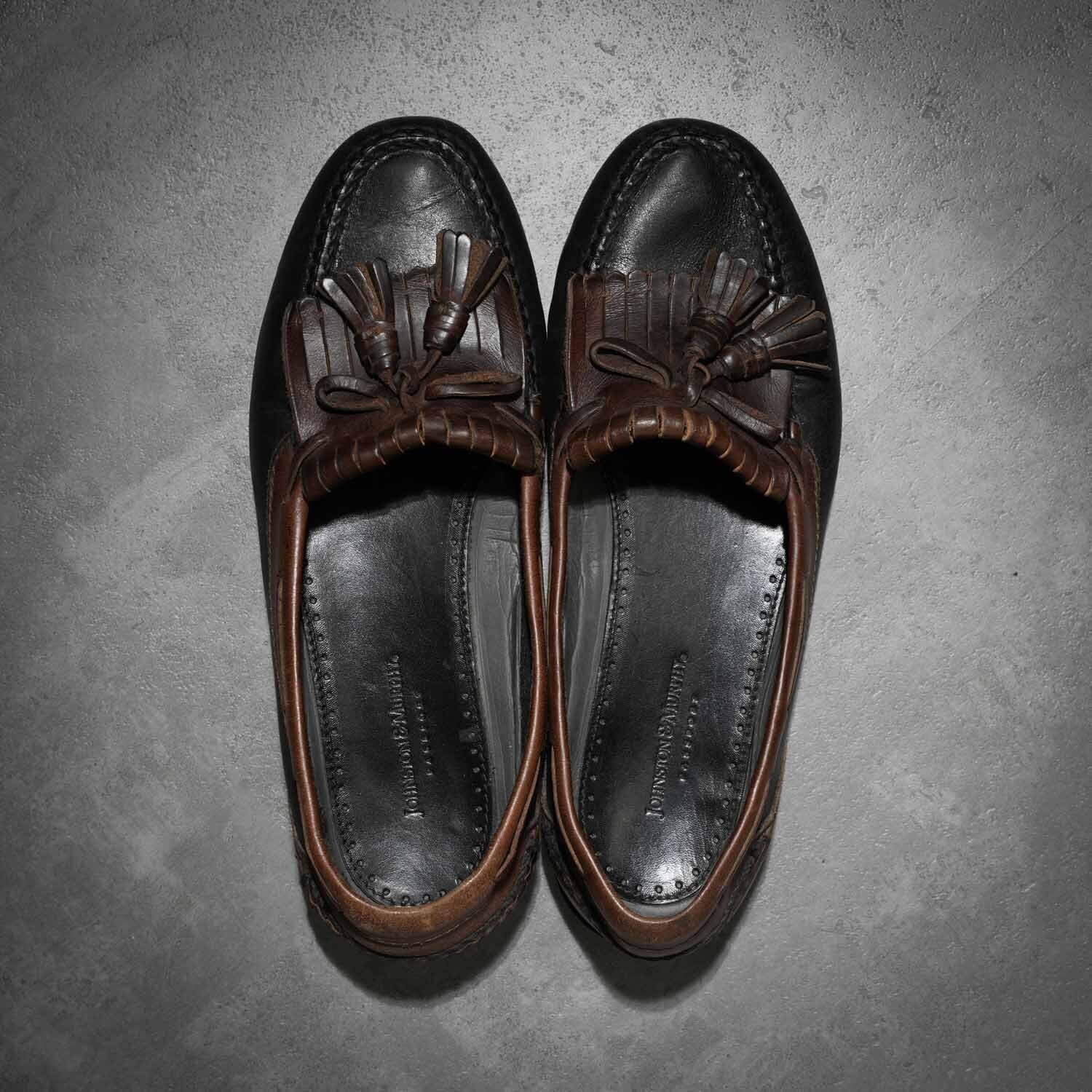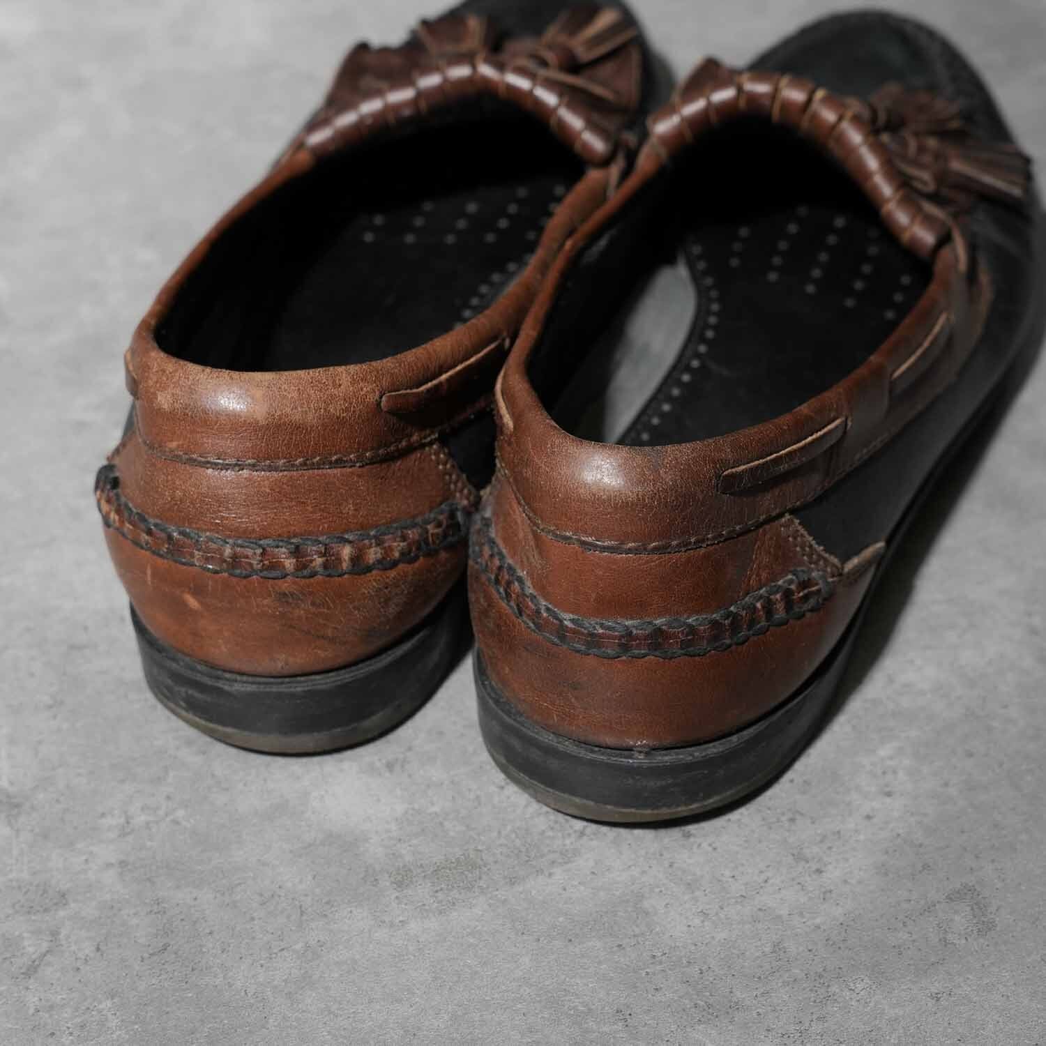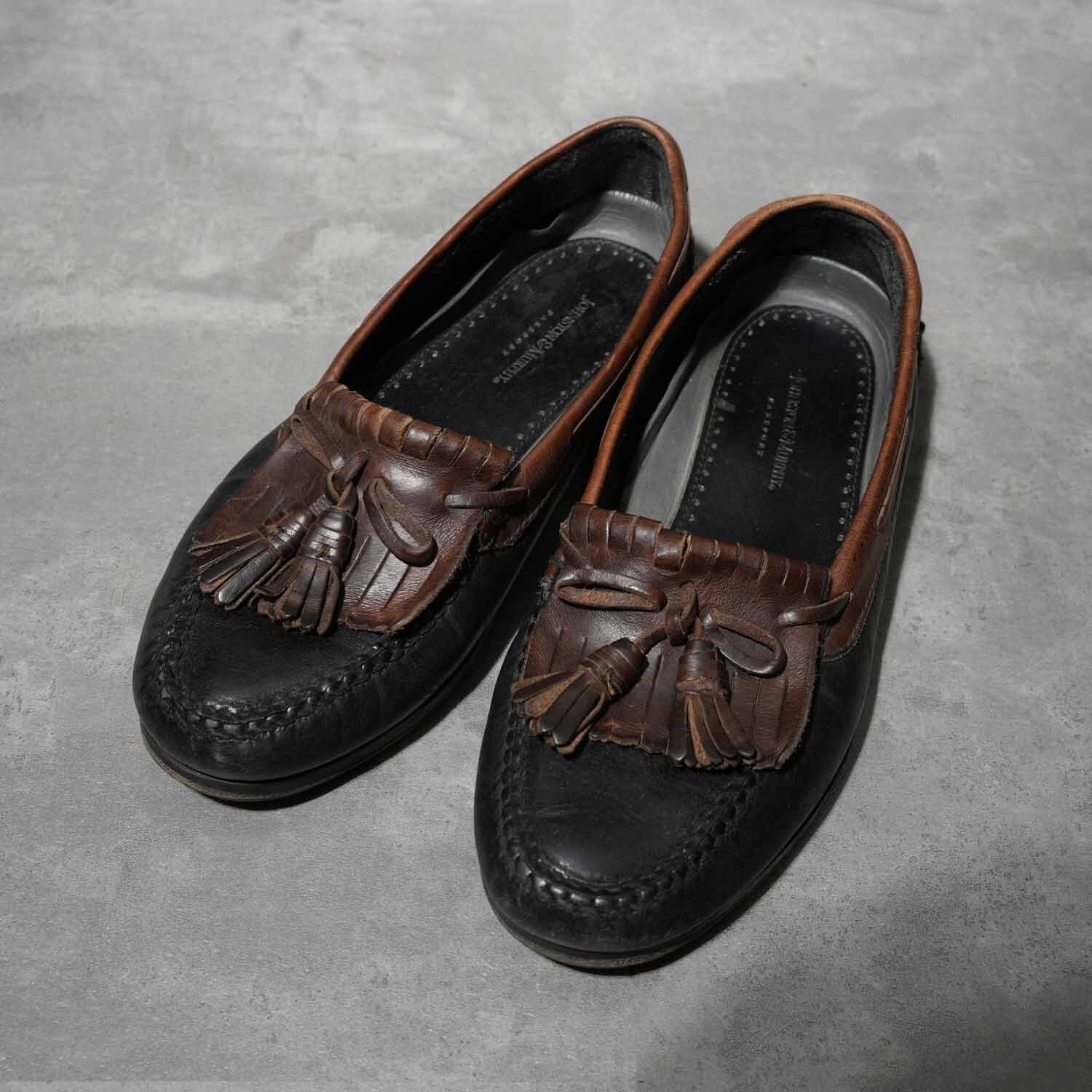 Johnston & Murphy ジョンストン&マーフィー タッセルローファー 80s〜90s メキシコ製 11M(29cm) ブラック×ブラウン レザー 革靴 メンズ アメカジ ヴィンテージ 古着【furugi-1721】