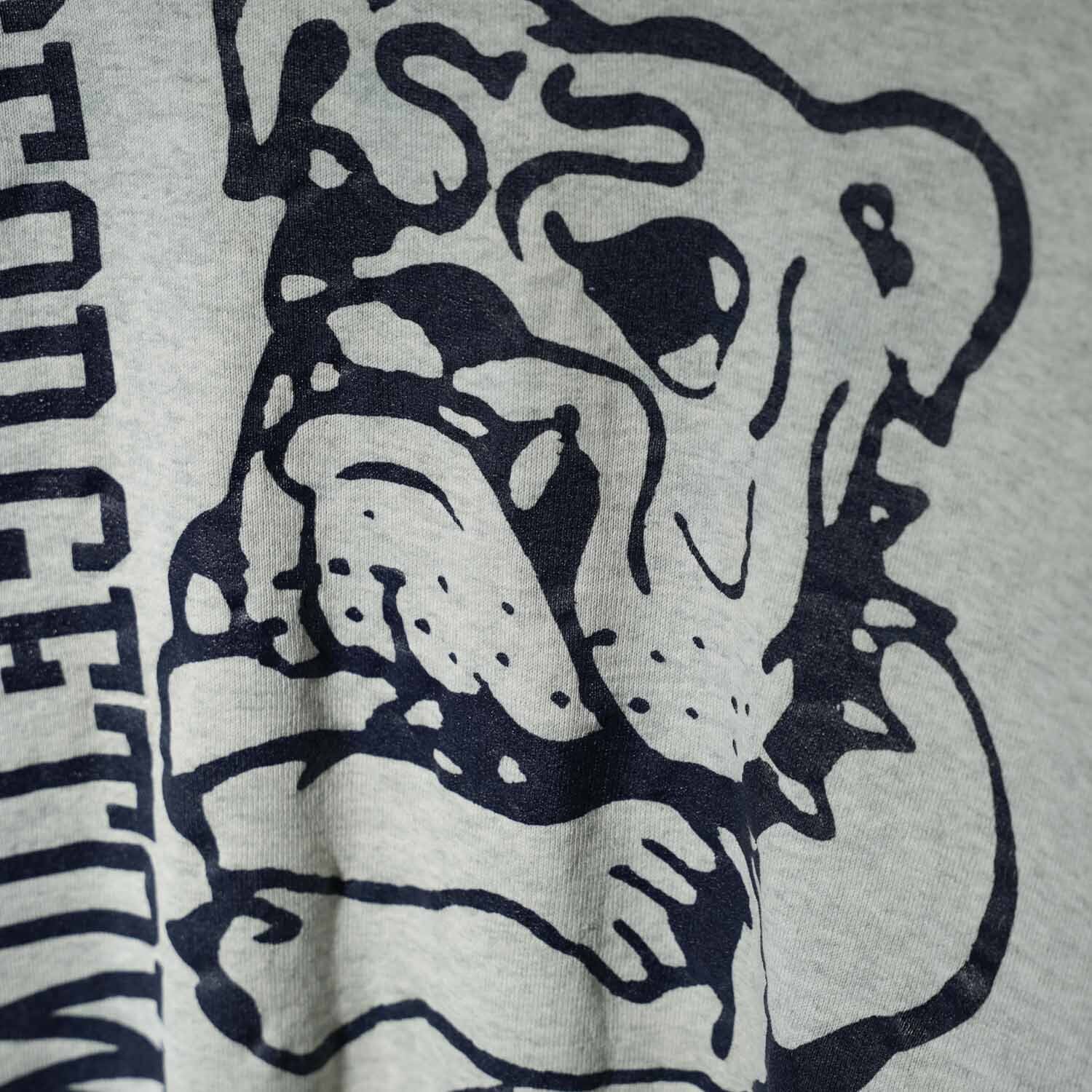 胸元には大きく描かれた GEORGETOWN(ジョージタウン大学)ブルドッグのマスコットプリント、背面にも小さなロゴが入る両面デザイン。シンプルながらも存在感抜群で、ストリート・アメカジ・スポーツMIXまで幅広いスタイルに映えるアイテムです。