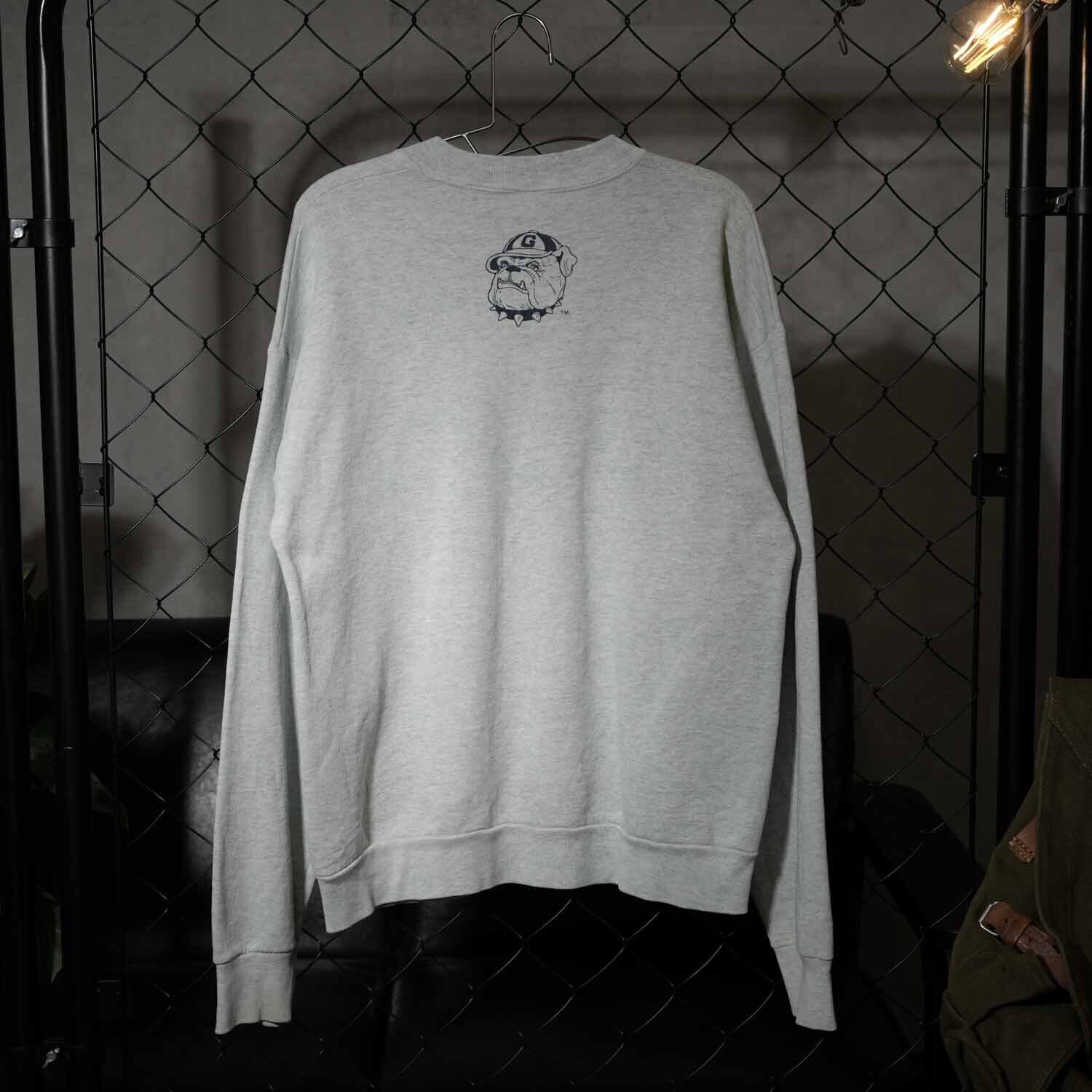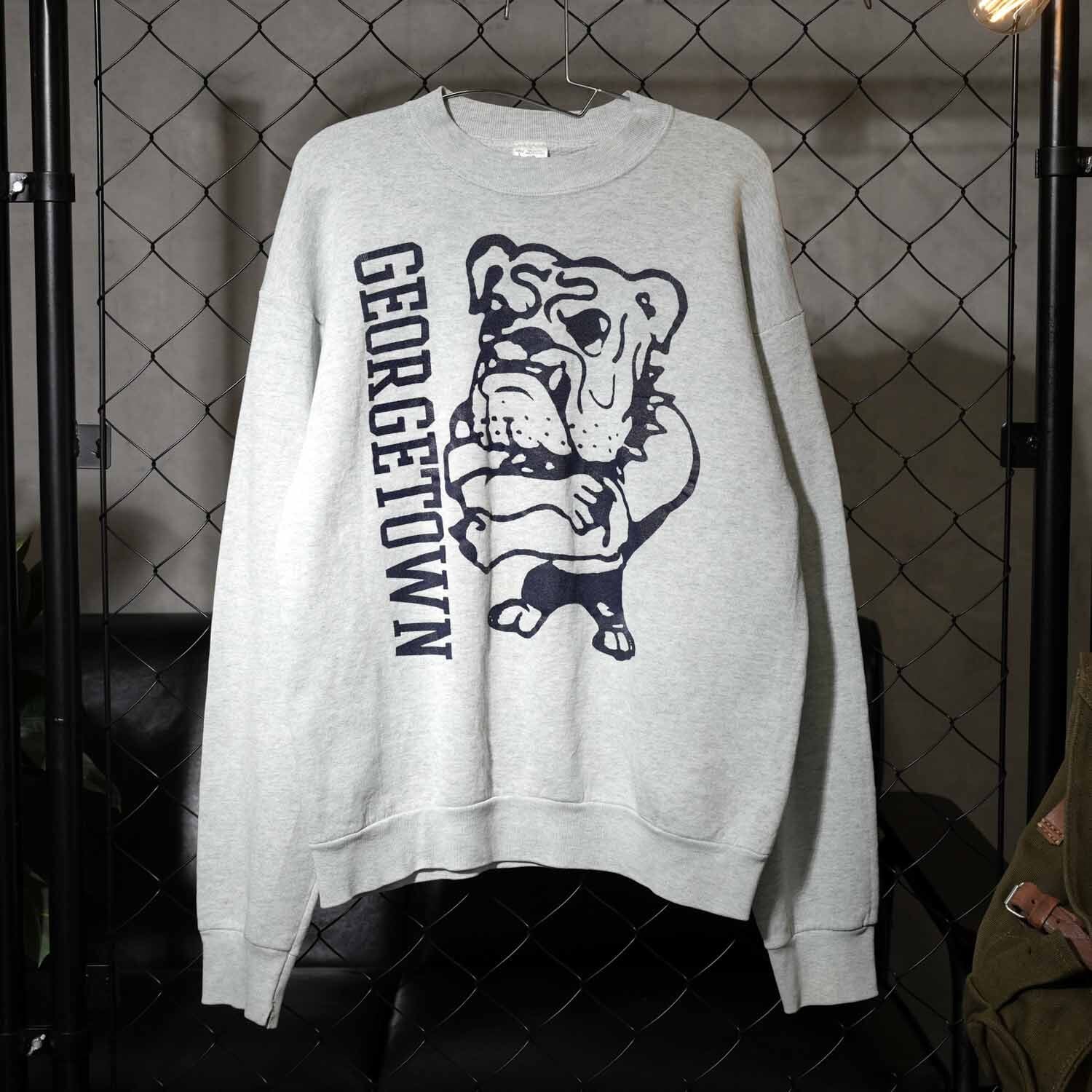 カレッジスウェットはアメリカンカジュアルを象徴するアイテム。特に人気のジョージタウン大学ブルドッグは、古着市場でも高い人気を誇るグラフィック。大きめのシルエットでゆったりと着用でき、今のファッションシーンにもマッチする万能な一枚です。