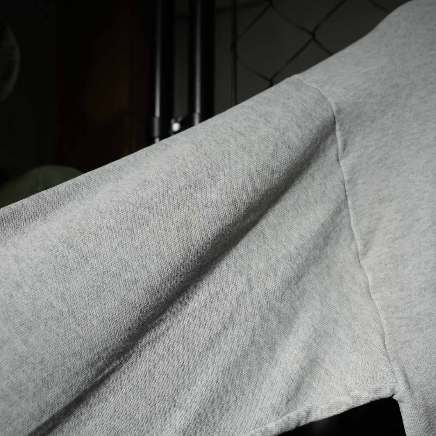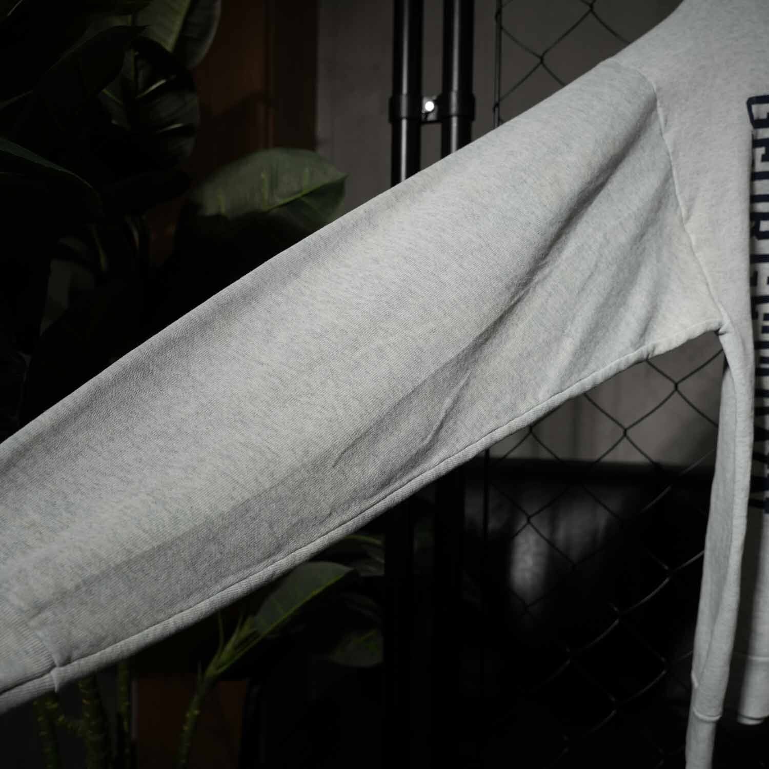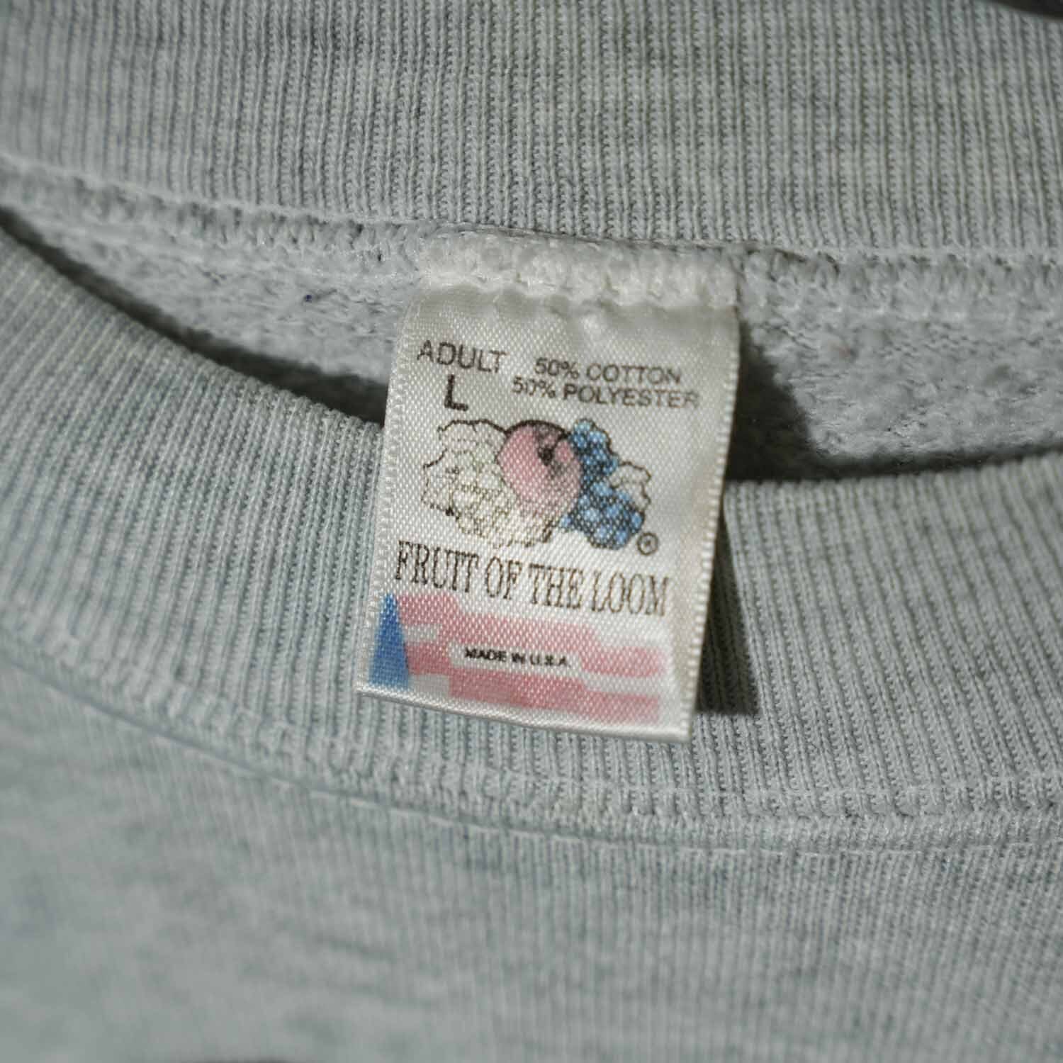 ボディは肉厚なUSA製のフルーツオブザルーム。コットン50%・ポリエステル50%の混紡素材で、適度な柔らかさと耐久性を兼ね備えています。着込むほどに馴染むヴィンテージらしい風合いは、この年代特有の魅力です。