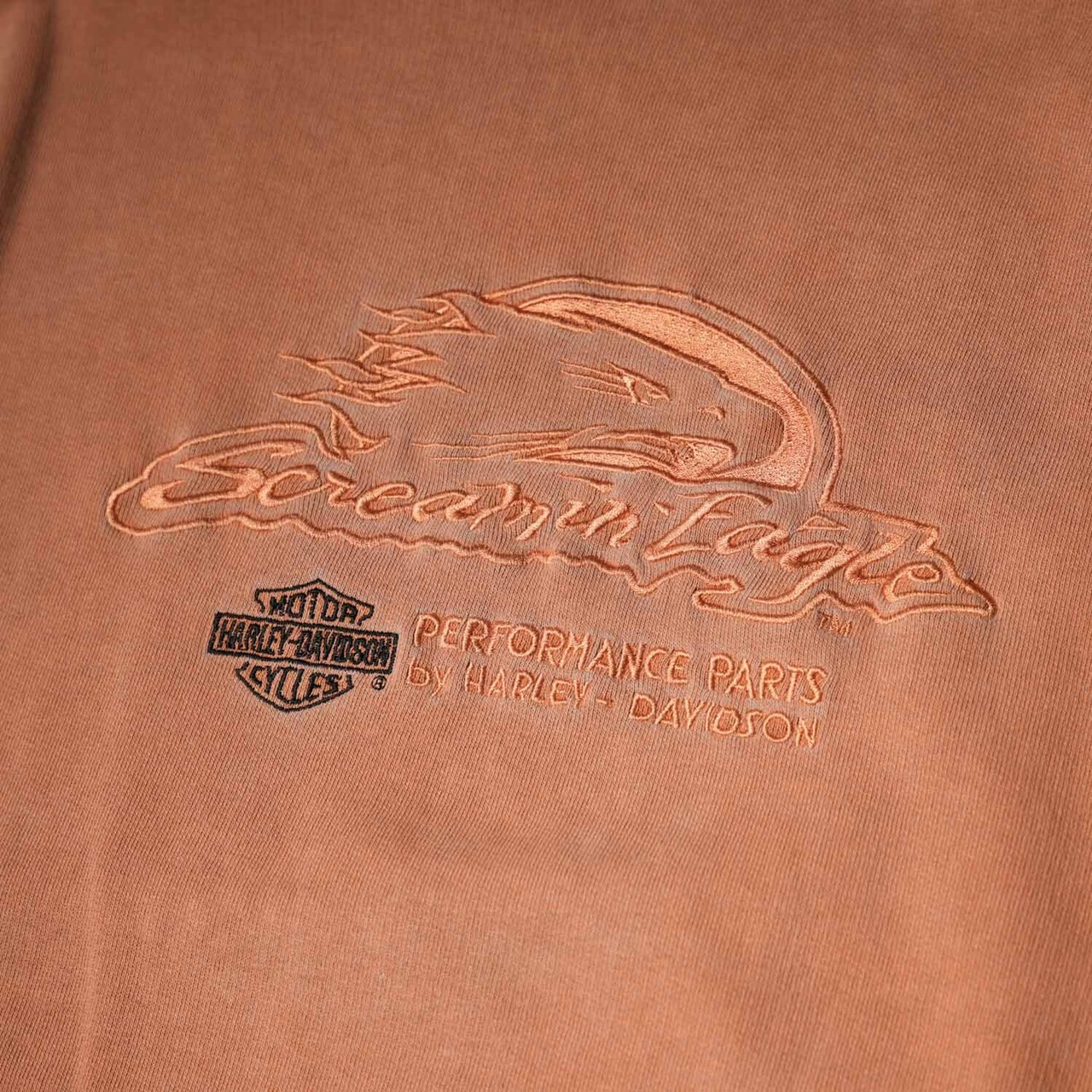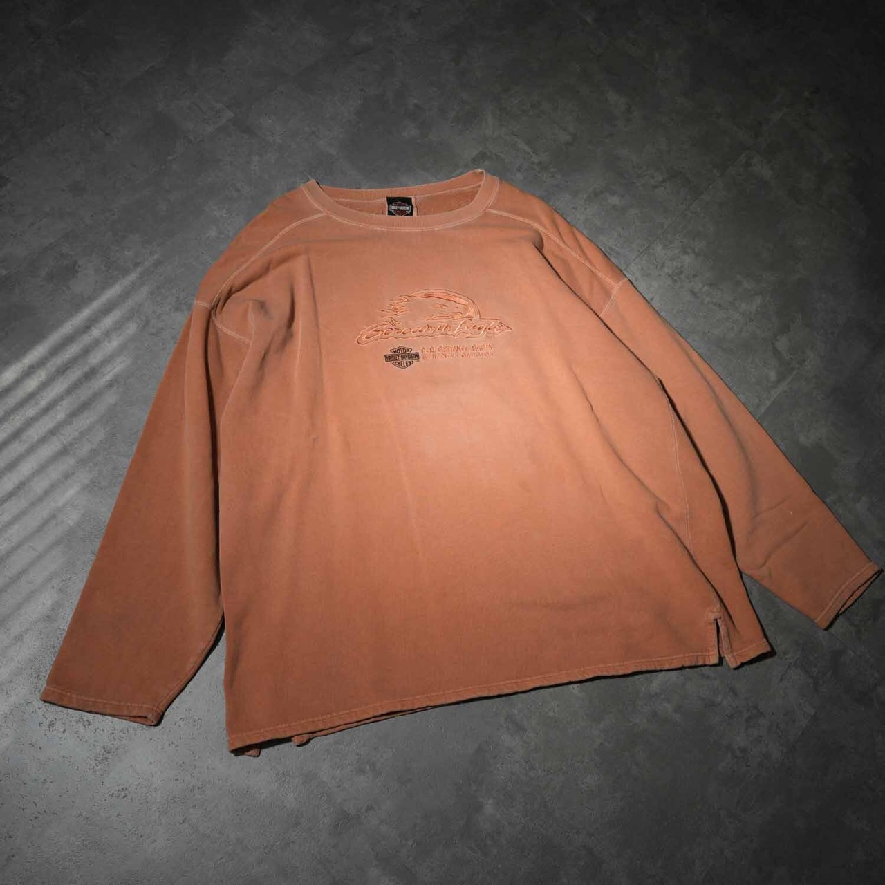 Harley-Davidson ハーレーダビッドソン × Screamin’ Eagle スウェット オレンジ 2000年代 ロシア製 ピグメントダイ 希少カラー 2XLサイズ アメカジ ヴィンテージ 古着【furugi-1740】