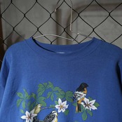COTTON GROVE DESIGNS コットングローブデザインズ プリントスウェット 90s USA製 Lサイズ 1994年製 ブルー アニマル&フラワー 鳥 花柄 メンズ 古着【furugi-1743】