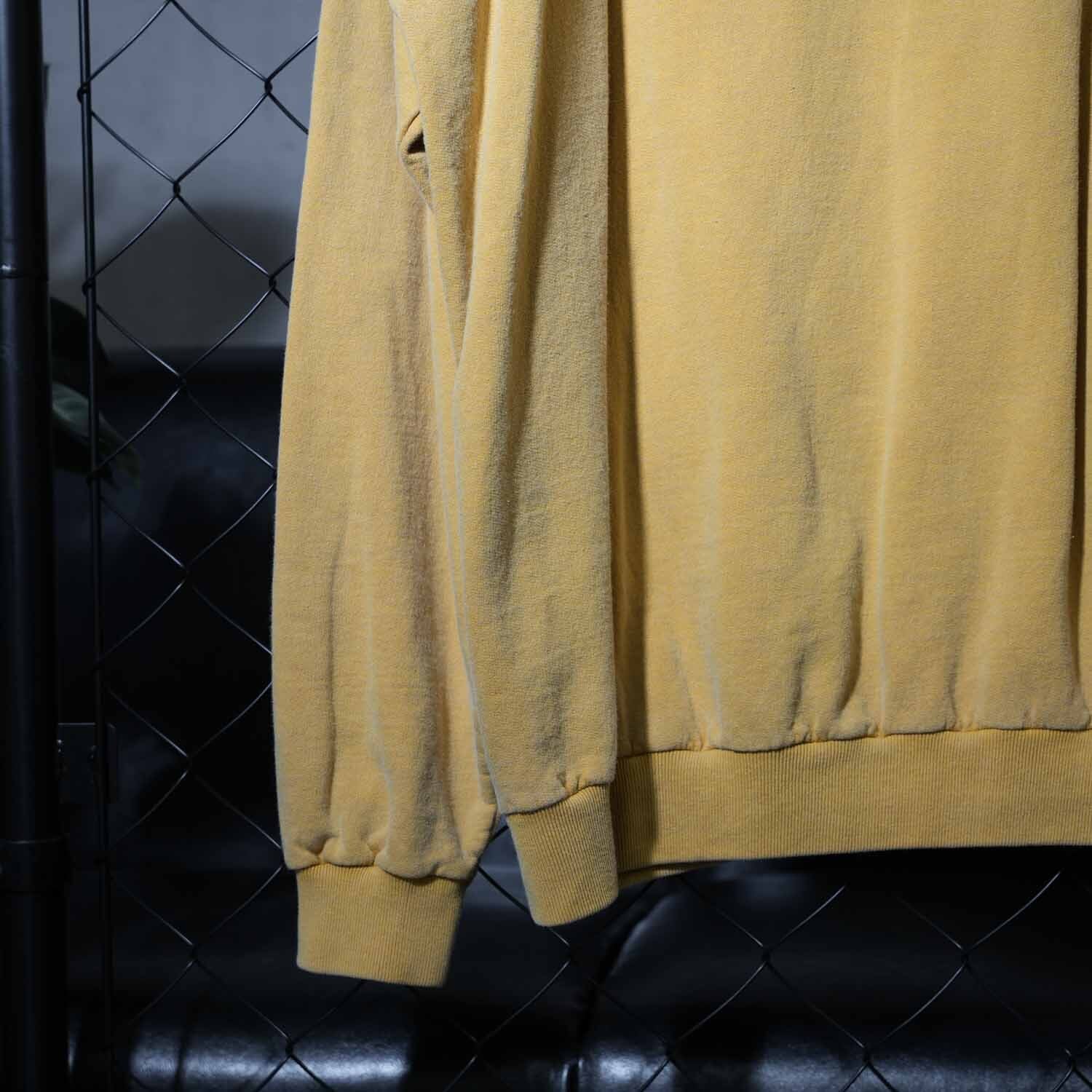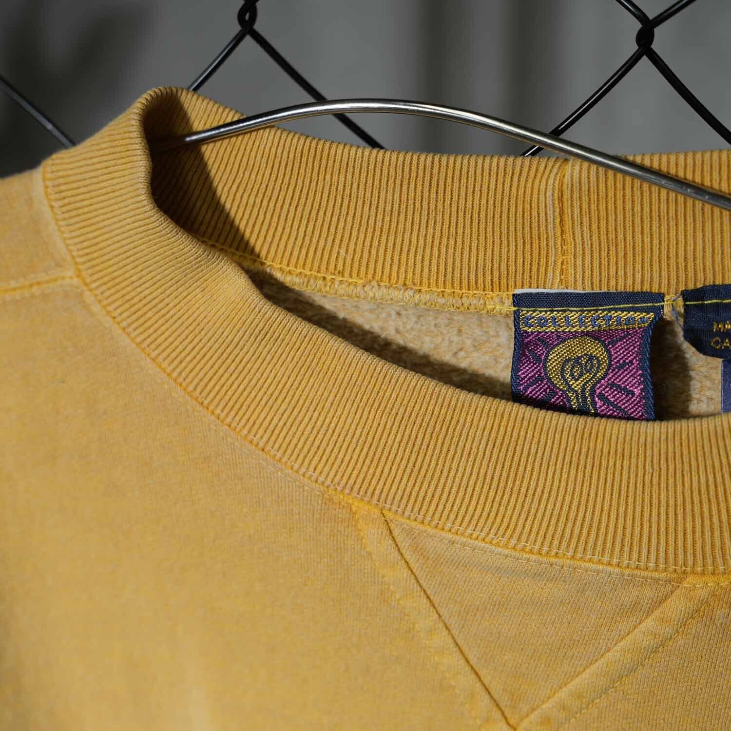 タグには電球のロゴが印象的な FLASH(CANADAブランド) が入り、発色の良いマスタードイエローのボディに、フェード感のある染み込みプリント。プリントの下部には「2000」の表記も入り、当時の時代背景を感じさせる一着です。