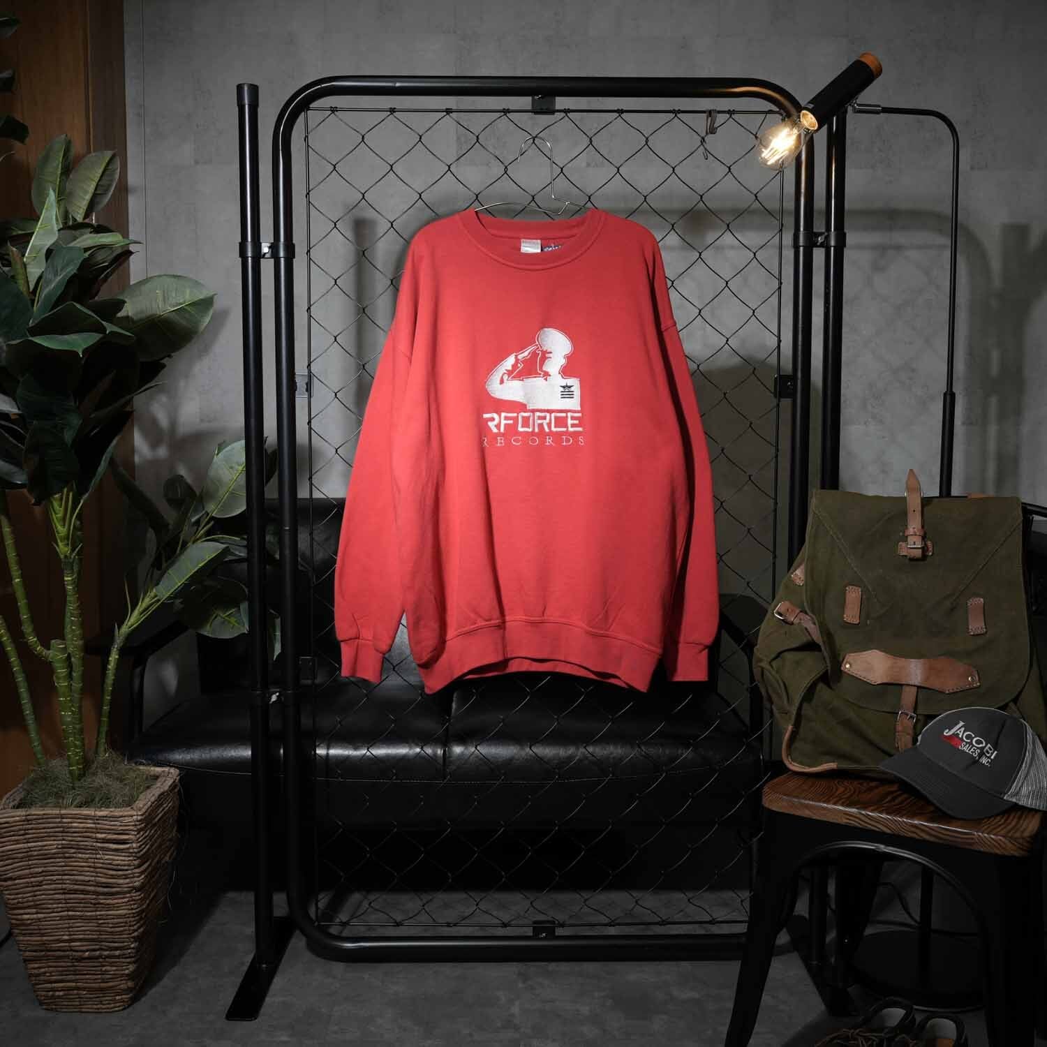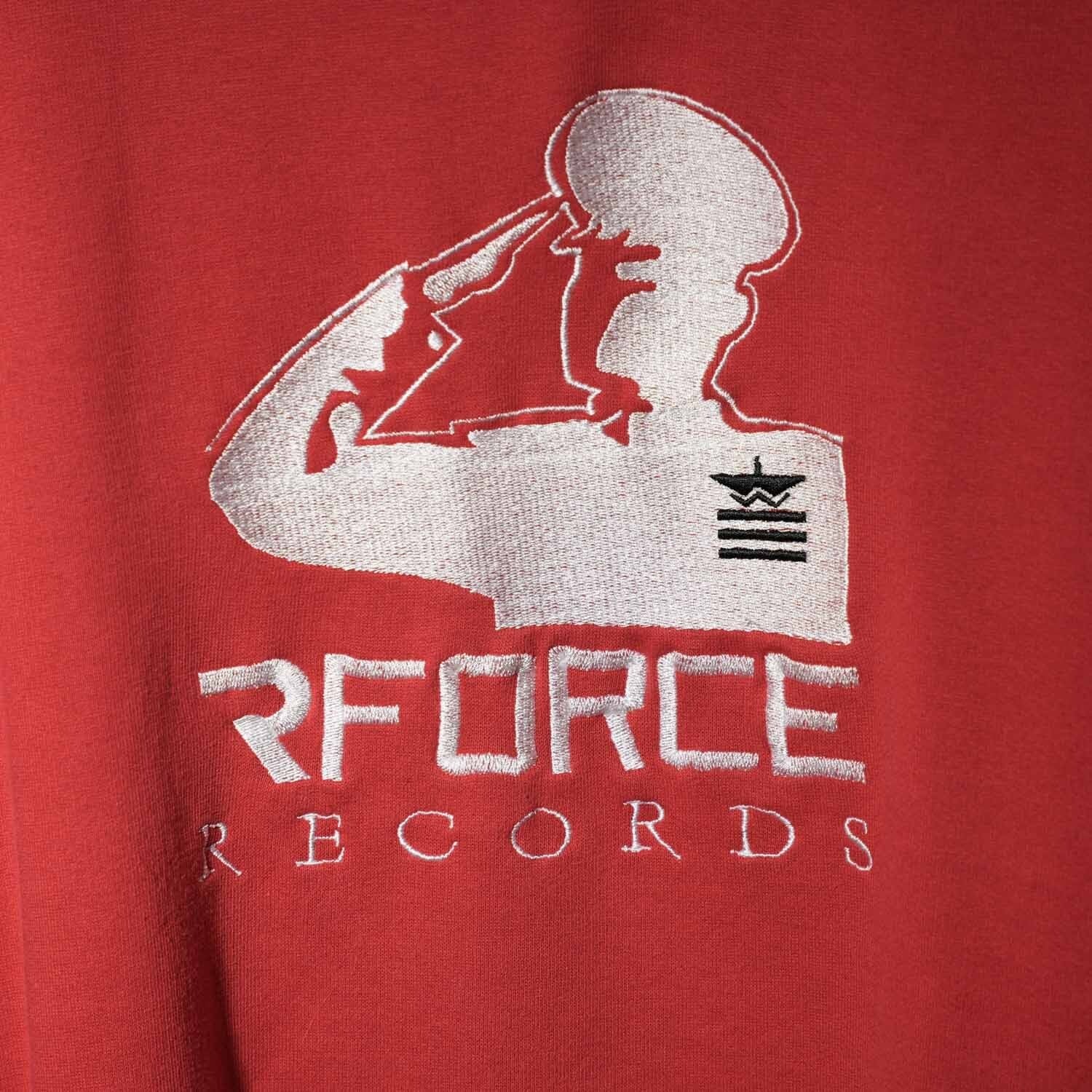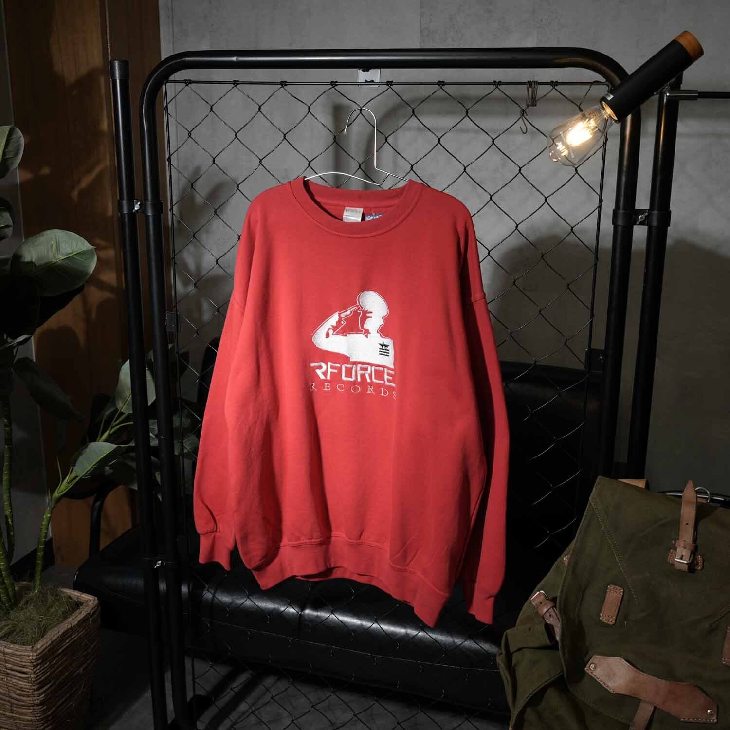 IDEAL アイディール RFORCE RECORDS 刺繍スウェット 90s レッド Lサイズ パキスタン製 コットンポリ アメカジ 企業 音楽 ヴィンテージ メンズ 古着【furugi-1753】