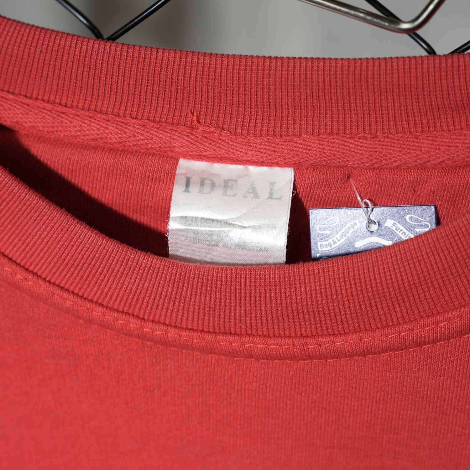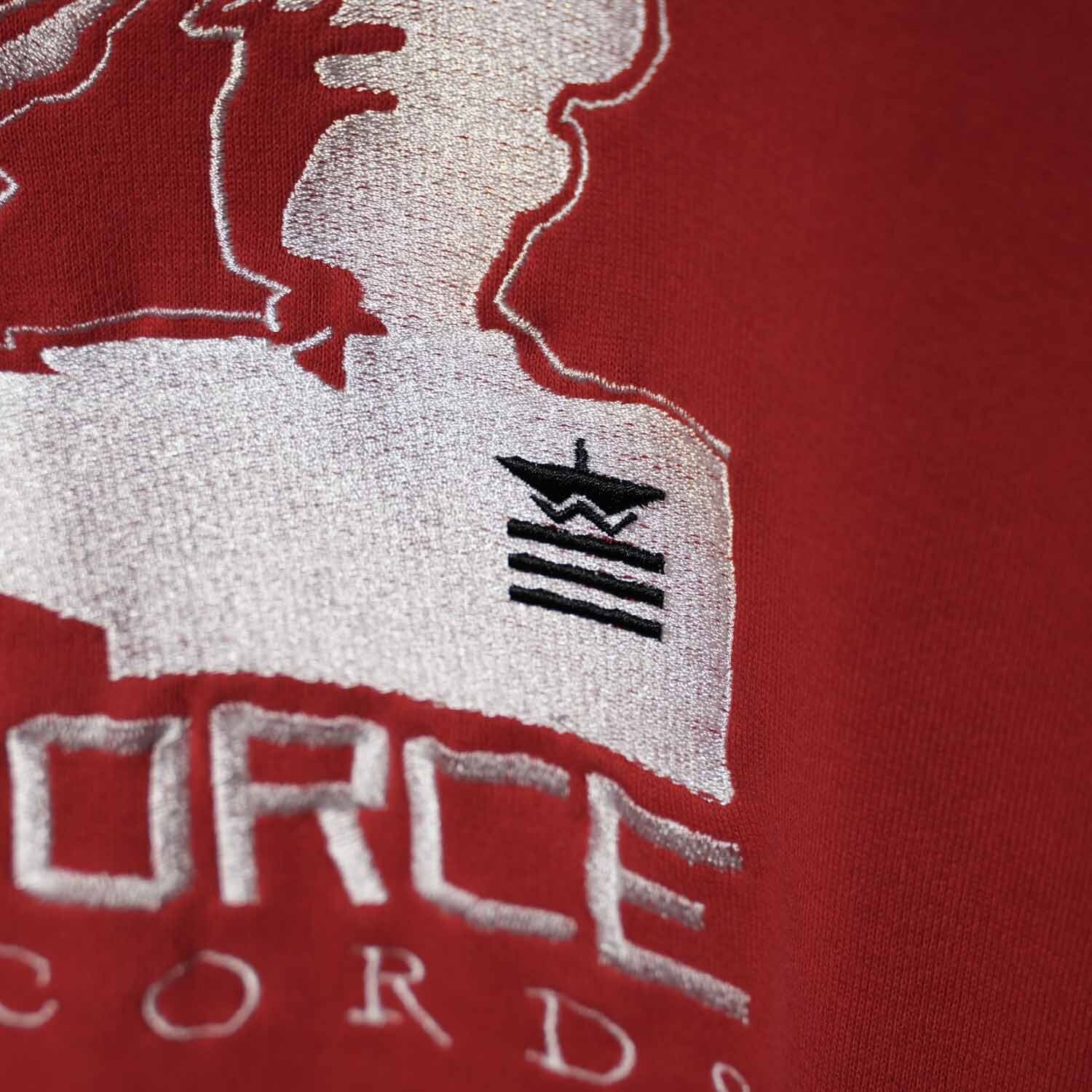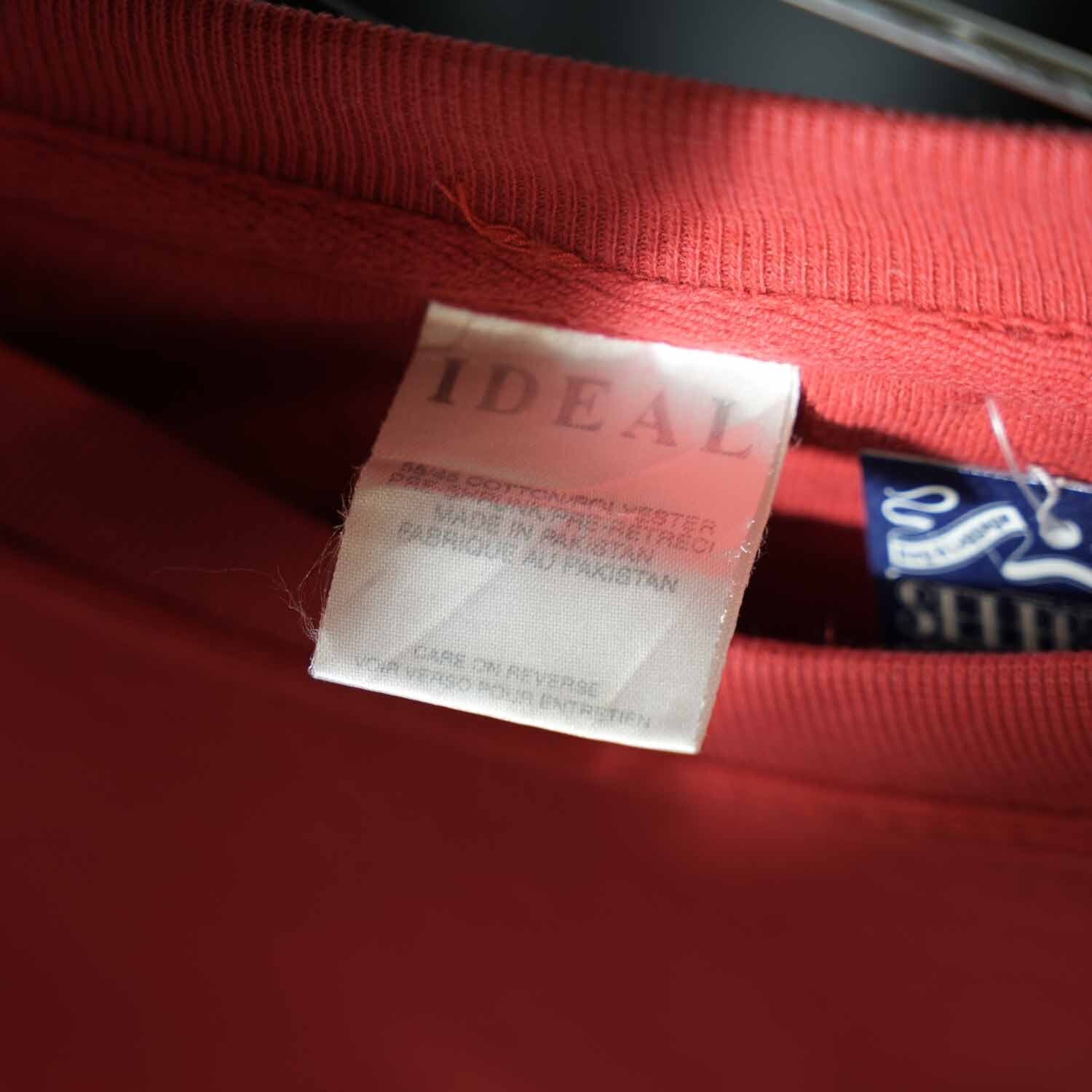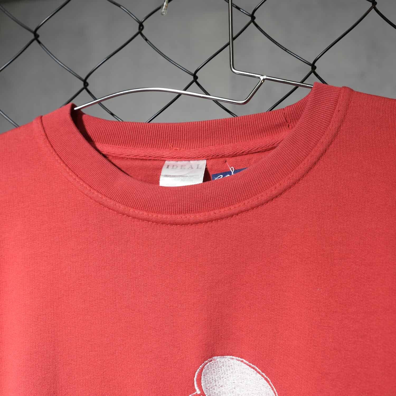 IDEAL アイディール RFORCE RECORDS 刺繍スウェット 90s レッド Lサイズ パキスタン製 コットンポリ アメカジ 企業 音楽 ヴィンテージ メンズ 古着【furugi-1753】