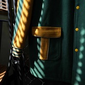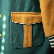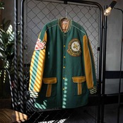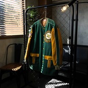 1960年代頃の「Sportswear Specialties(Winnipeg, Canada)」製で、厚みのあるメルトンウールにチェーンステッチワッペンやサガラ刺繍が落とし込まれた一着。クラシックな配色に加え、胸・袖のパッチワークが映える、まさにアメカジ王道のディテールを備えています。