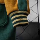カナダ空軍(RCAF)の「Sergeant’s Mess / Goose Bay」のパッチが存在感を放つ、グリーン×マスタード配色のウールスタジャンです。