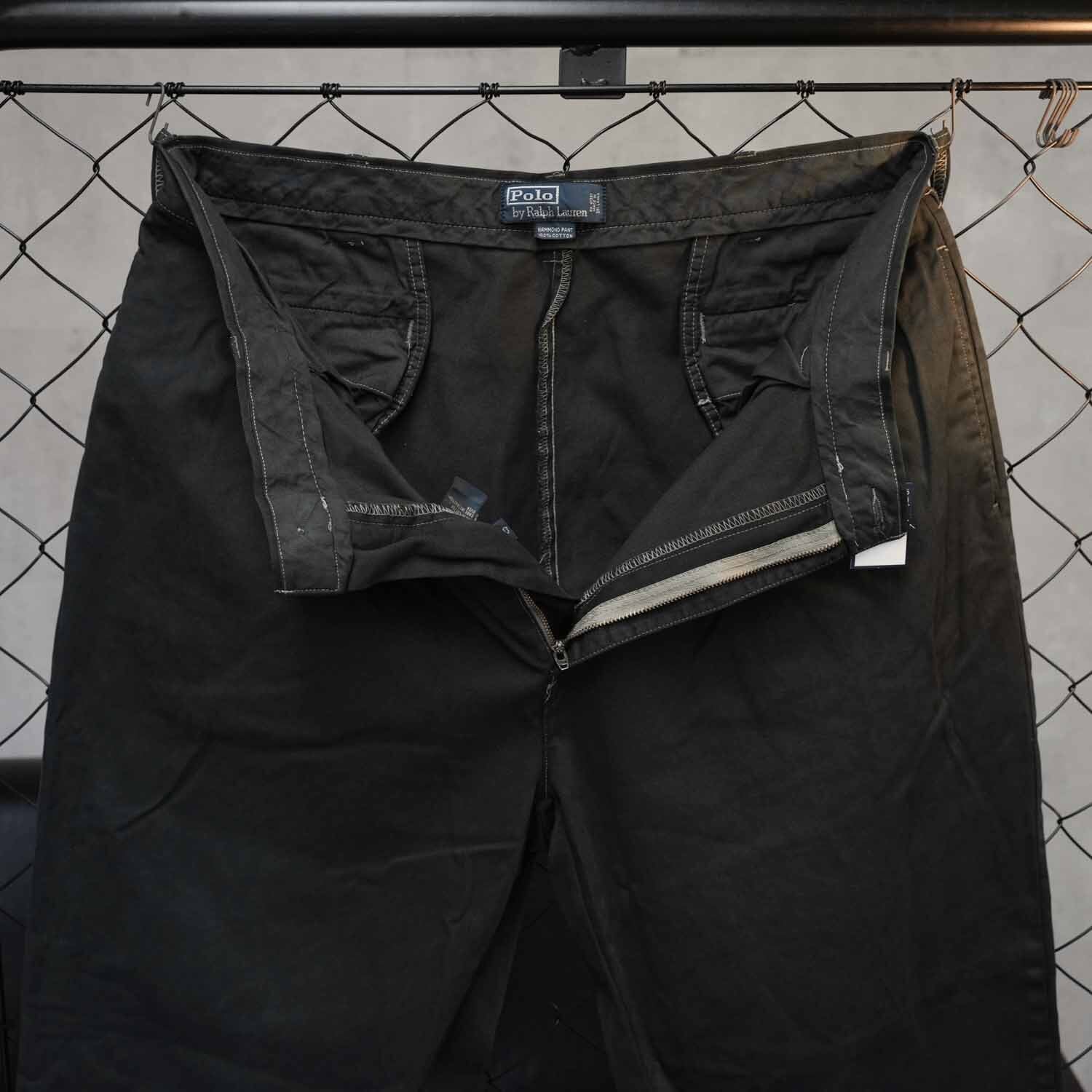 Polo by Ralph Lauren ポロバイラルフローレン HAMMOND PANT ハモンドパンツ 後染めブラック 90s タック入りチノパン W38 L30 コットン100% スリランカ製 メンズ ヴィンテージ 古着【furugi-1776】