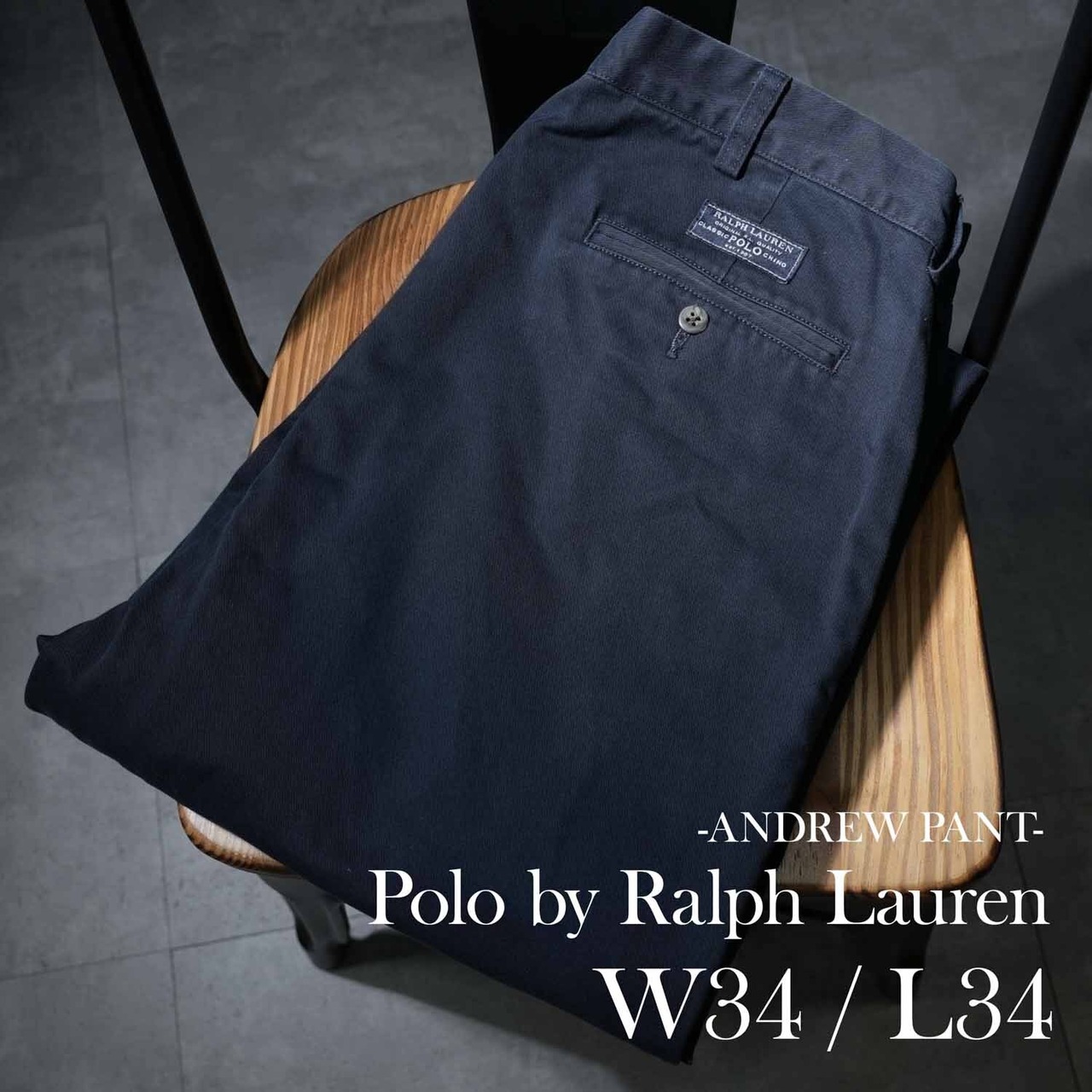 POLO by Ralph Lauren ポロバイラルフローレン ANDREW PANT アンドリューパンツ ネイビー チノパン W34 L34 コットン100% マカオ製 メンズ アメカジ ヴィンテージ 古着【furugi-1780】