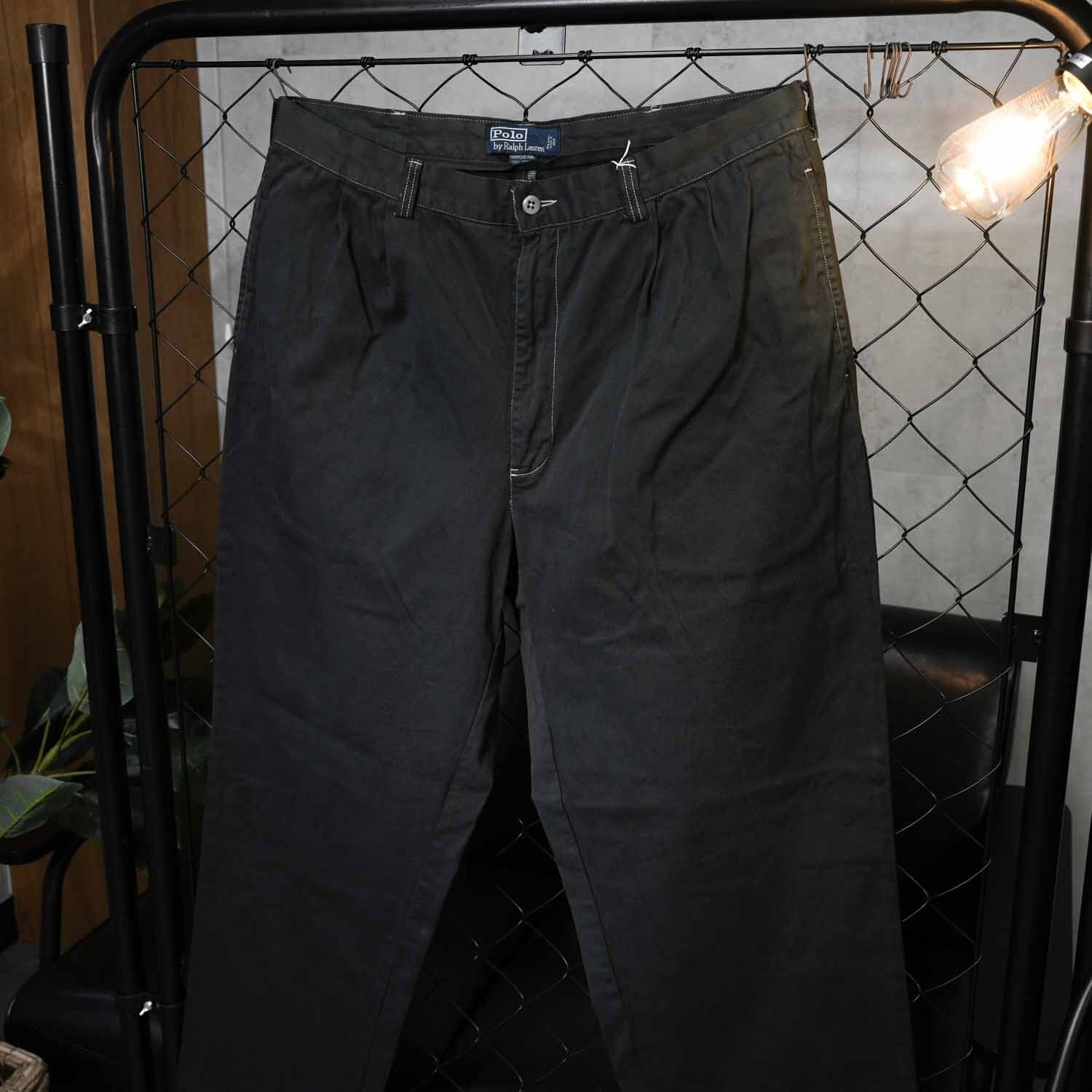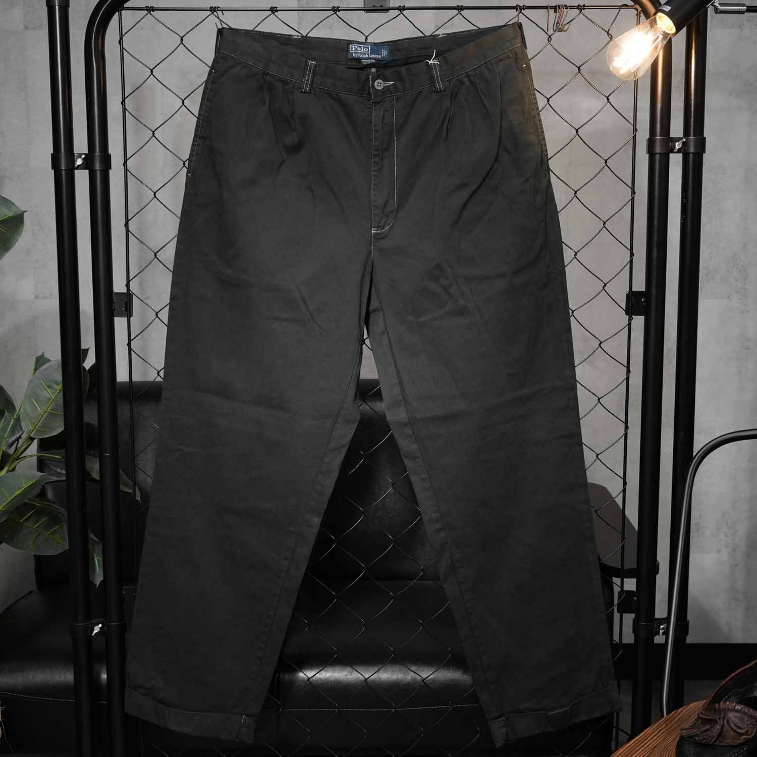 Polo by Ralph Lauren ポロバイラルフローレン HAMMOND PANT ハモンドパンツ 後染めブラック 90s インド製 コットン100% W38 L32 ヴィンテージ チノパン メンズ 古着【furugi-1782】