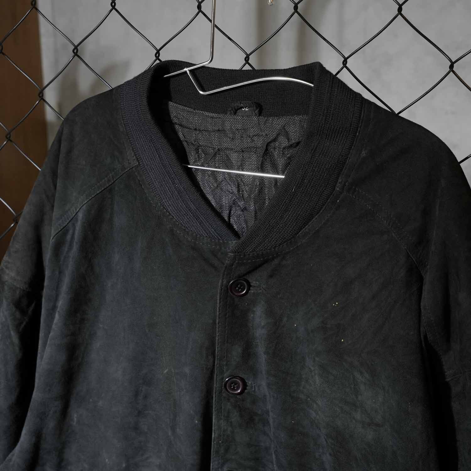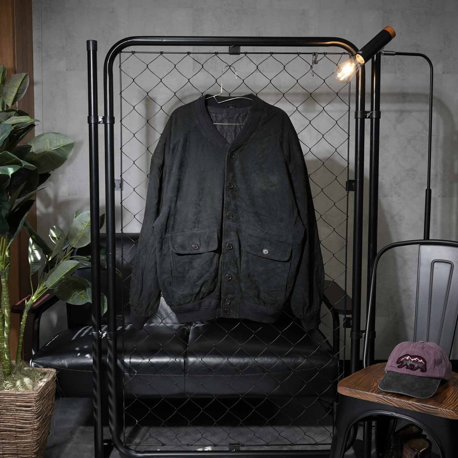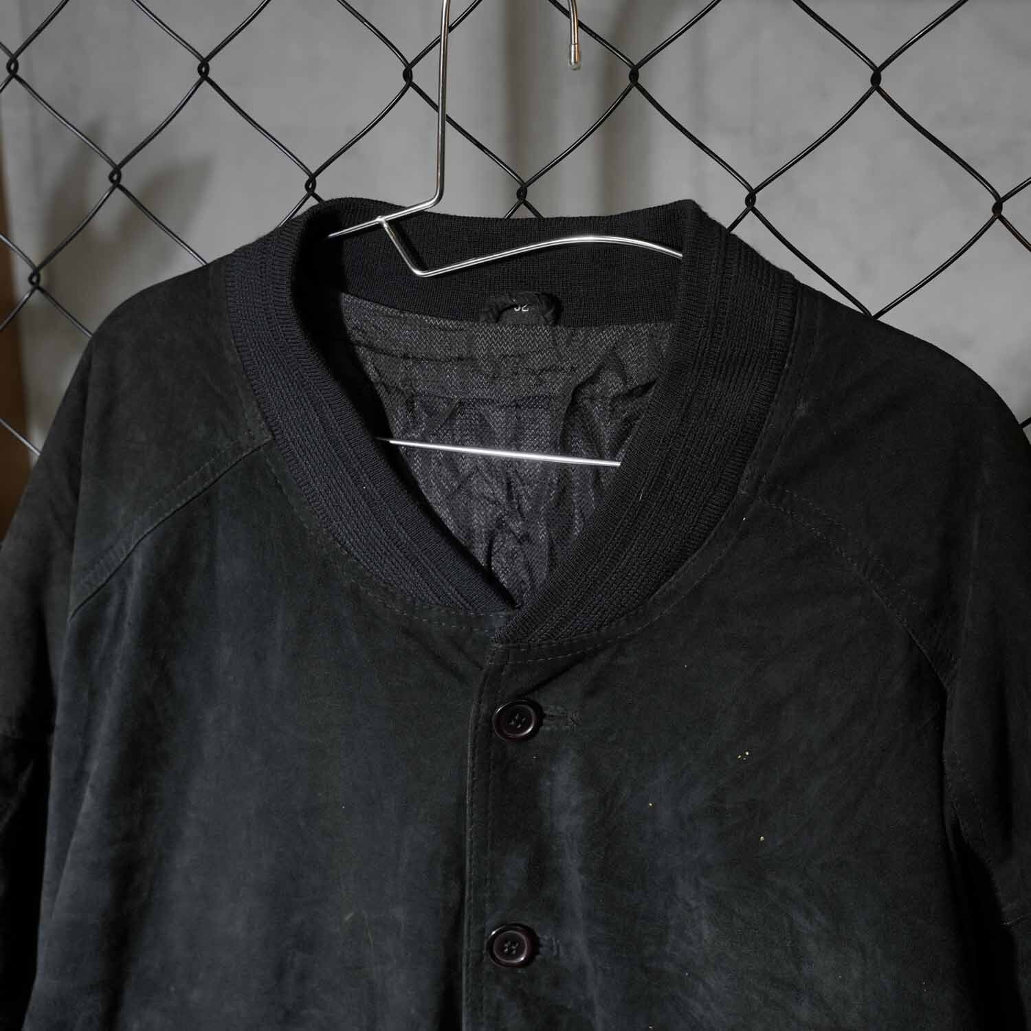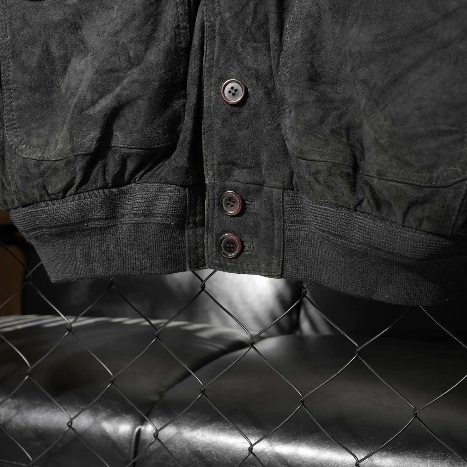 valstar ヴァルスタージャケット型の特徴であるリブ襟・リブ裾・リブ袖口を備えつつ、重厚感のあるスエードレザーを採用。深みのあるブラックカラーが全体を引き締め、上品でありながら無骨な存在感を放ちます。