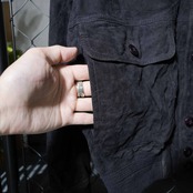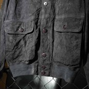 ボディは100%本革スエード、ライニングにはヴィスコースを採用。滑らかな裏地で着脱しやすく、見た目の重厚感に反してストレスなく羽織れるのが特徴です。首元・裾・袖口にはリブが配され、風の侵入を防ぐ実用的な設計。フラップ付きの大型ポケットが左右に配され、収納力も十分です。