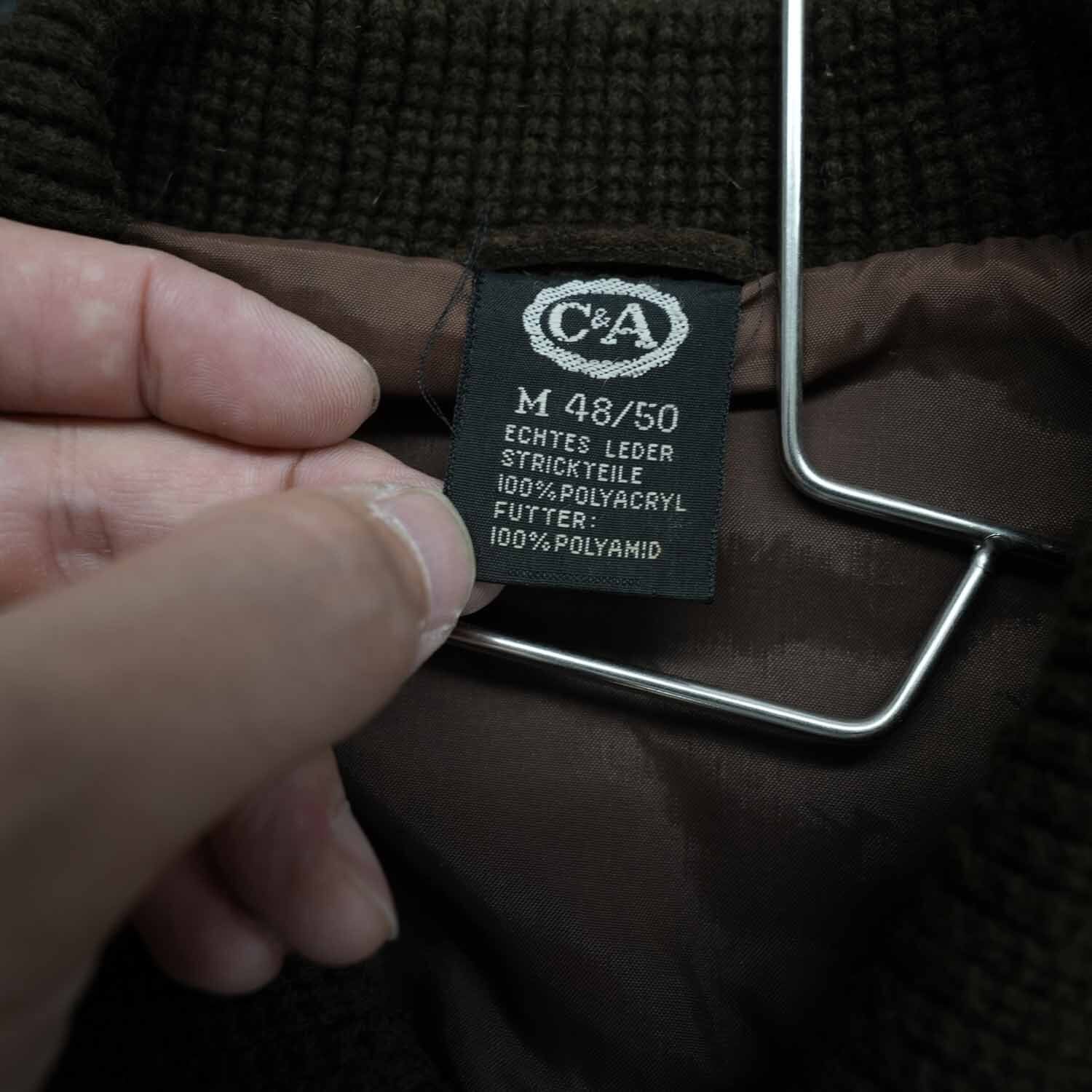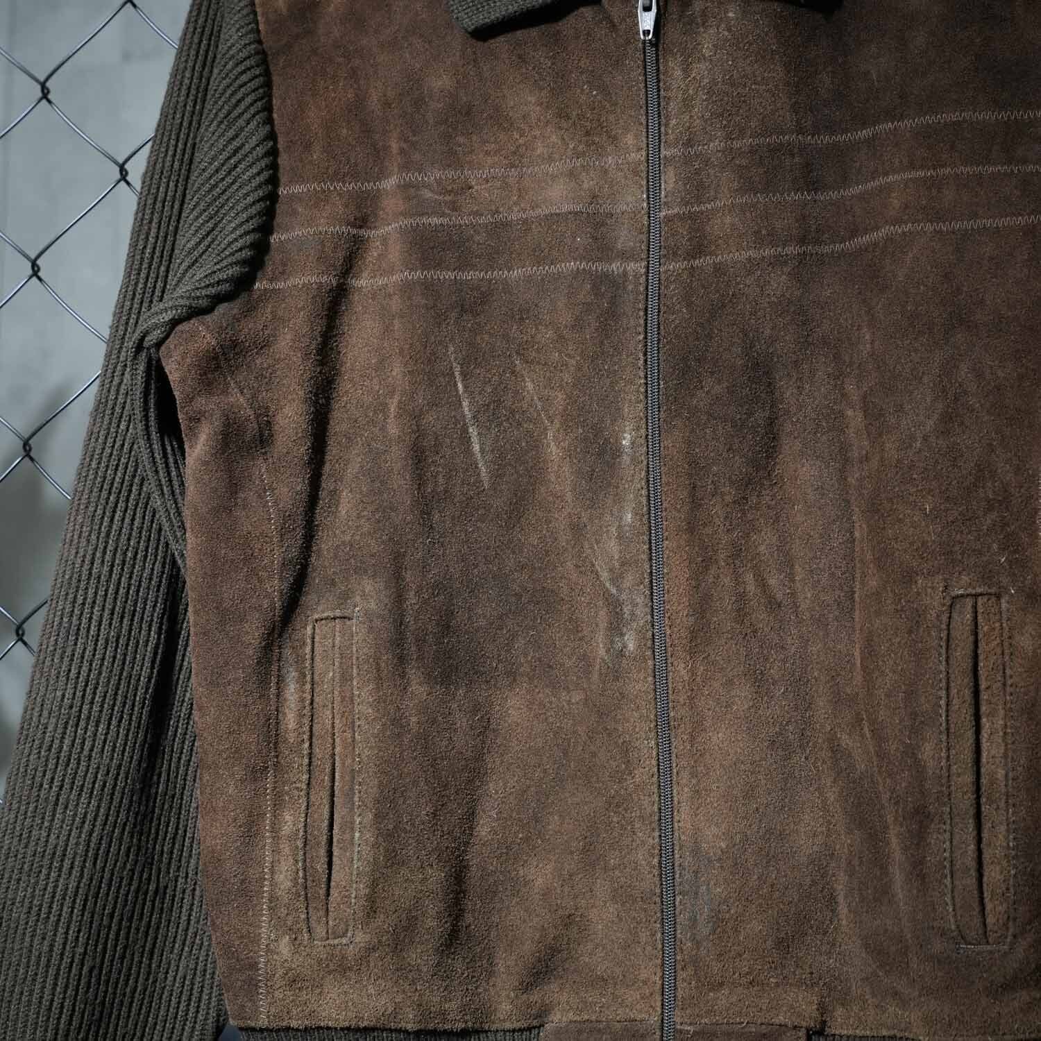 C&A カウハイドスエード × ニット切替 ジップアップジャケット ユーロヴィンテージ ブラウン Mサイズ 本革レザー ニット切替 メンズ 防寒 古着【furugi-1790】