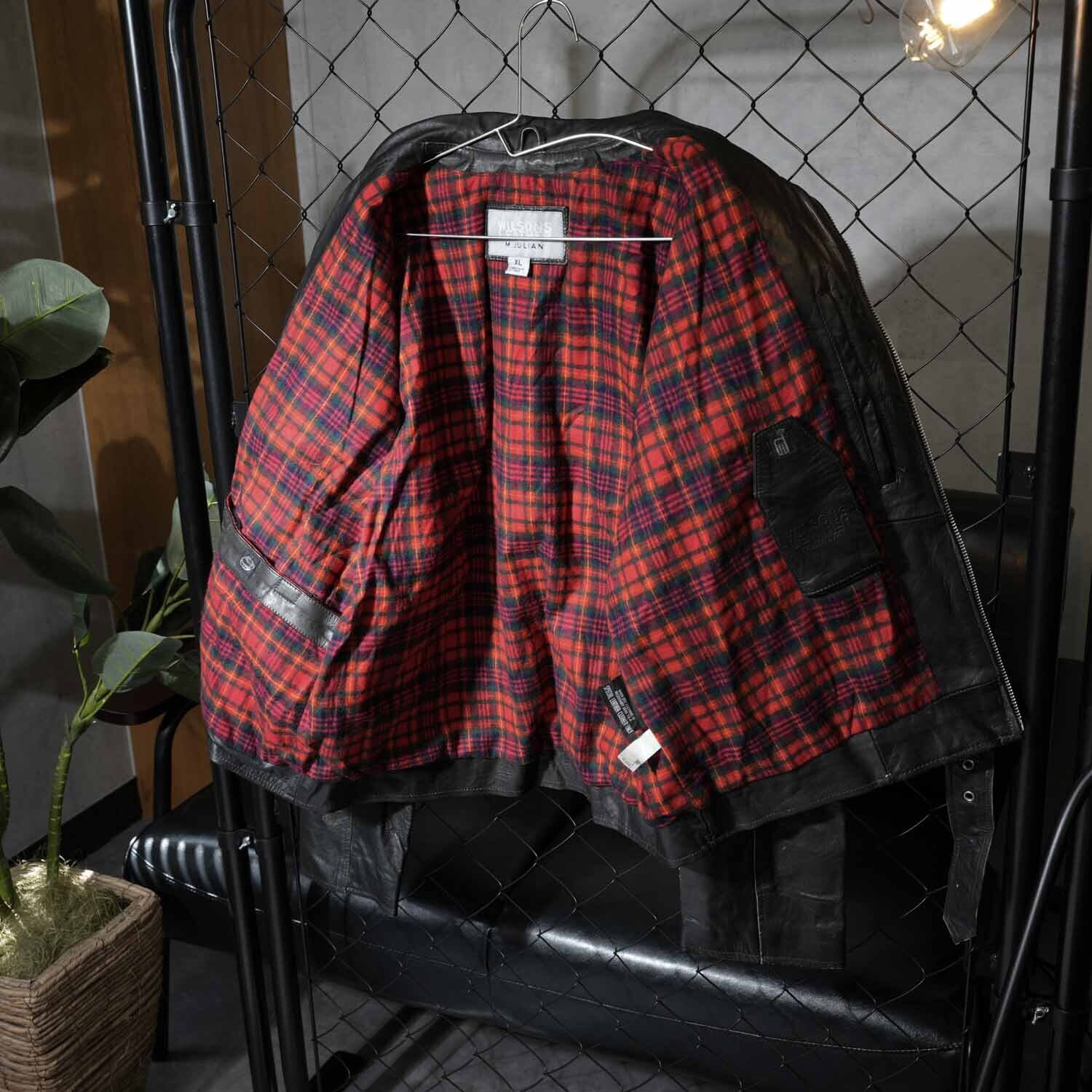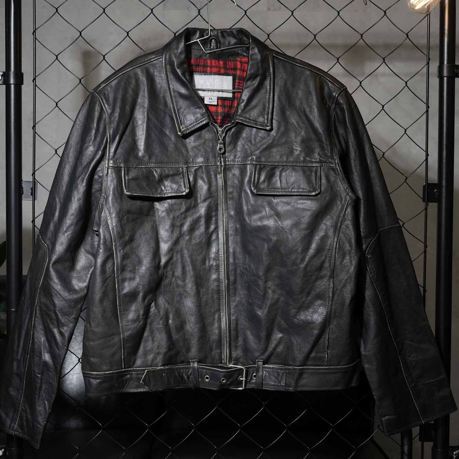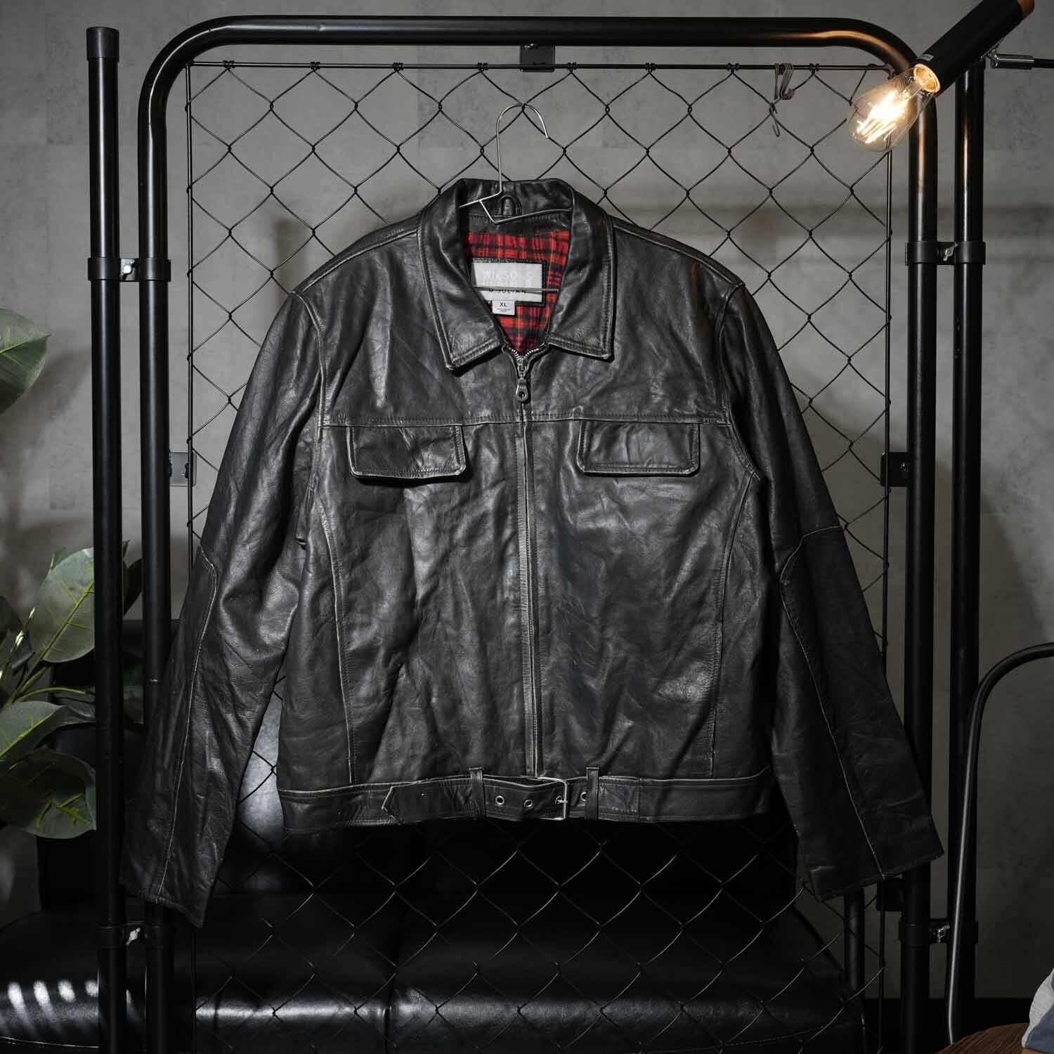 Wilsons Leather ウィルソンズレザー シングルライダース レザージャケット 90s XLサイズ ブラック レッドチェック裏地 本革 茶芯風 メンズ 防寒 アメカジ ヴィンテージ 古着【furugi-1791】