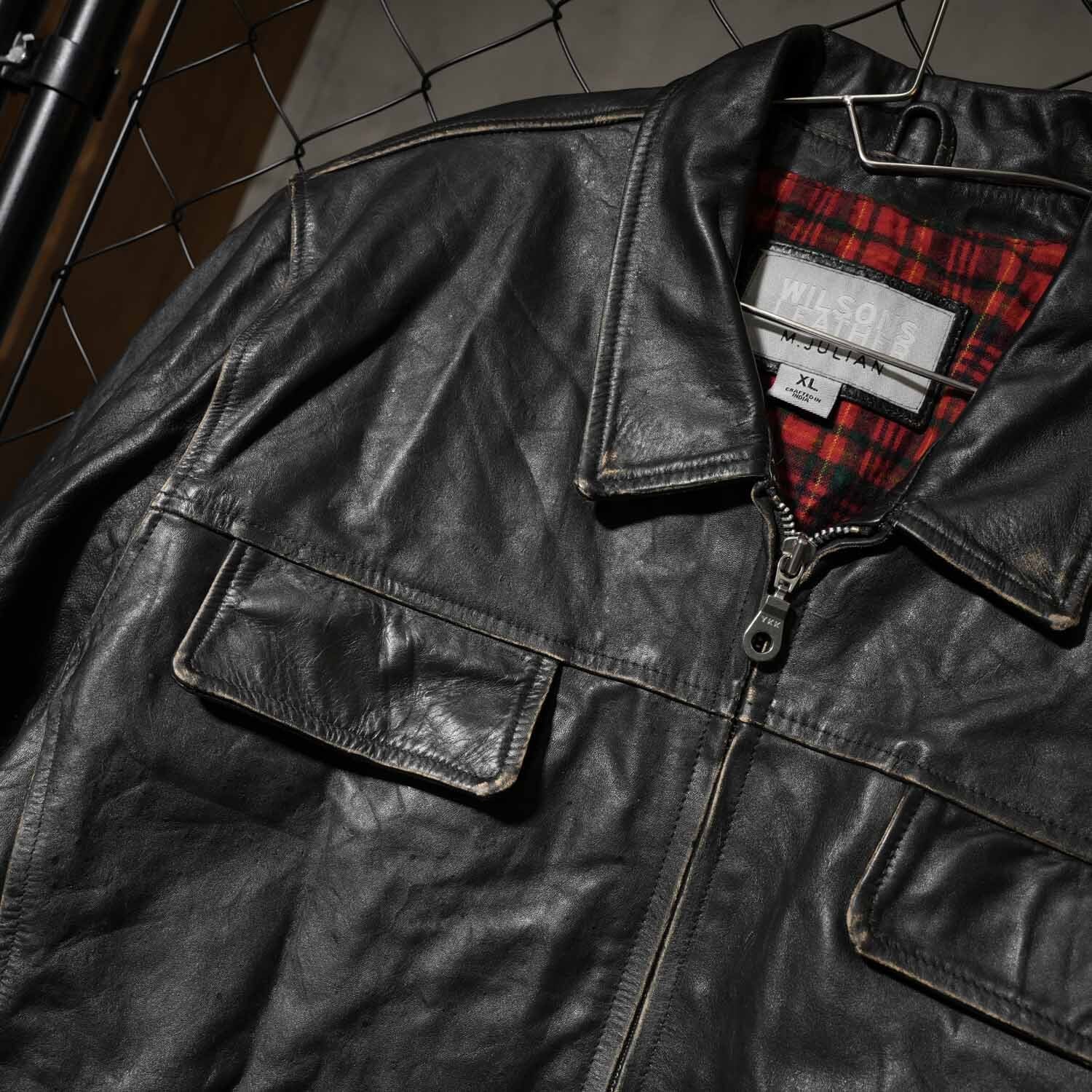 こちらは1990年代頃の WILSONS LEATHER(ウィルソンズ・レザー) の一着。アメリカで創業し、質実剛健なライダースやフライトジャケットを数多く生産してきた老舗ブランドで、アメカジ古着市場でも高い人気を誇ります。