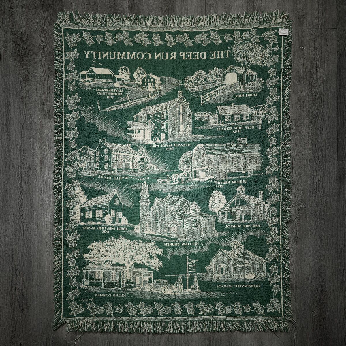 アメリカ・ペンシルベニア州バックス郡にある「Deep Run(ディープラン)」地域の歴史的建物や名所を織り込んだ記念ヴィンテージラグ。