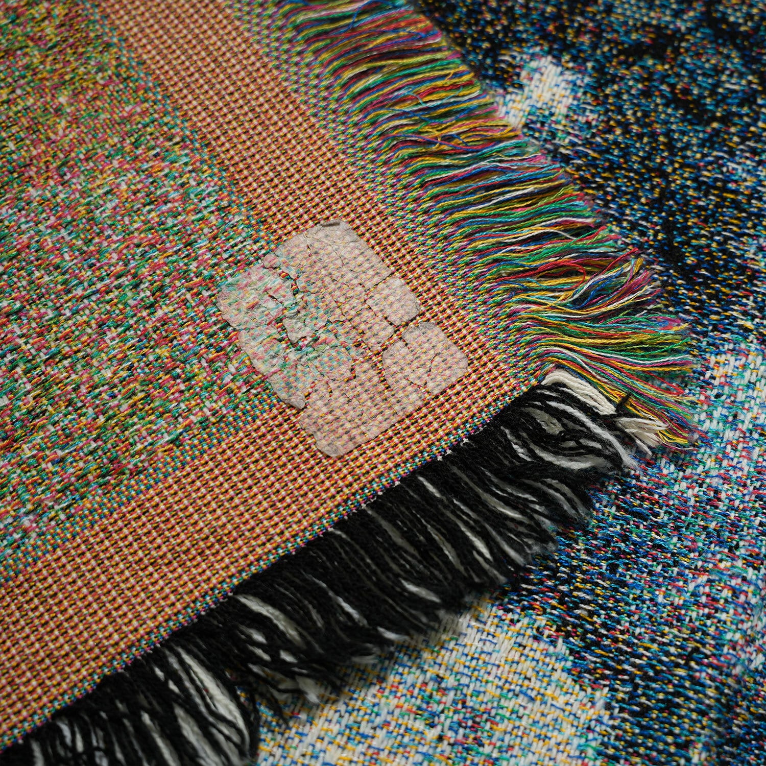 このラグはその世界観を織りで表現したアートピースであり、光と陰のコントラストが美しい。壁に掛ければ荘厳な宗教画のような存在感を放ち、ソファーカバーやベッドスローとしても、空間に落ち着きと温もりを与えてくれます。